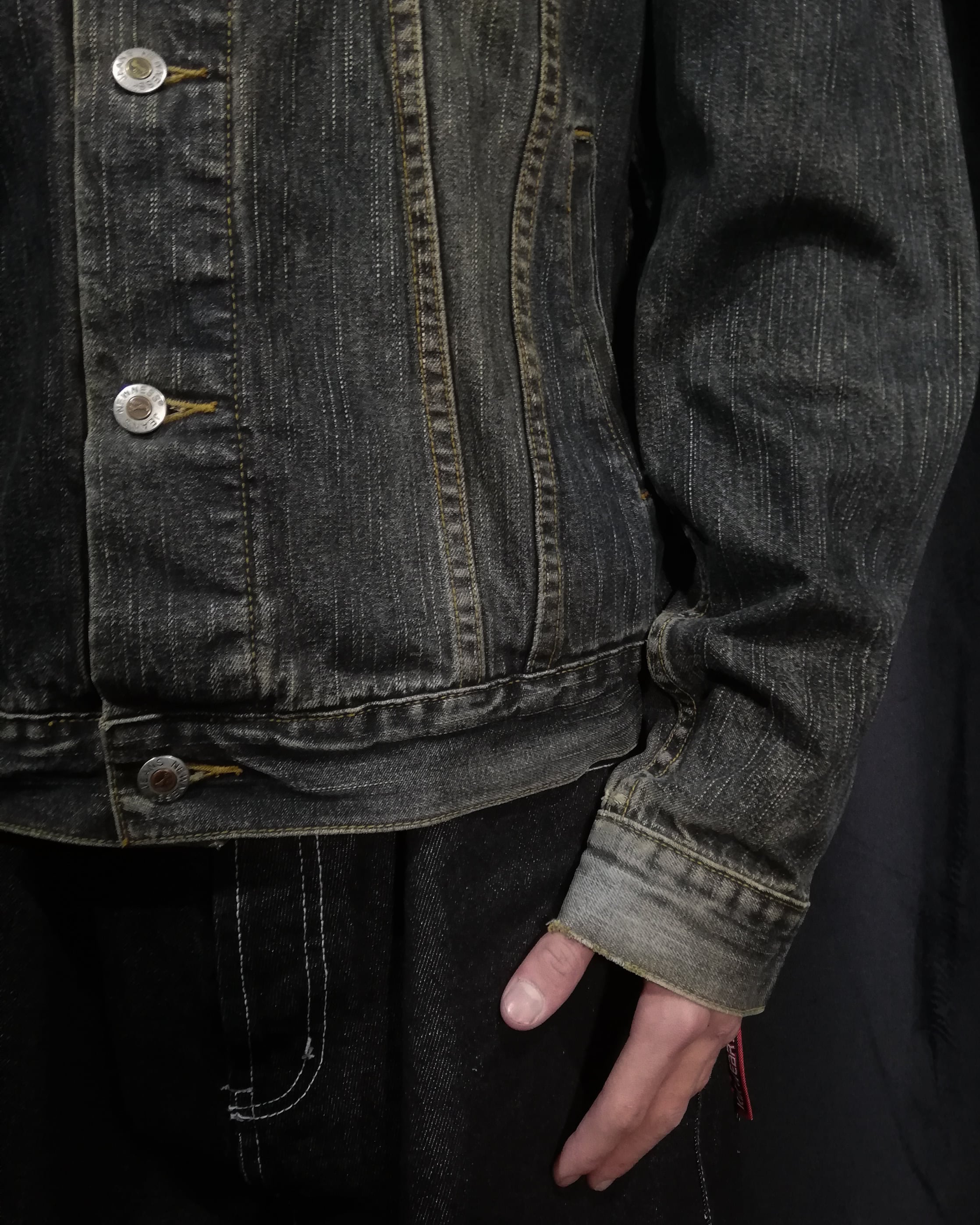ヴィンテージ業界で稀少価値上がりつつあるブラックデニムを用いたボディに、経年変化によるフェードが載せられたデニムジャケット。