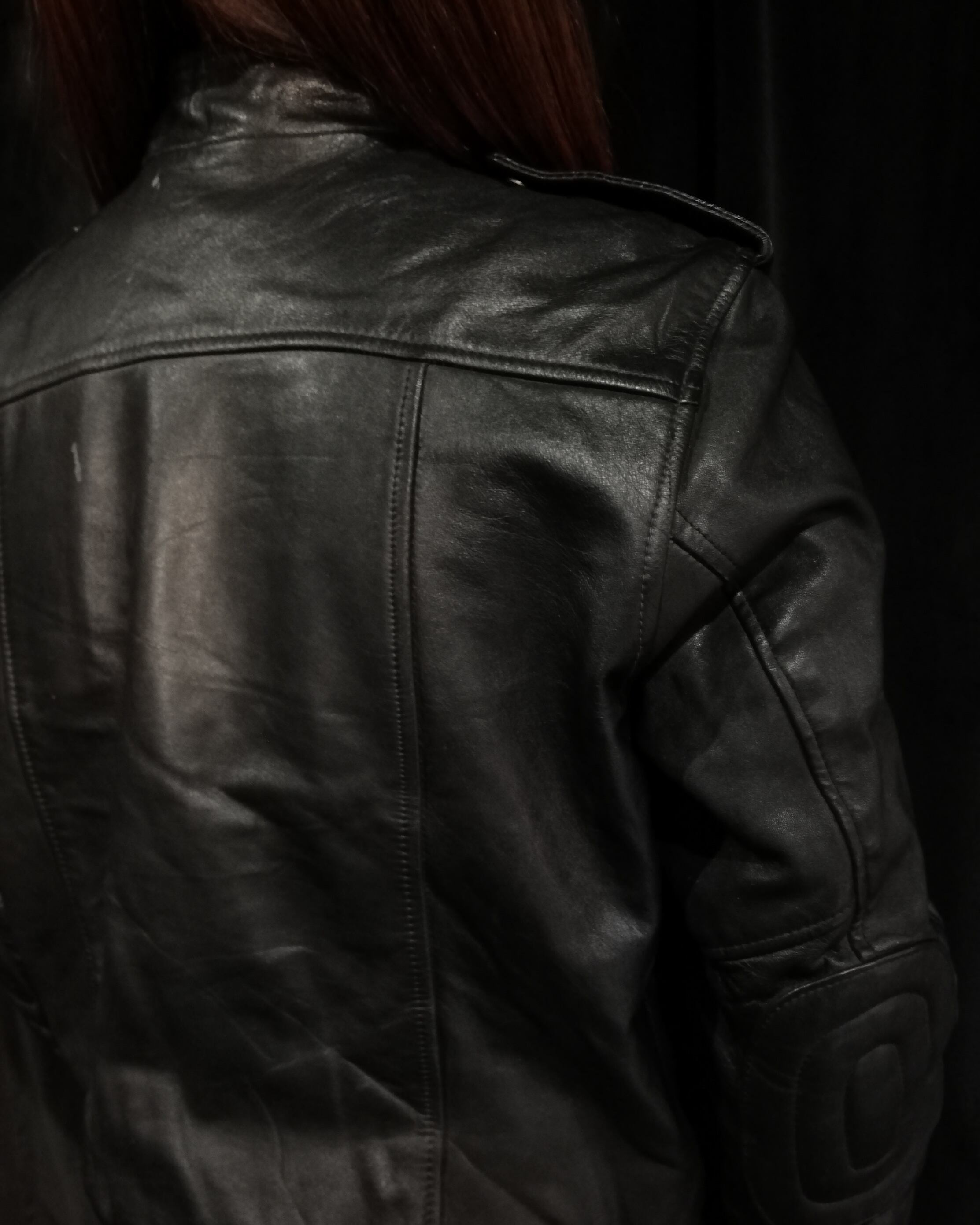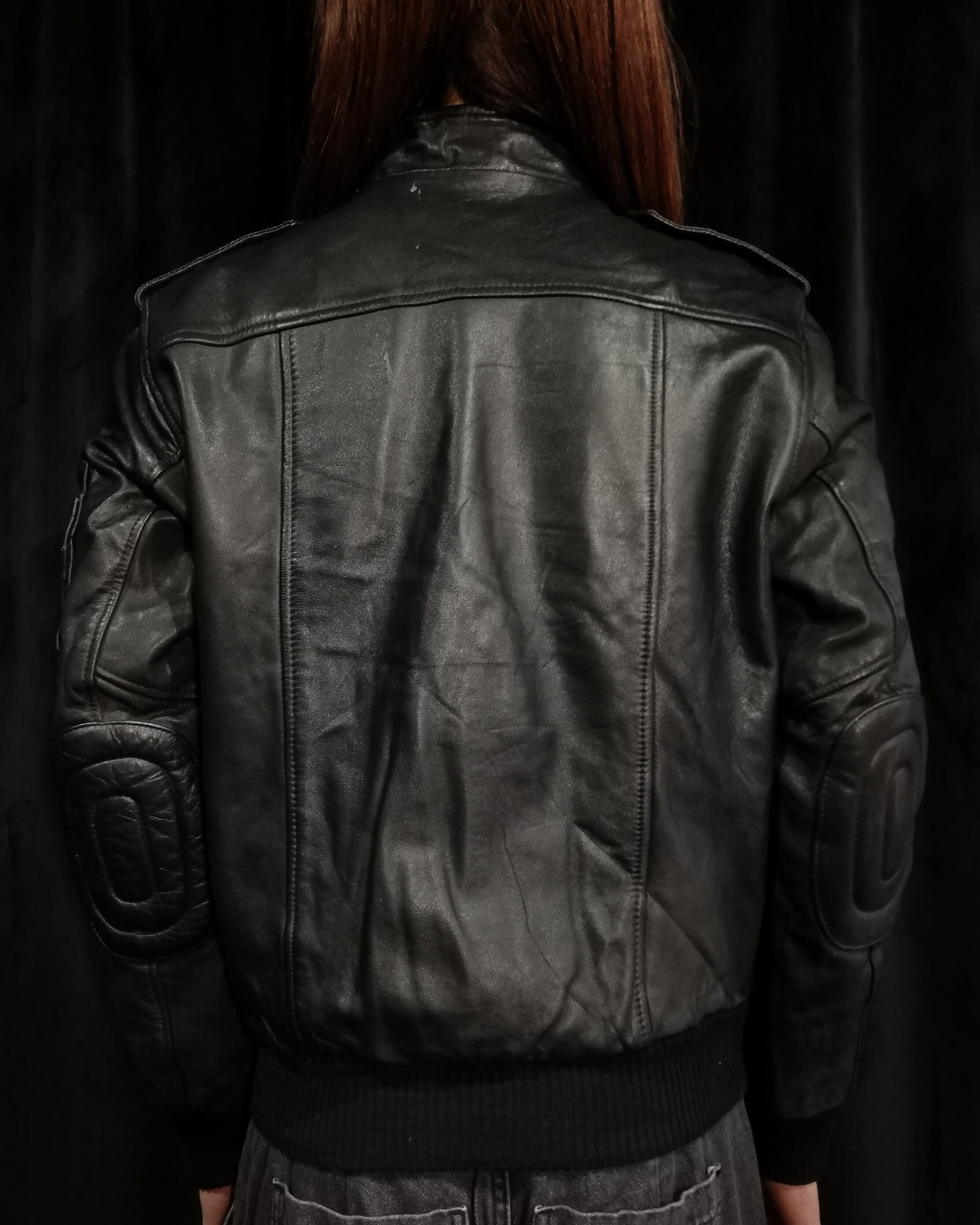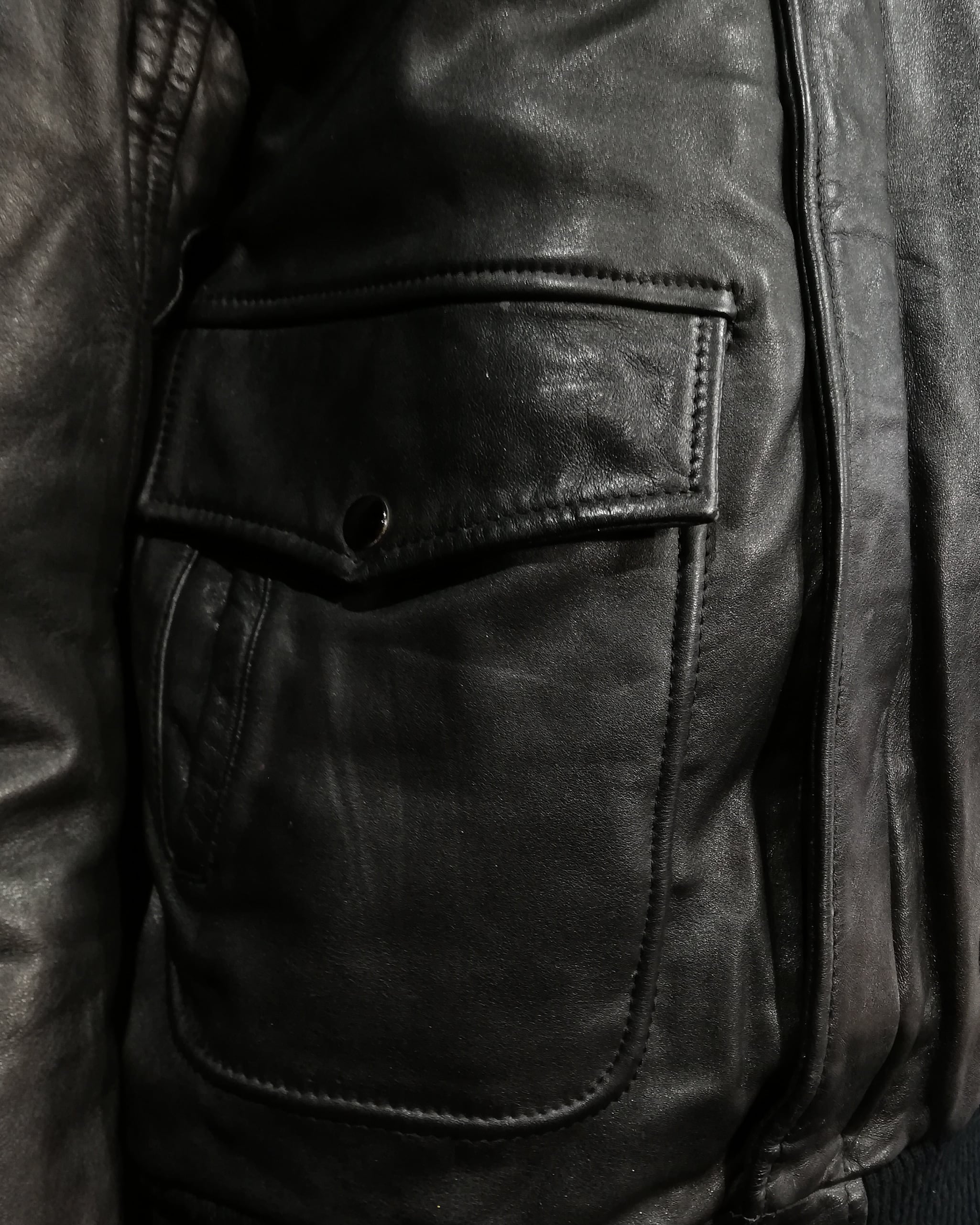 1931年に米陸軍航空隊に採用された、フライトジャケットの名作"A-2"をデザインソースにした1着。写真からもヒシヒシと伝わる上質なブラックレザーが無骨さを引き立ててくれています。