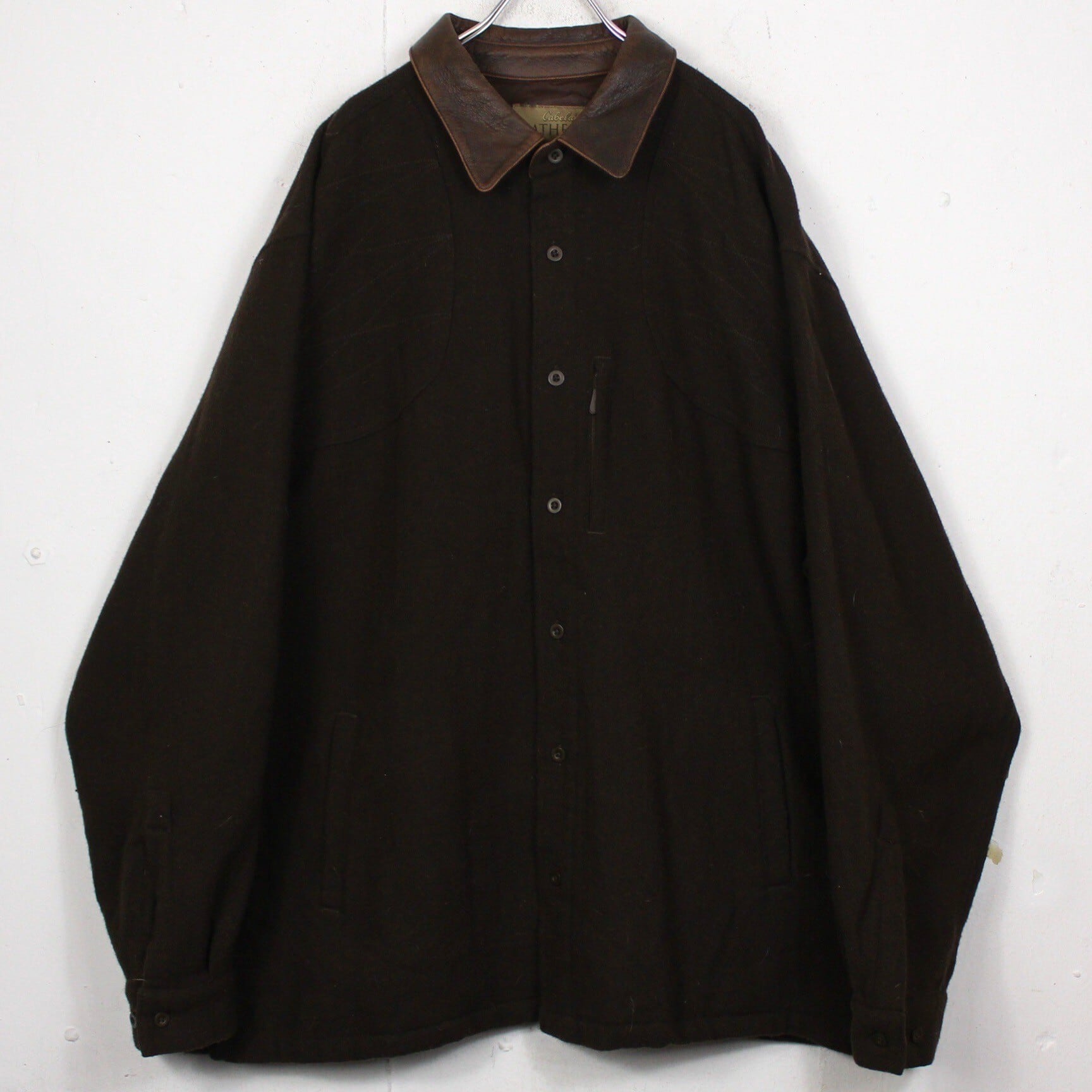 柔らかくきめ細やかなウールを用いたボディに、襟をブラウンレザーで切り替えた"Cabela's"のウールシャツジャケット。