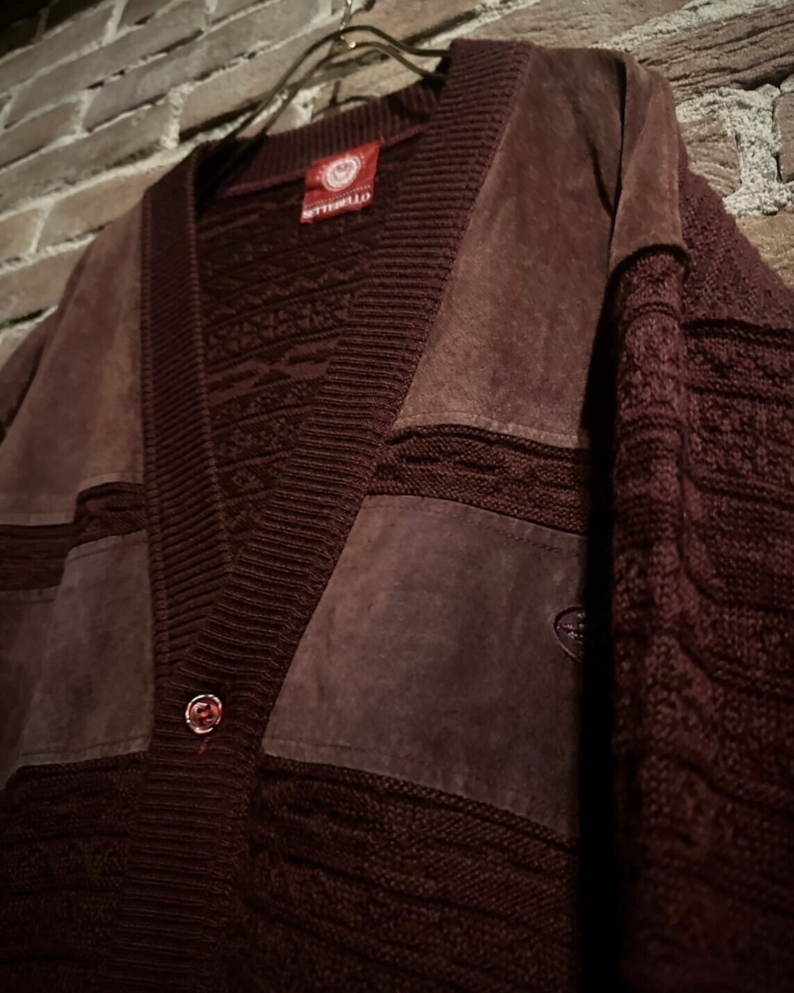 ニットカーディガンに大胆にレザーを切り替えた稀有な1着。ニット×レザーの異素材を巧みに組み合わせ1枚に纏め上げた、高級感をムンムンに漂わせるカーディガンのスペシャルな逸品です。
