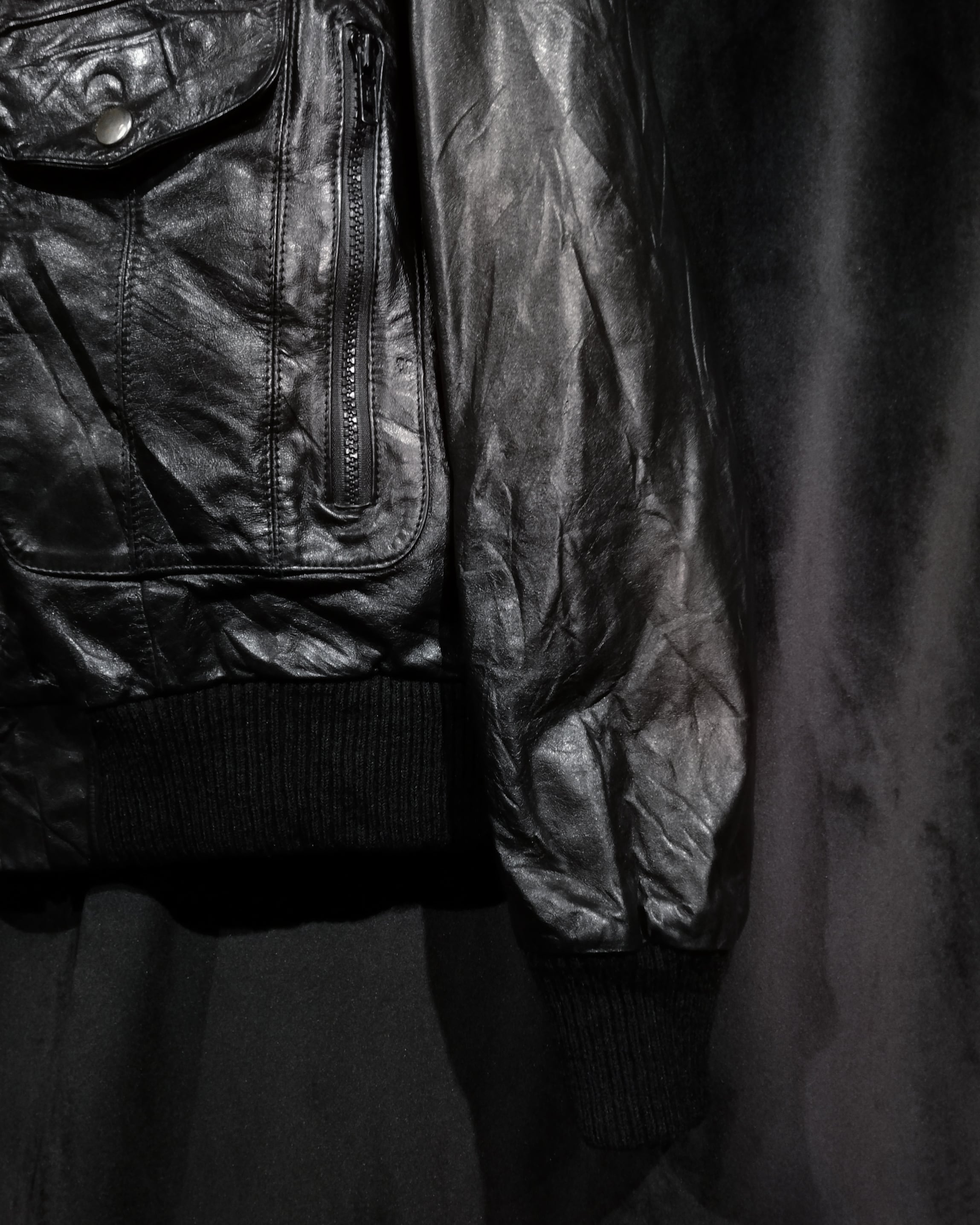 ハリがありながらも柔らかなブラックレザーを贅沢に用いたボディに、ポケットのギミックを載せたレザージャケット。