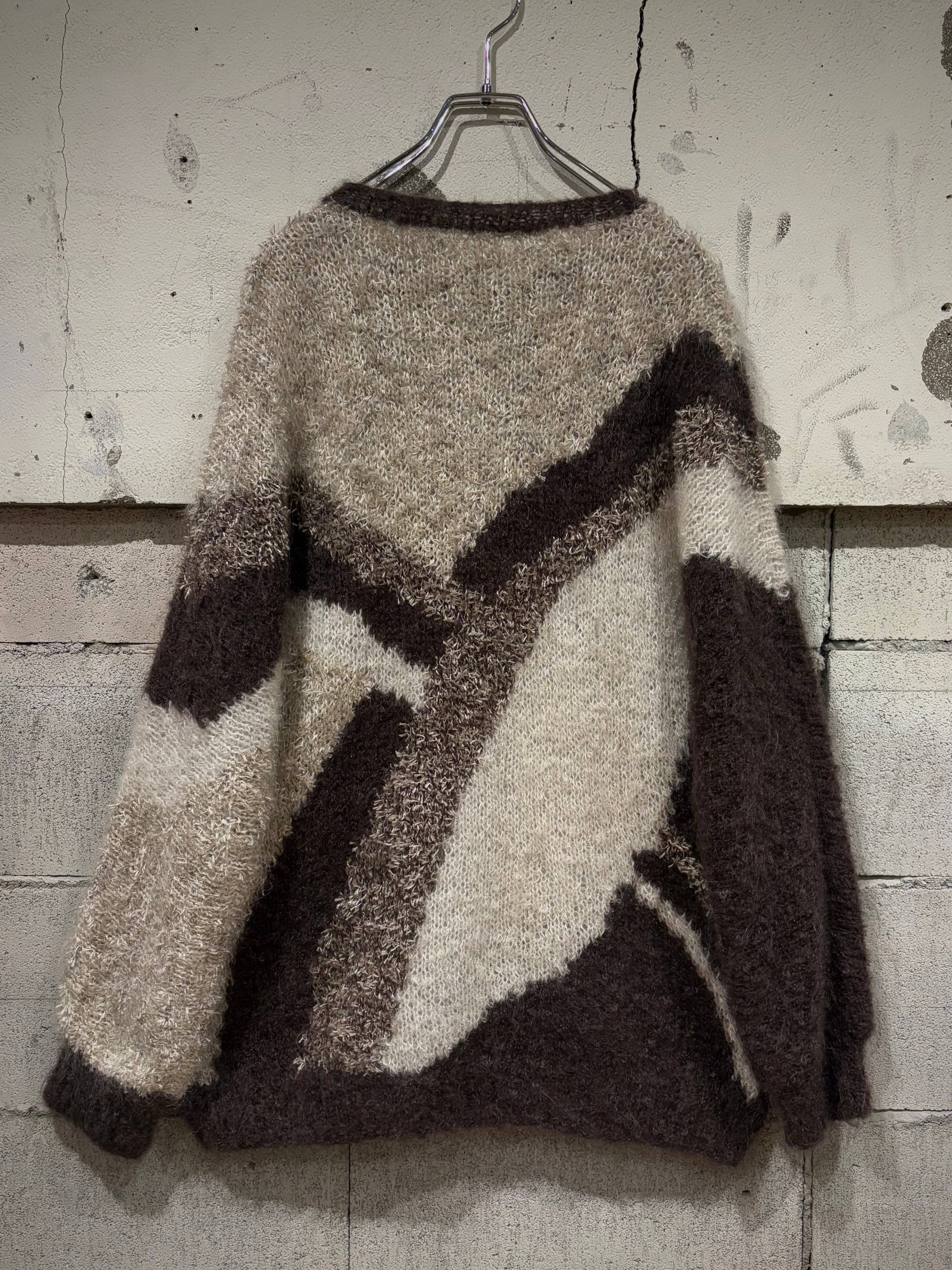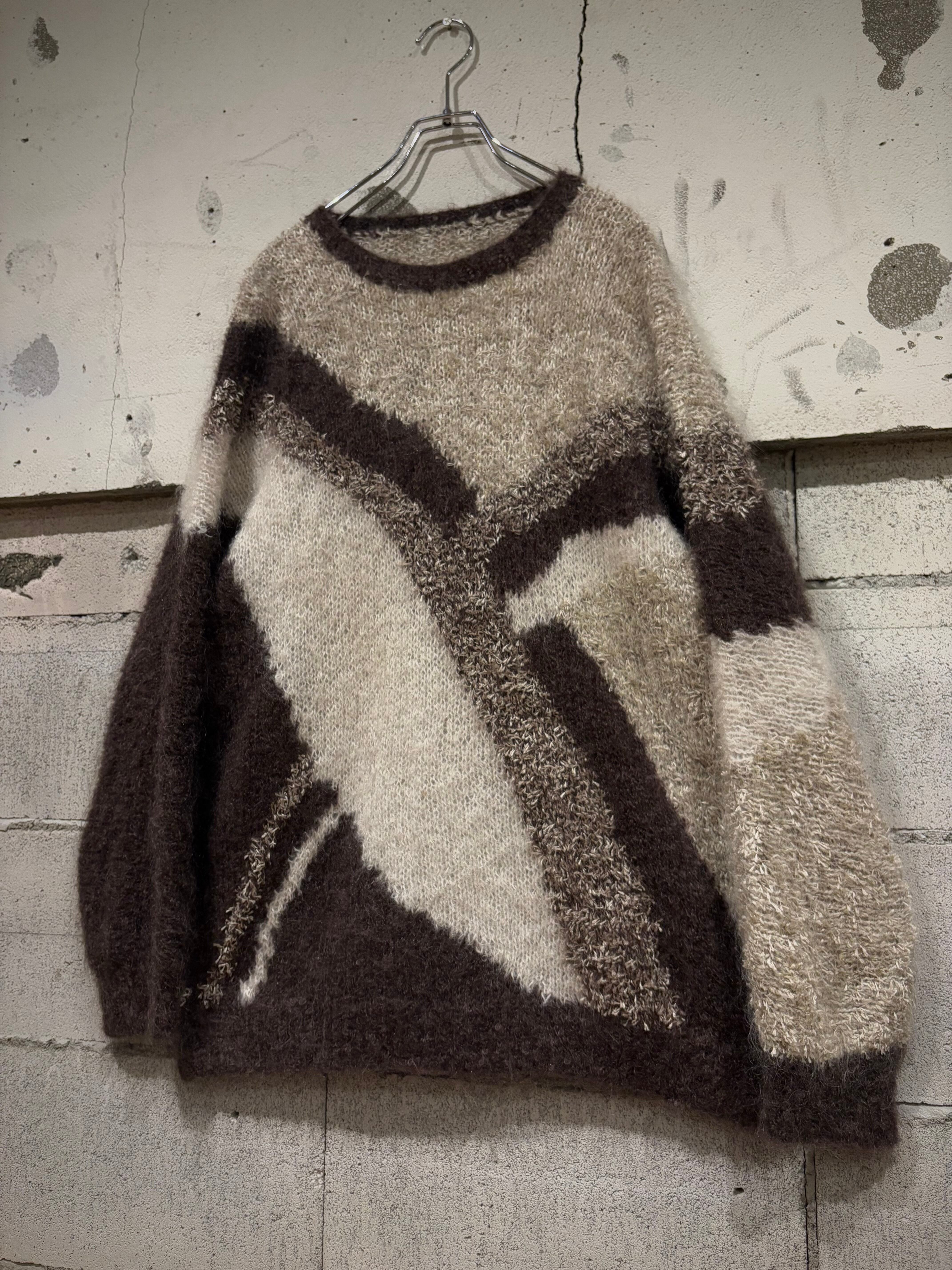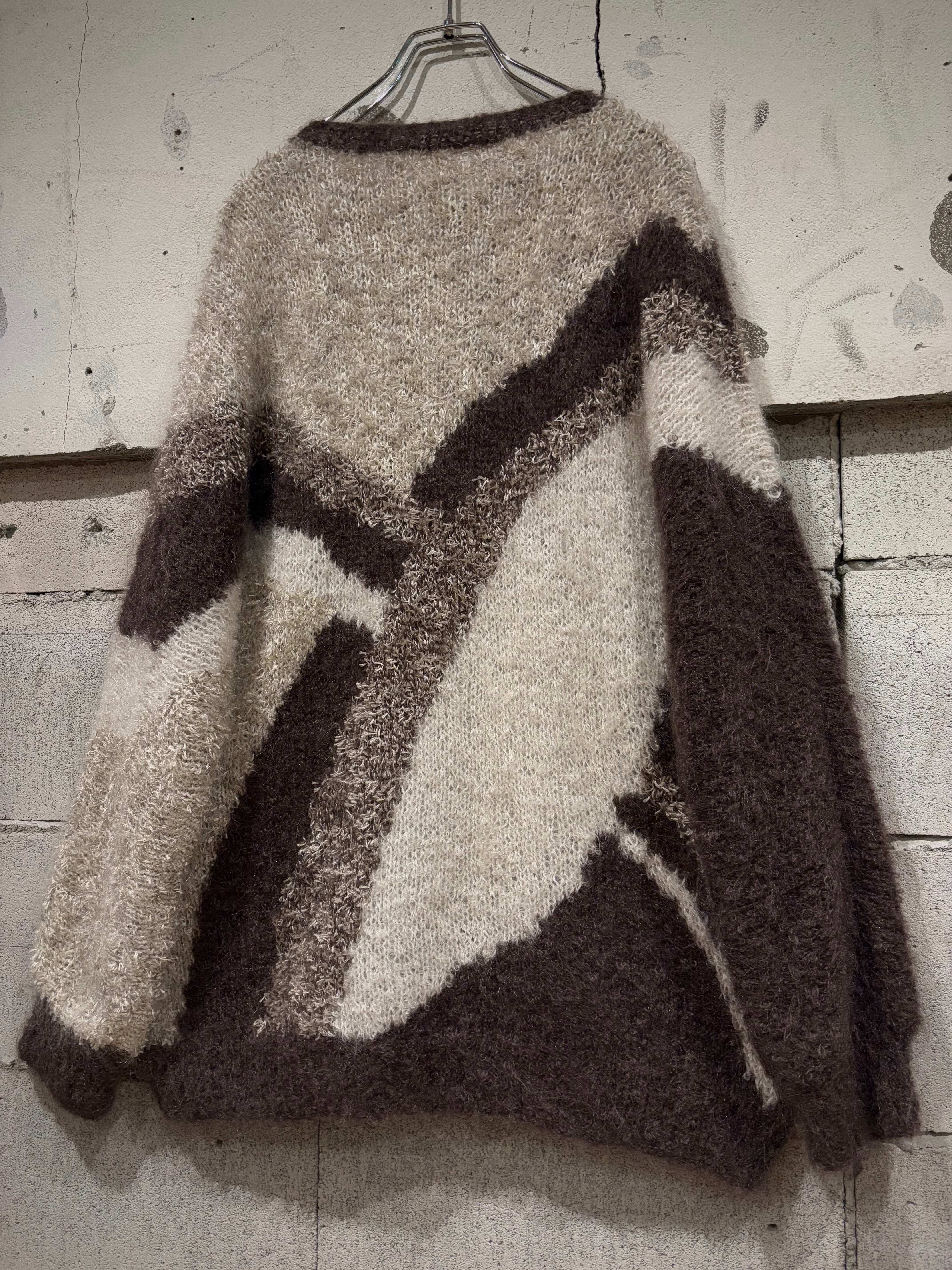 ブラウン、ベージュ、ホワイトの柔和なカラーリングで、アート状にボディを切り替えたヴィンテージニット。