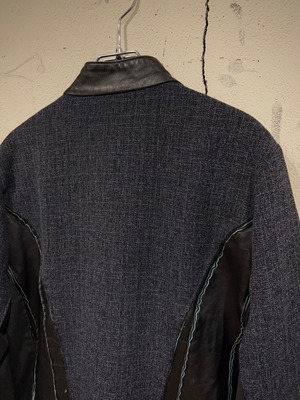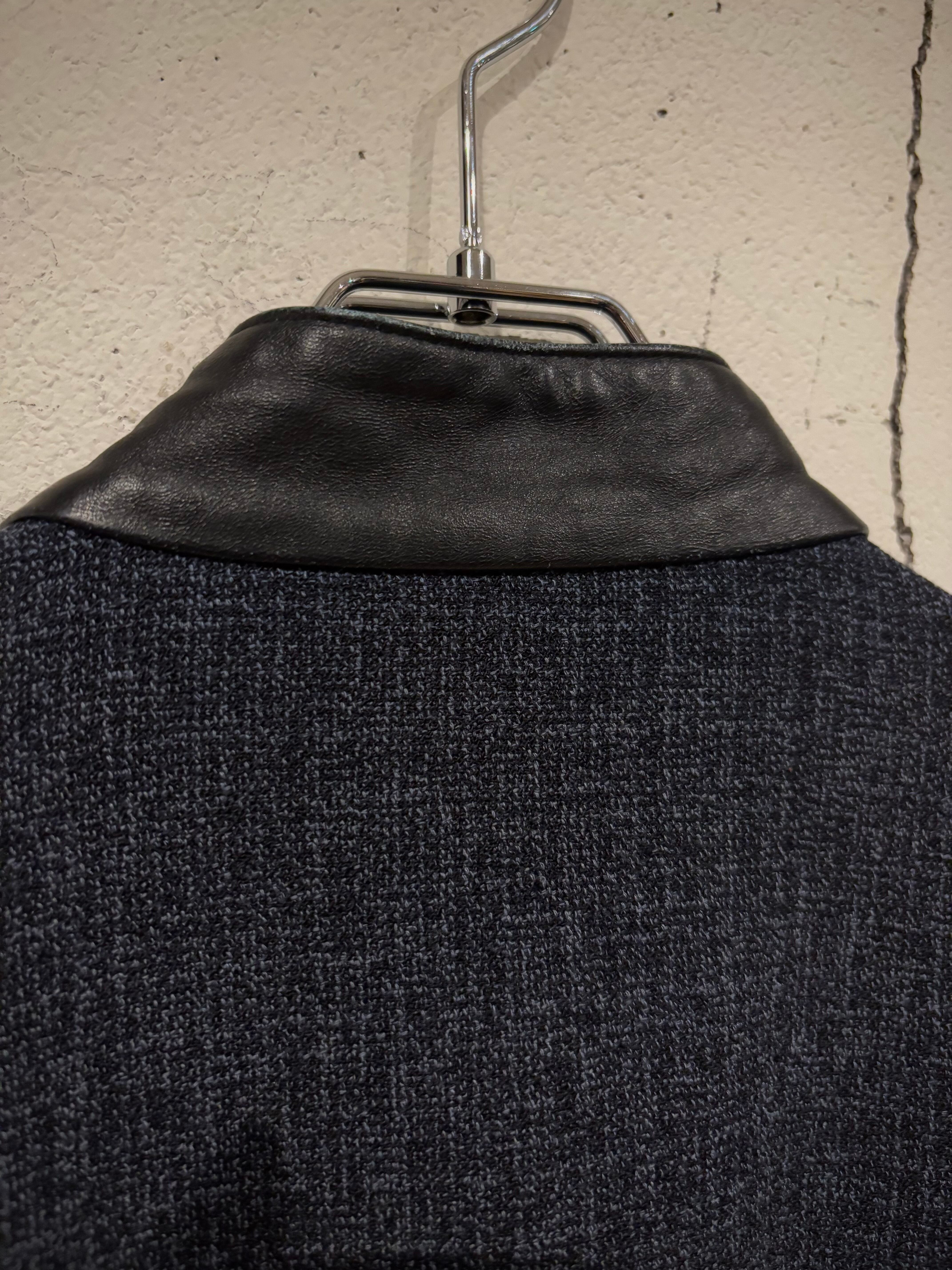 ポリを用いたボディをベースに、前身頃から背面にかけてハリのある上質なレザーを切り替えたジャケット。