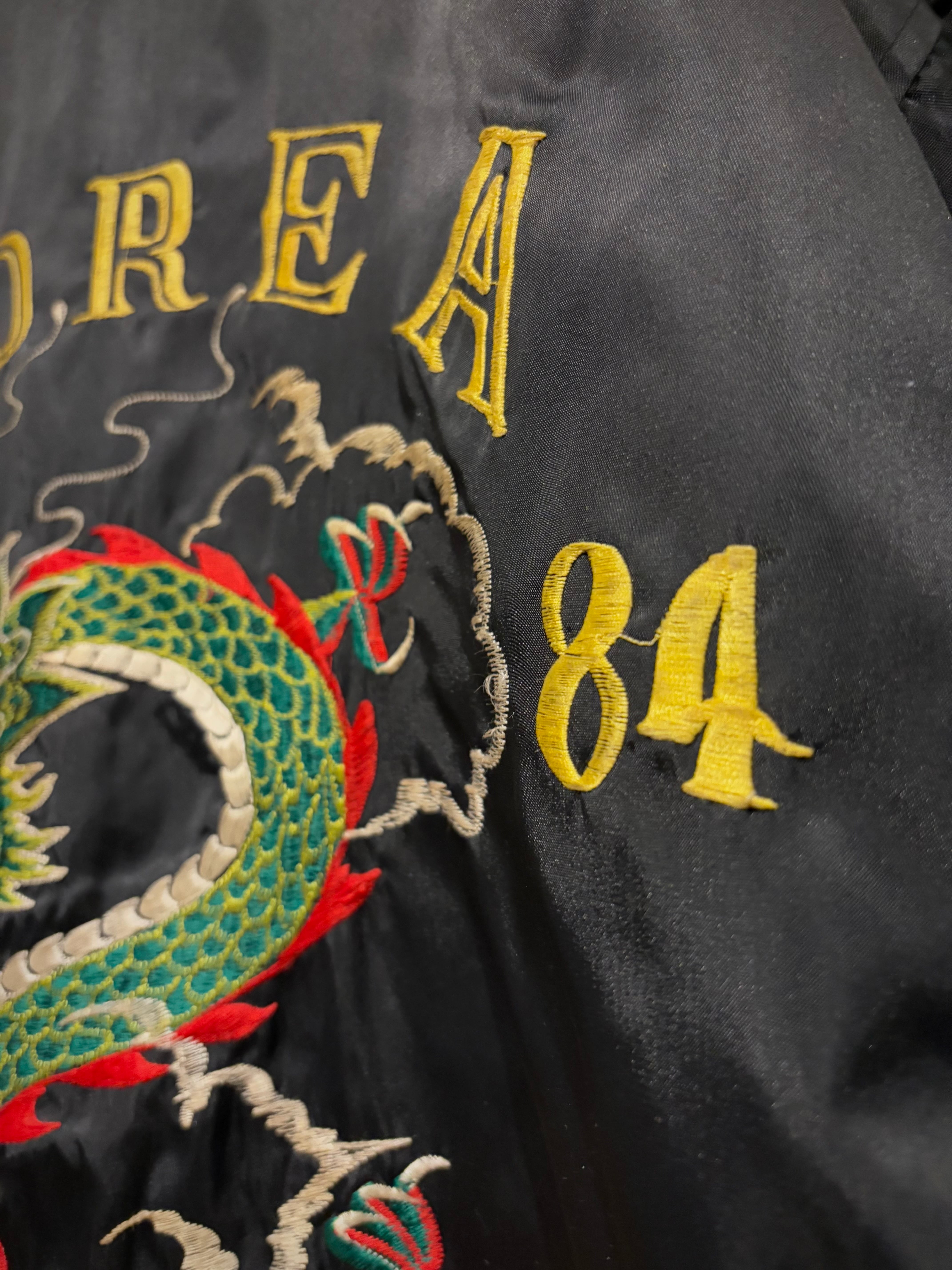ハリのあるネイビーのボディをベースに、背面に竜の刺繍を刻み込んだコリアジャケット。