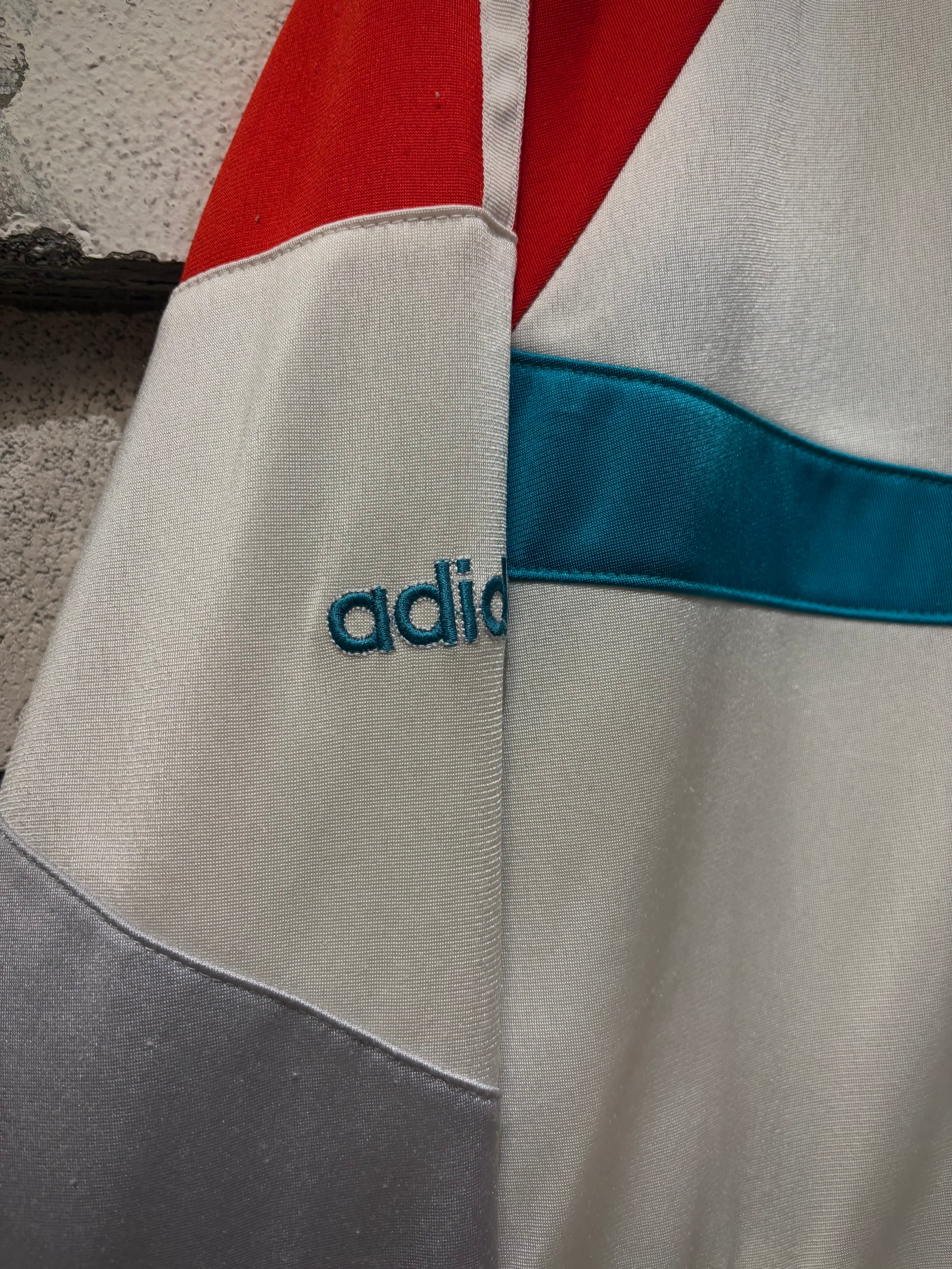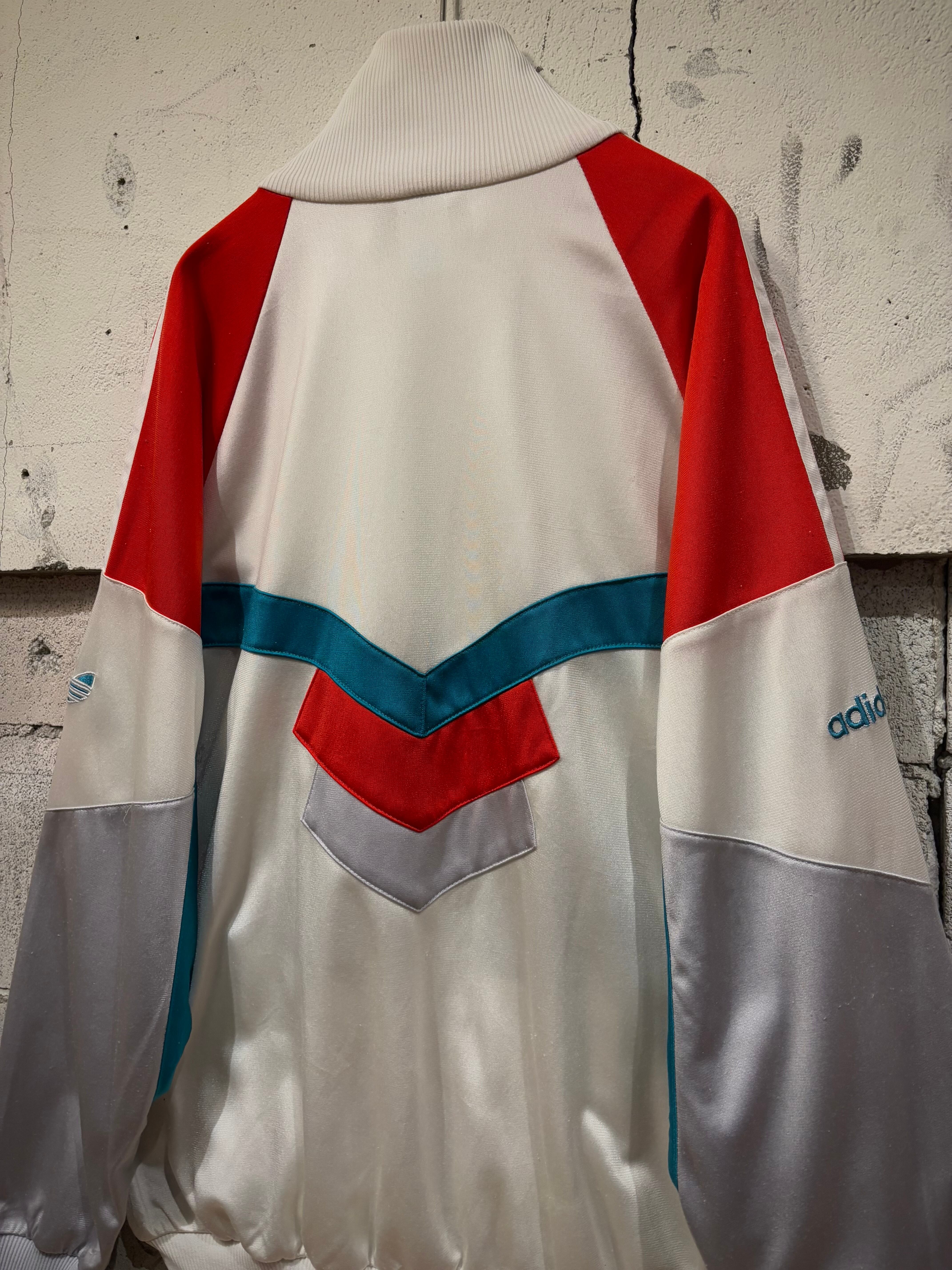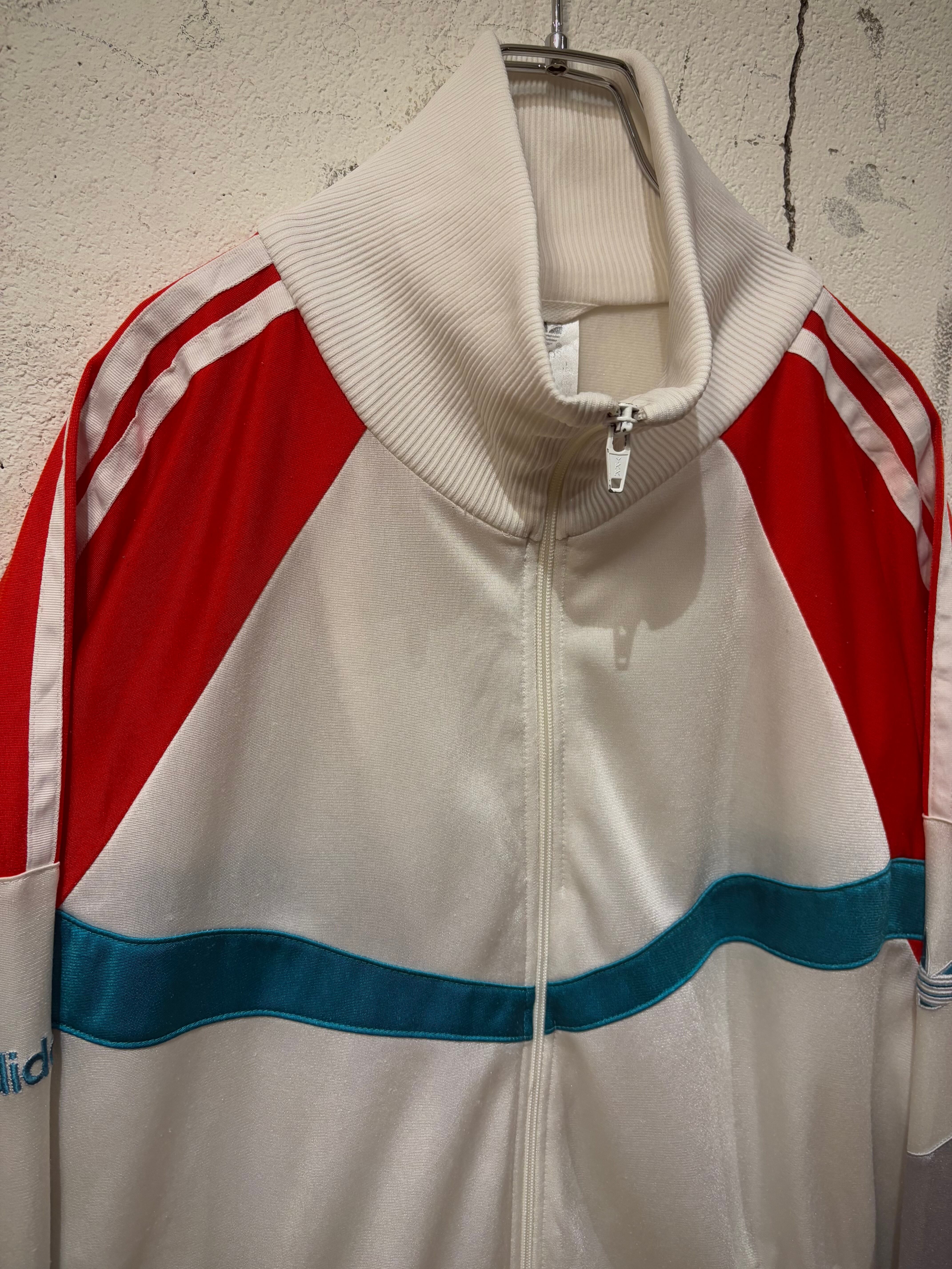 白をベースとし、赤×緑のカラーリングで切り替えられた80〜90's adidasのトラックジャケット。