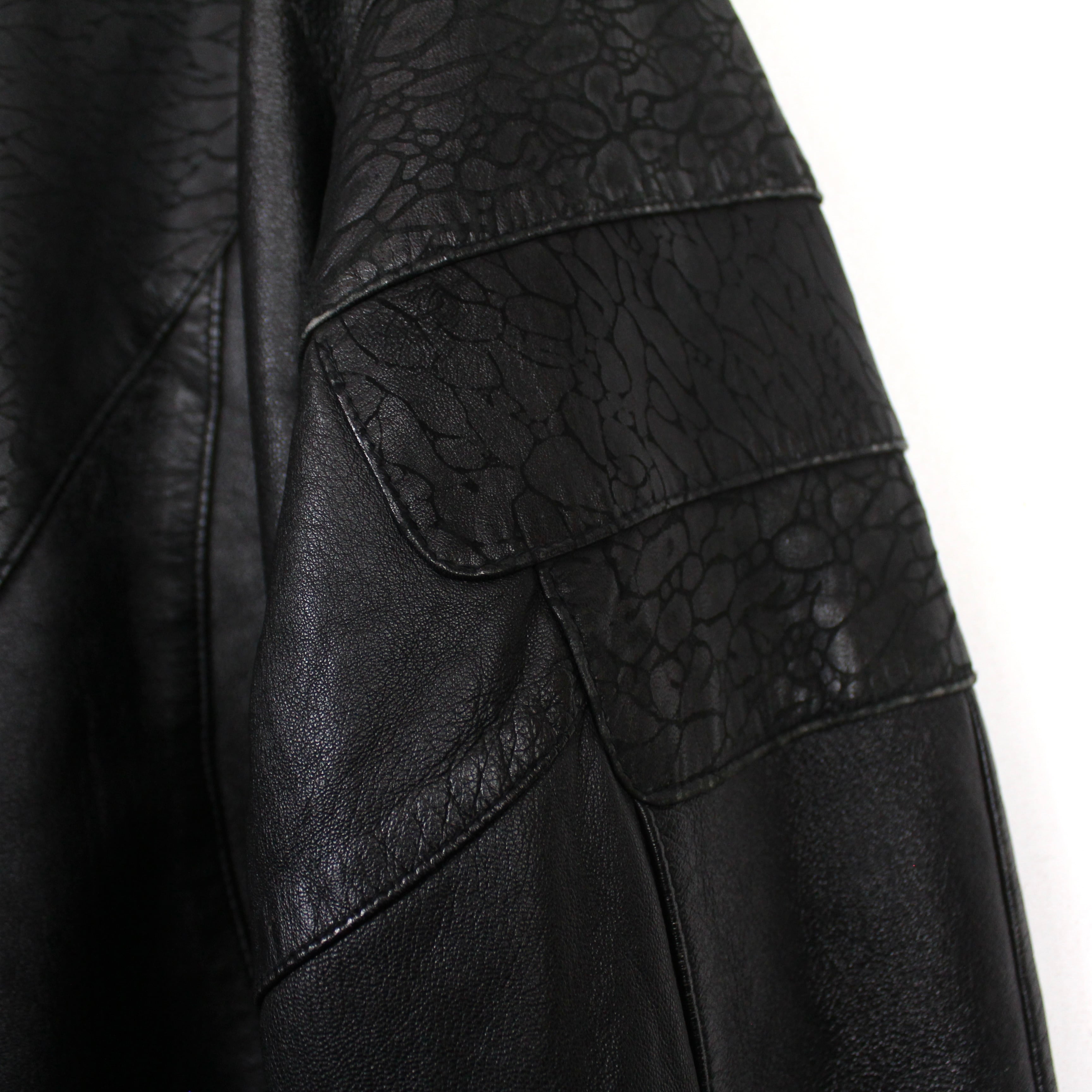 ボディにはセメント柄調のデザインを切り替え、ブラックのボディにより一層深みと表情の豊かさをプラス。ヴィンテージレザーにおいてこの様にデザインの効いたアイテムは中々お目にかかれません、、、