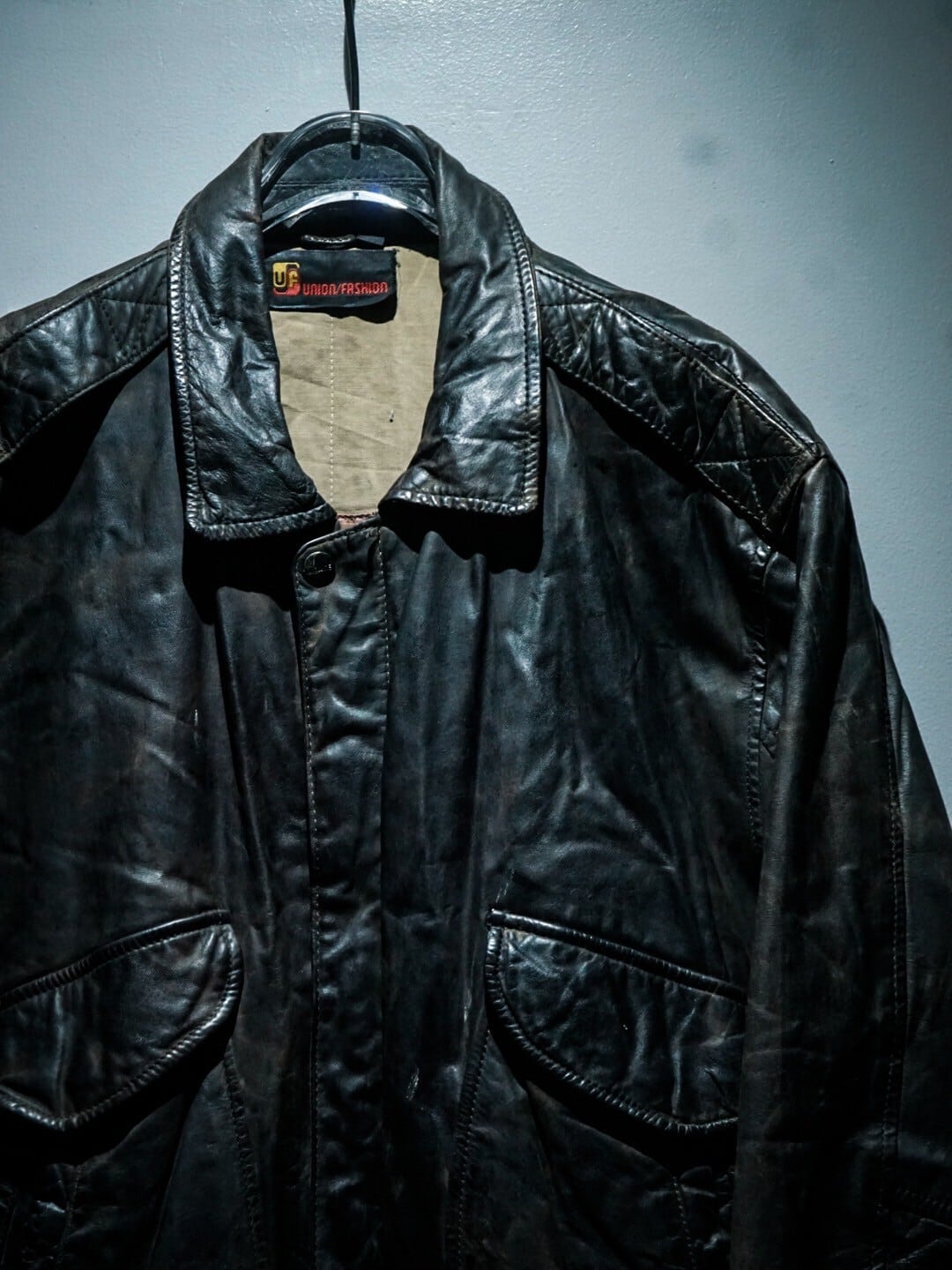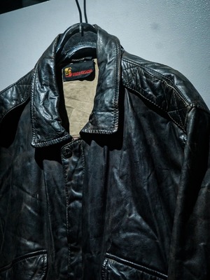 経年によるレザー特有のエイジングが味わい深く、マッドな光沢が雰囲気を底上げしたブラウンレザーにフライトジャケットの代表格である"A-2"型を落とし込んだレザージャケット。