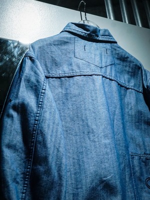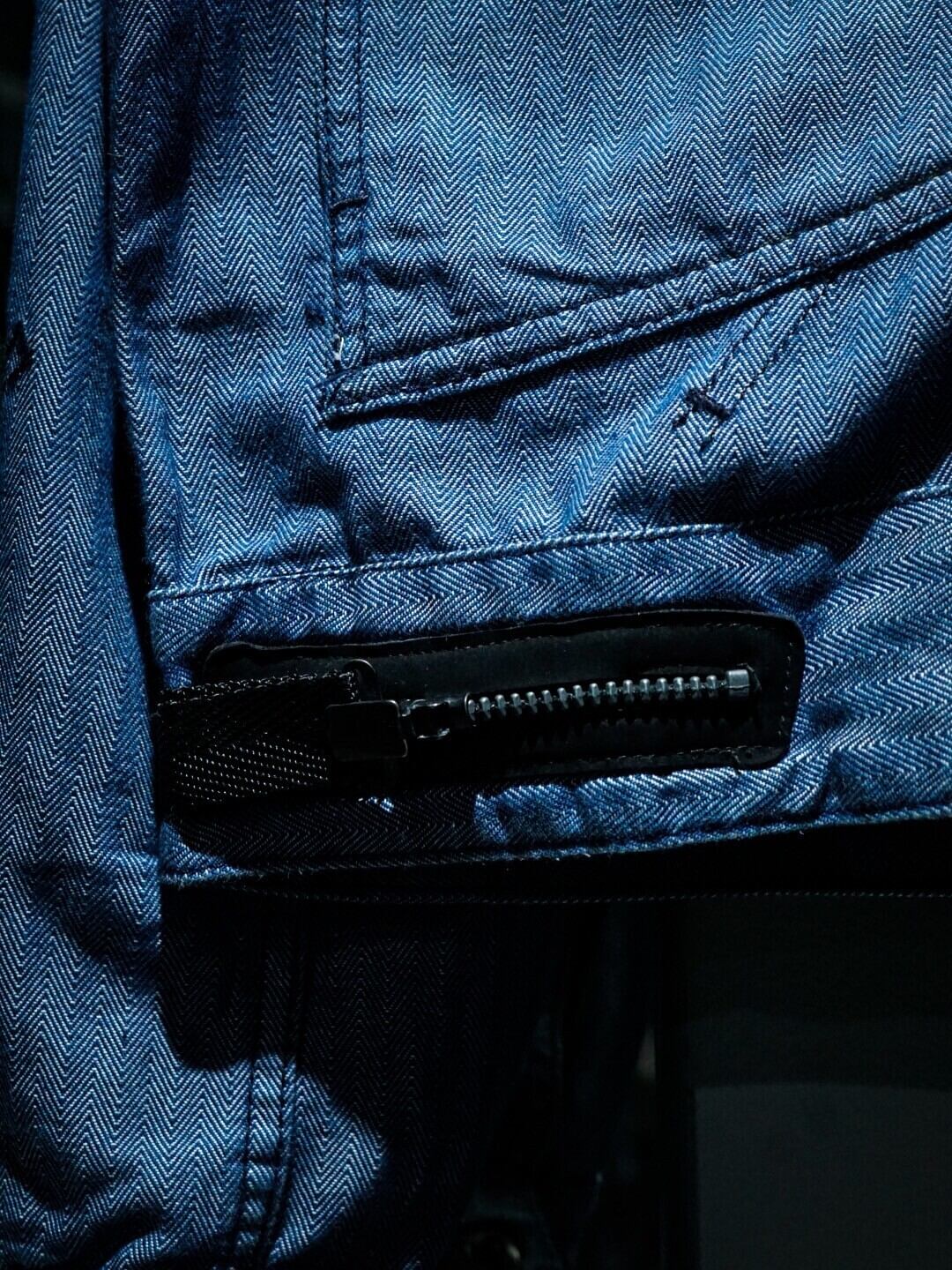 広く採られた身幅に、短丈に仕上げられた着丈と、バランスの取れたシルエットに加え、両胸やアームにはダーツを施した、着用時のソリッドな見栄えも非常に格好良い。
