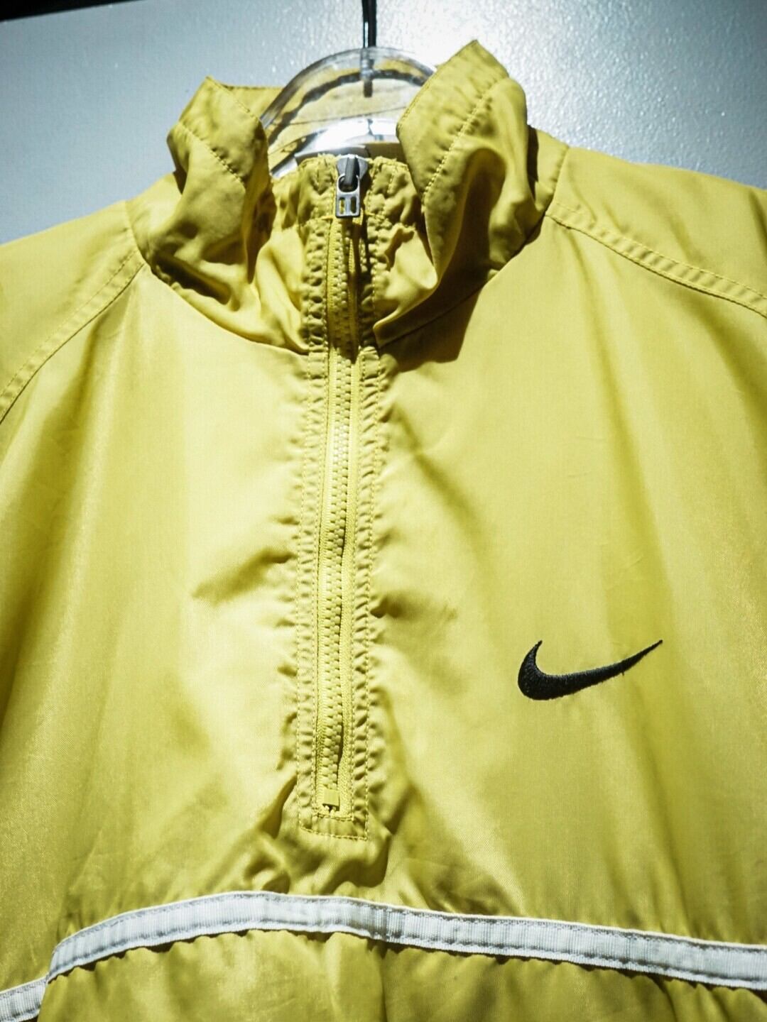ハリのあるナイロン生地をボディに用い、鮮やかなイエローで仕上げられた90's "NIKE"のハーフジッププルオーバー。