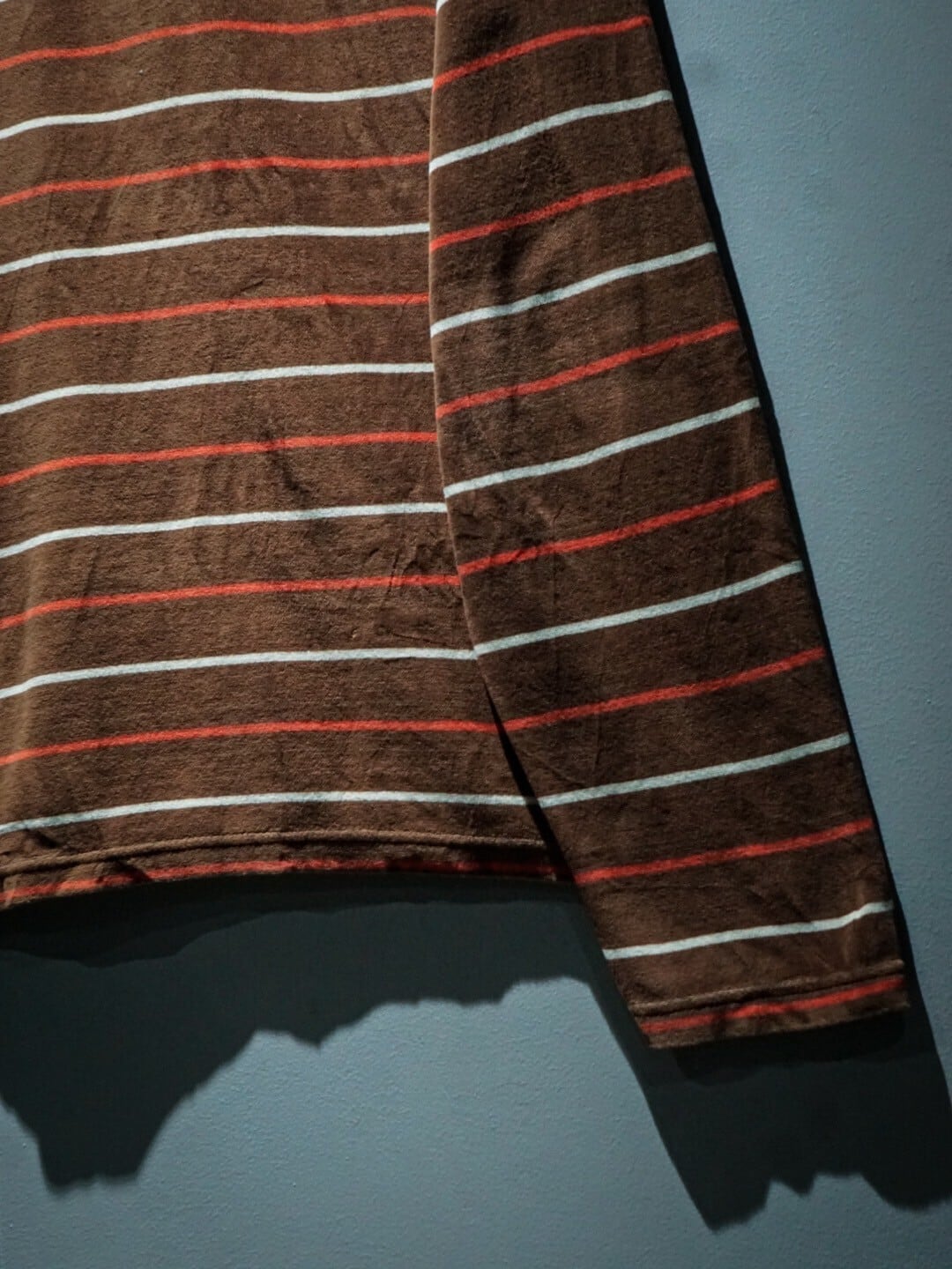 テキスタイルにはパイル生地を採用。ベロアのようなテクスチャーを持ち、春先や今時期のインナーとしては非常に取り回しが◎