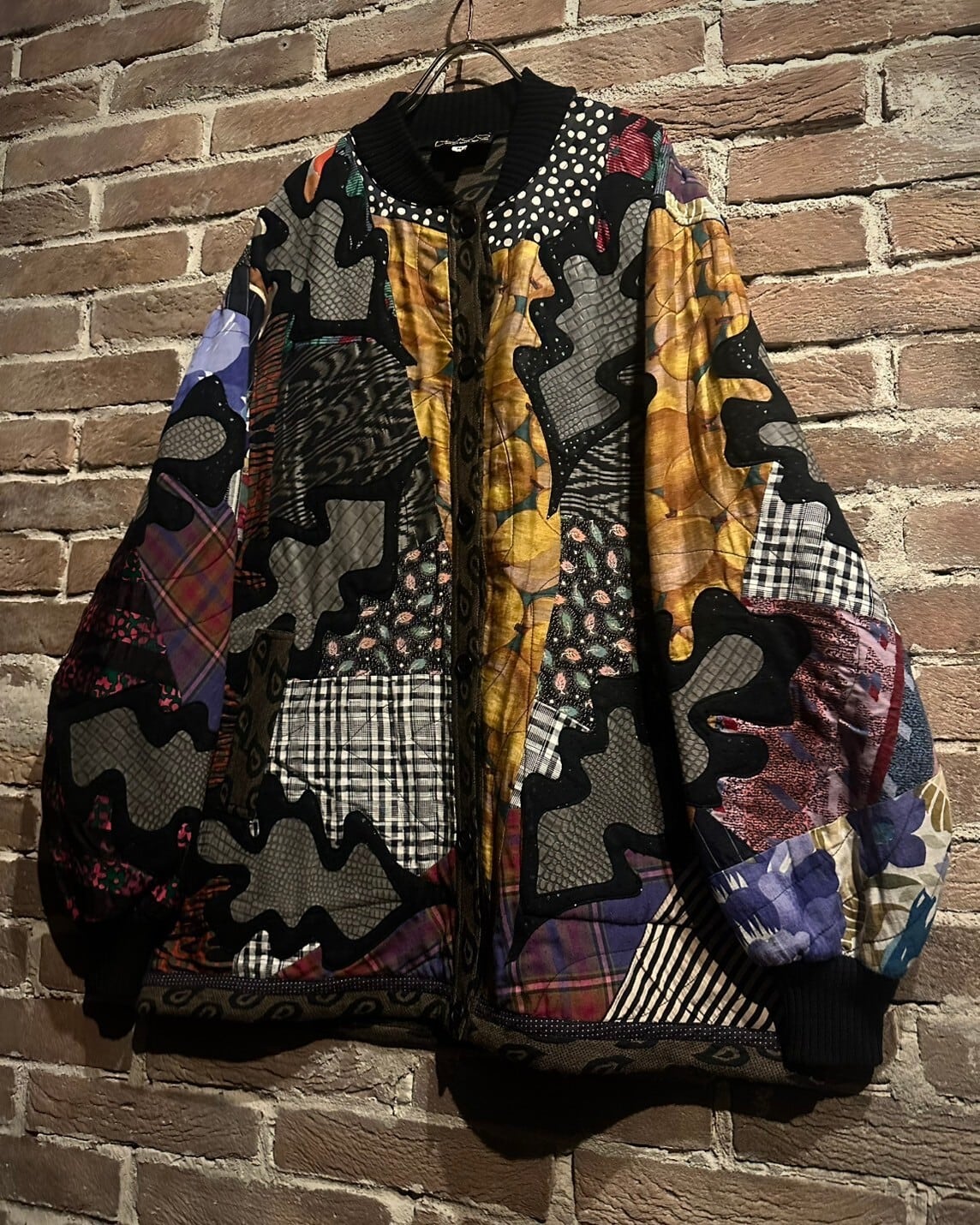 クロコダイル柄、チェック、ドット、レオパードなど様々なデザインのテキスタイルをパッチワークによって仕上げたスペシャルなブルゾンジャケット。