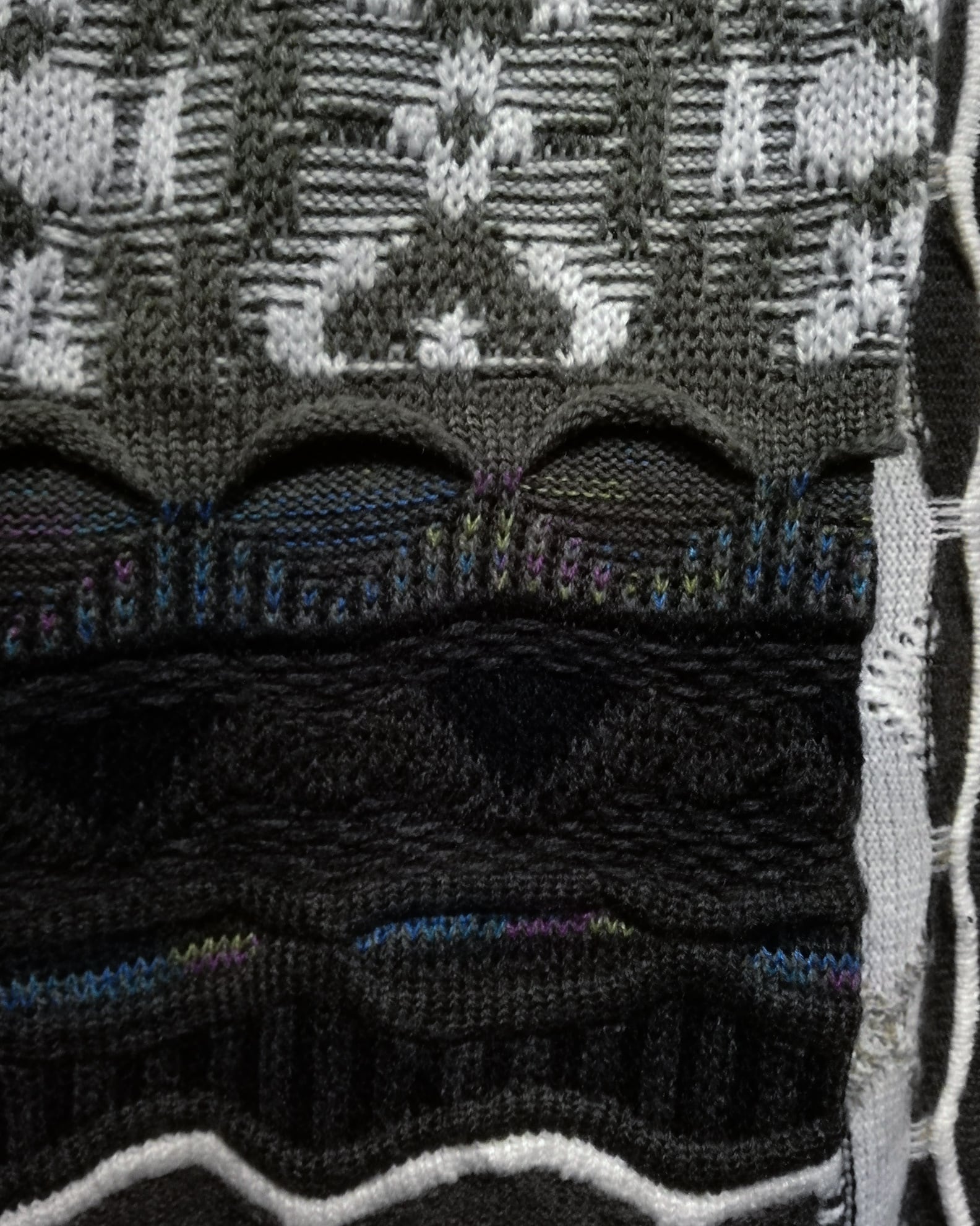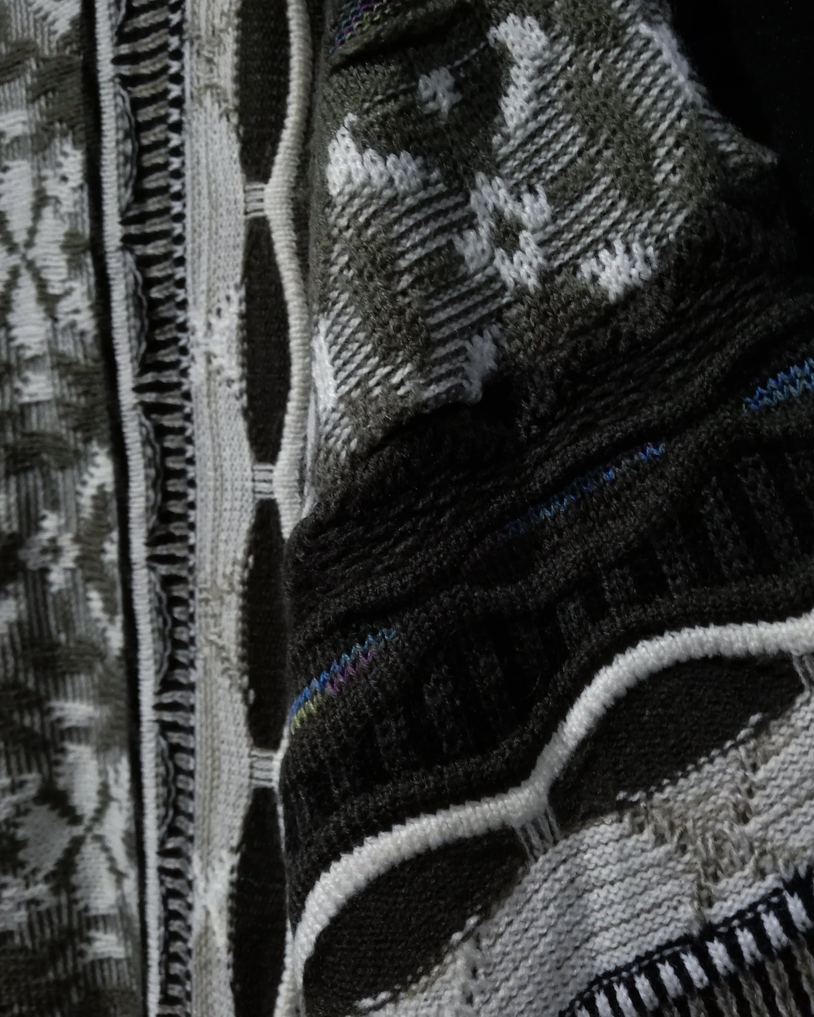 全体を白、黒、ベージュ、カーキ等のアースカラーで仕上げられた3Dニット。3Dニット特有の美しいうねりが効いたボディは非常に緻密で、クオリティハイな1着です。