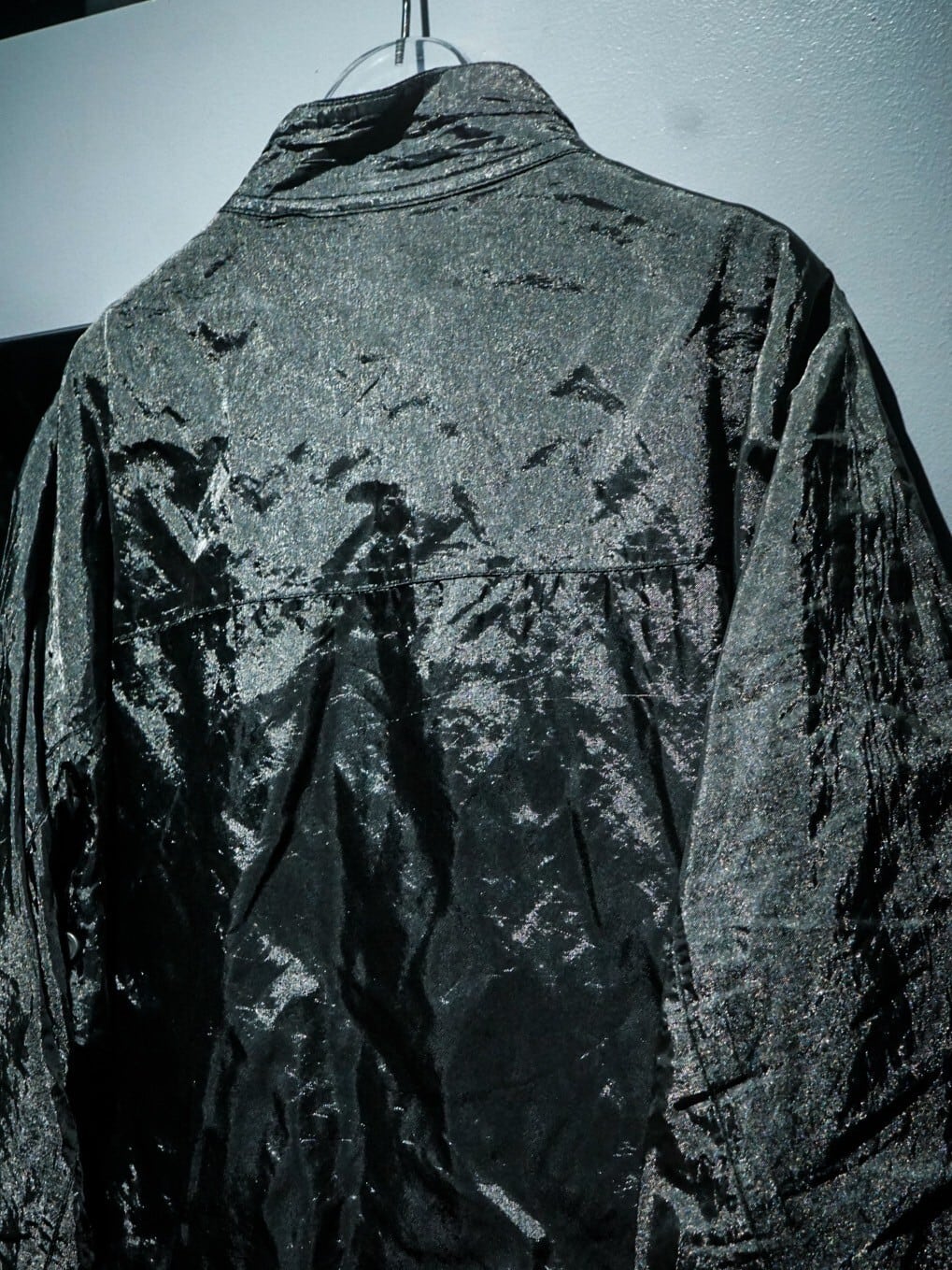 ガンメタリックなシルバーカラーを用いたジャケット。この型はベルスタッフの中では定番とされますが、ガンメタリックは稀有。無骨さに加えクラシカルな風合いを漂わせる1着。
