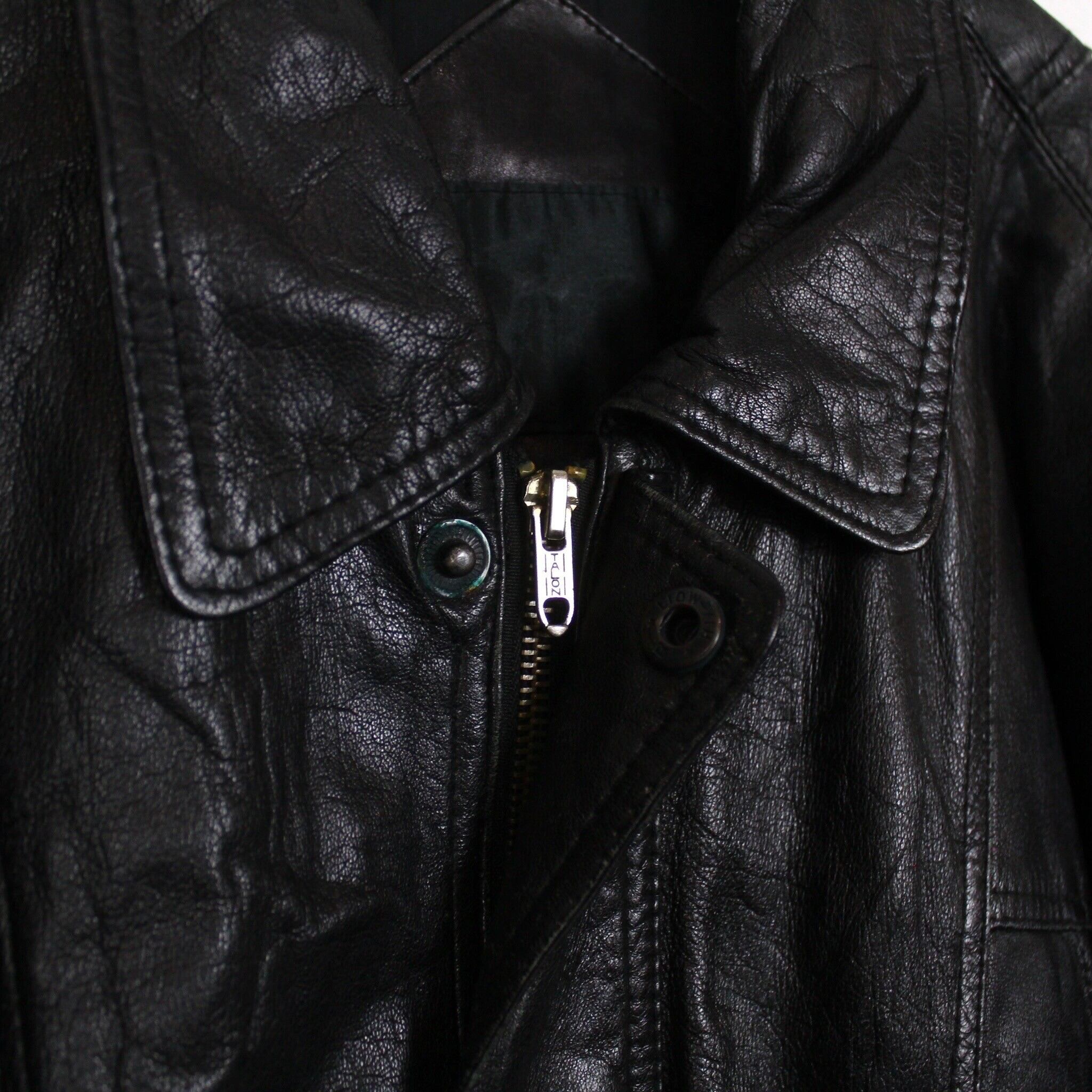 レザー特有の光沢を纏いながら、ハリ、コシを兼ね備えた上質なブラックの極上レザーを用いた1着。