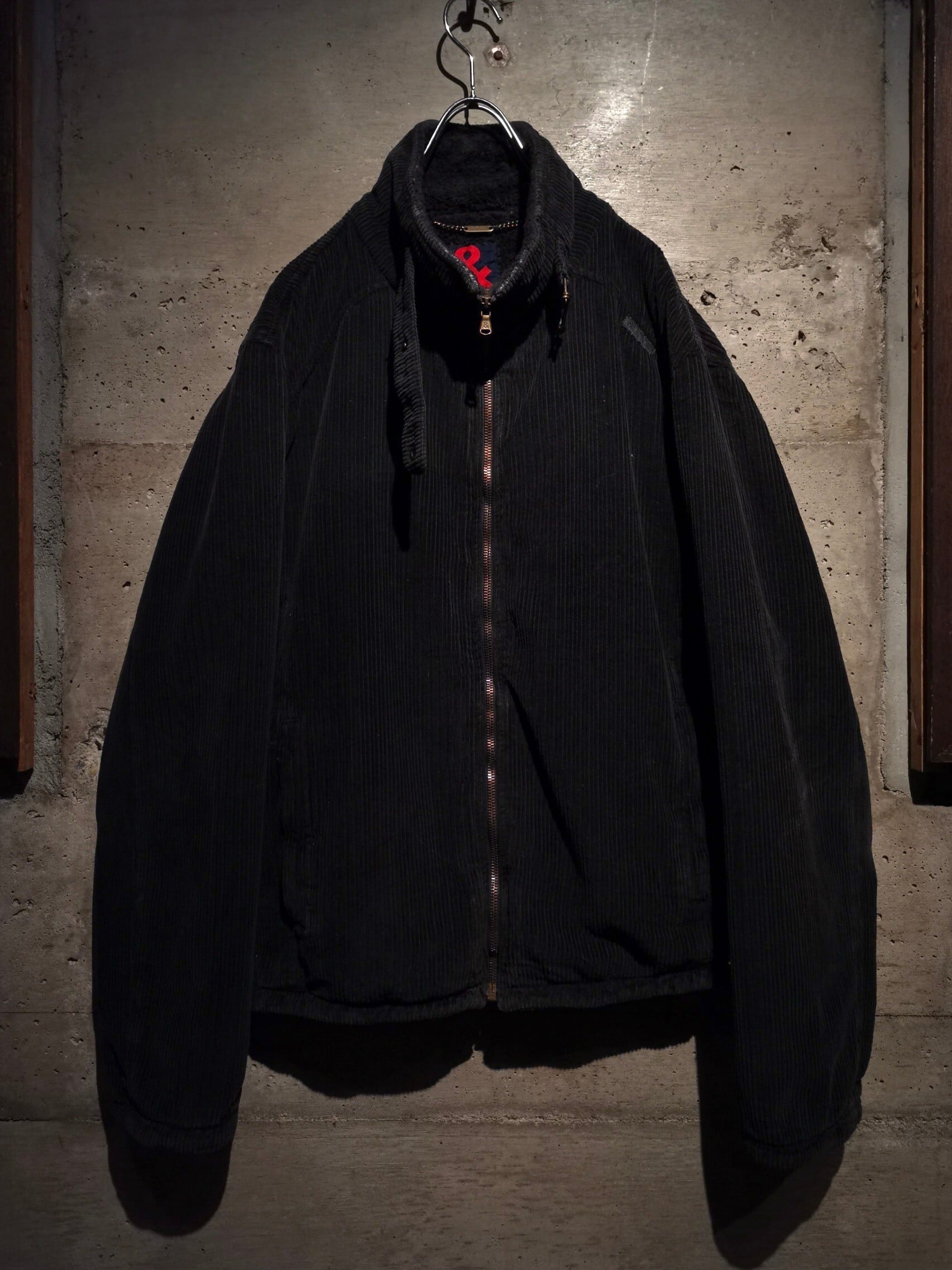 ダークグレーの太畝のコーデュロイをボディに使用したジップアップジャケット。