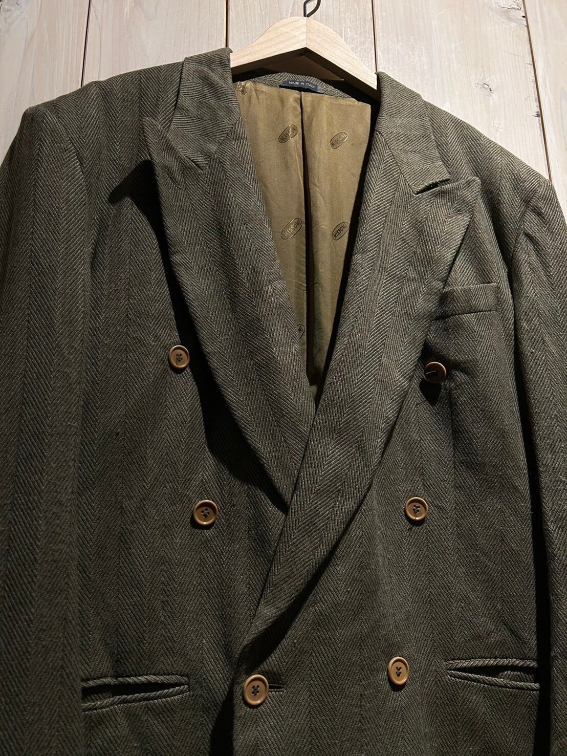 "MISSONI"といえばニットが有名ですが、こちらは同ブランドでは珍しい上質な素材が使用されたダブル仕様のテーラードジャケット。