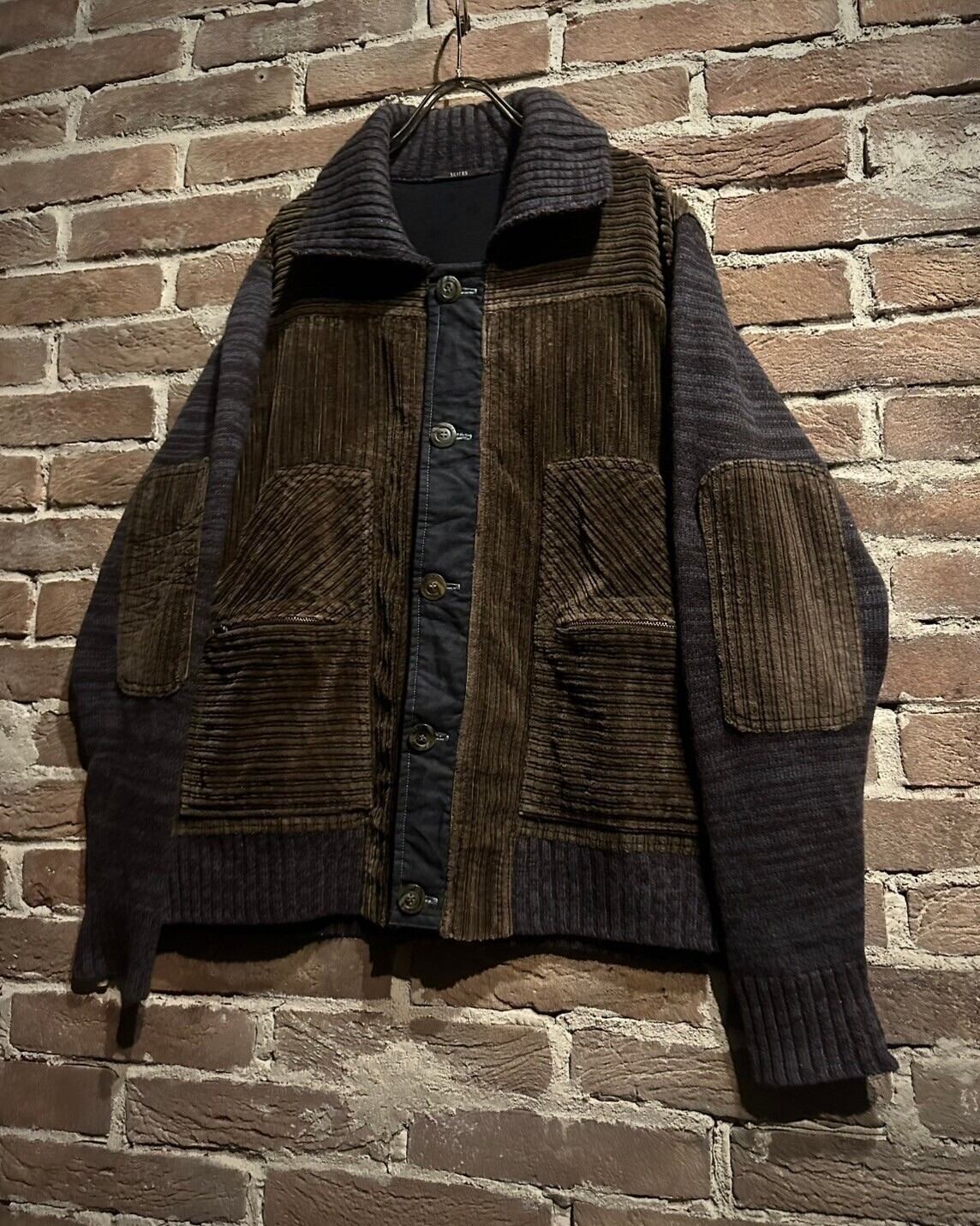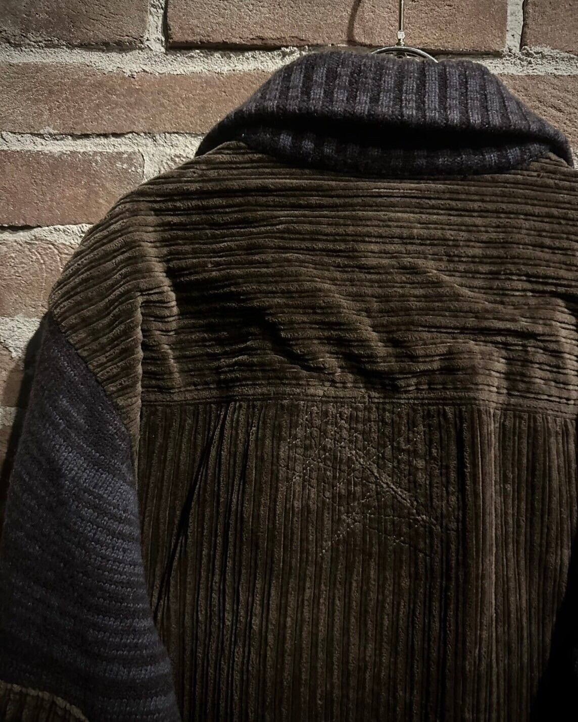 太畝のブラウンコーデュロイと、肉感のある上質なニットを切り替えたニットジャケット。