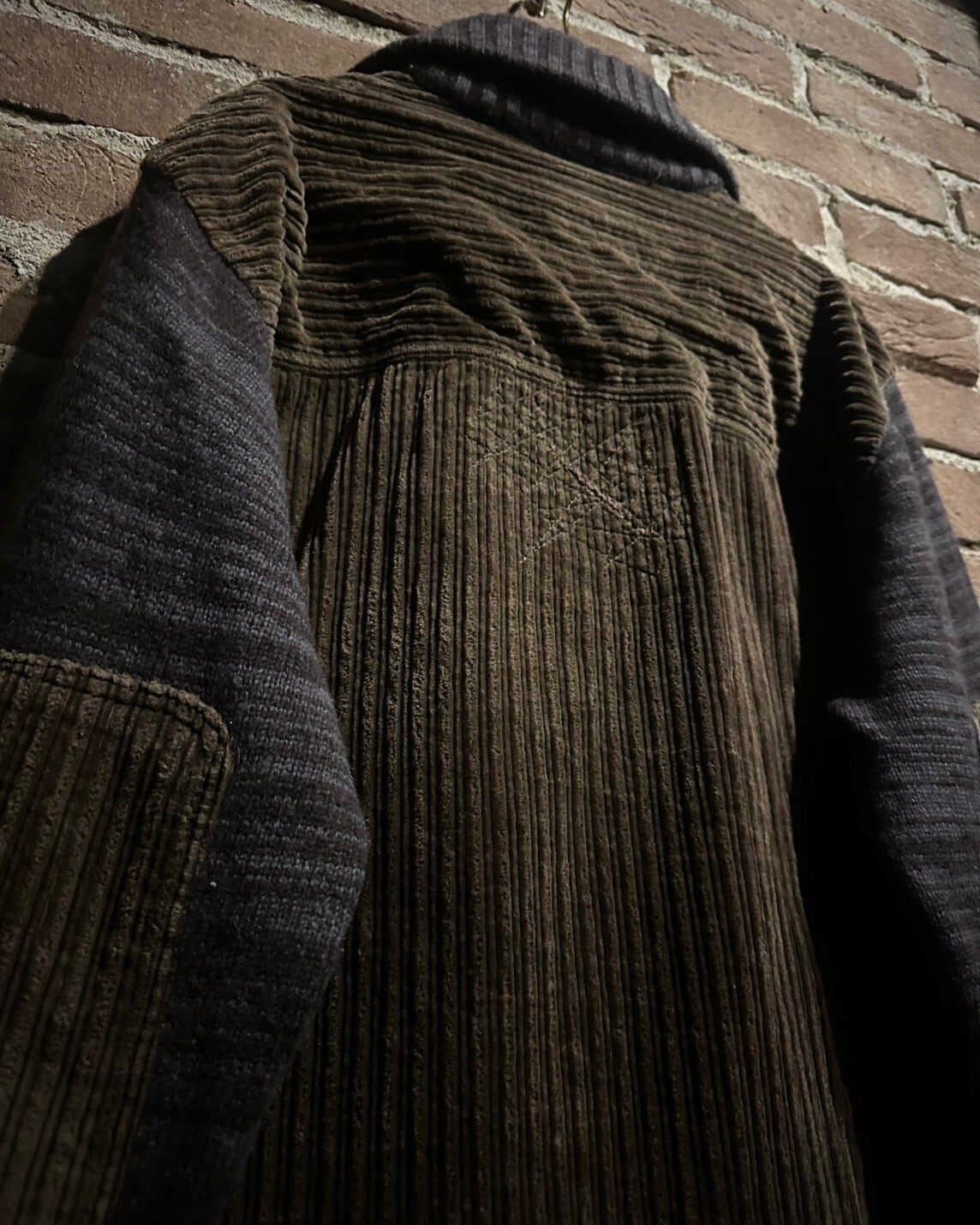 秋冬の代名詞とも言えるコーデュロイとニット両方を1着に落とし込んだ贅沢な逸品。異素材を掛け合わせた事で立体感が演出されています。