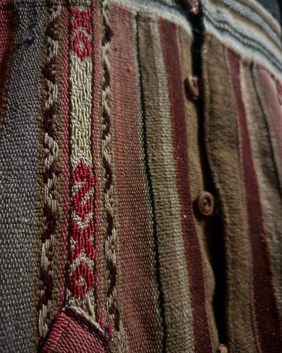 上質なゴブラン織を用いて、エスニック調の柄模様を織り成したジャケット。