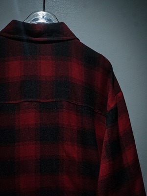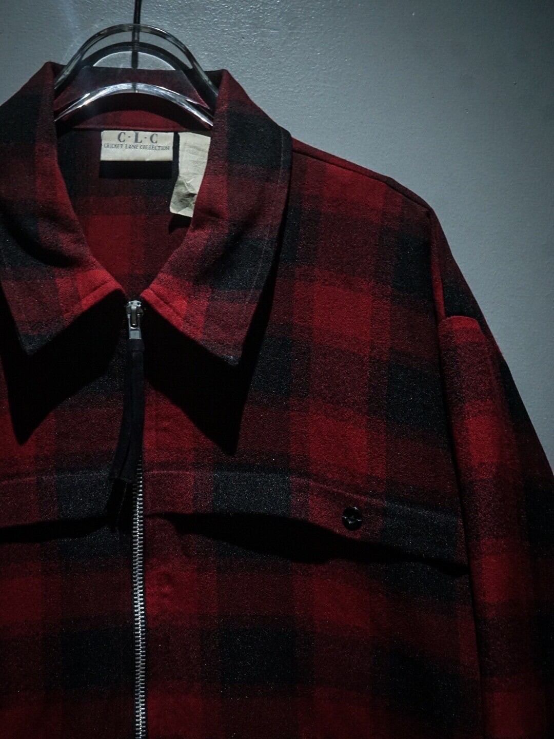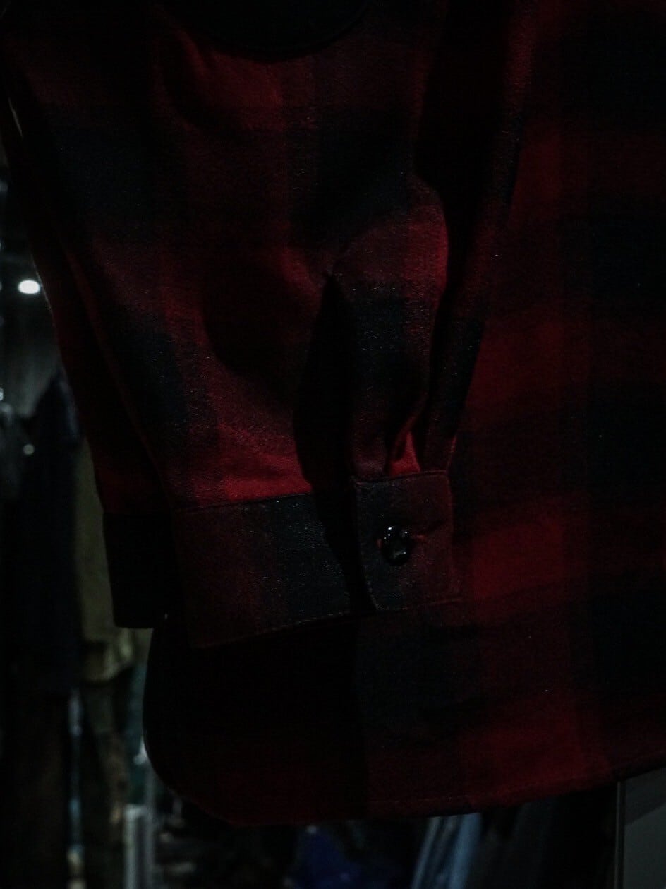 赤×黒のバッファローチェックを載せた、稀有なハーフジッププルオーバータイプの長袖シャツ。