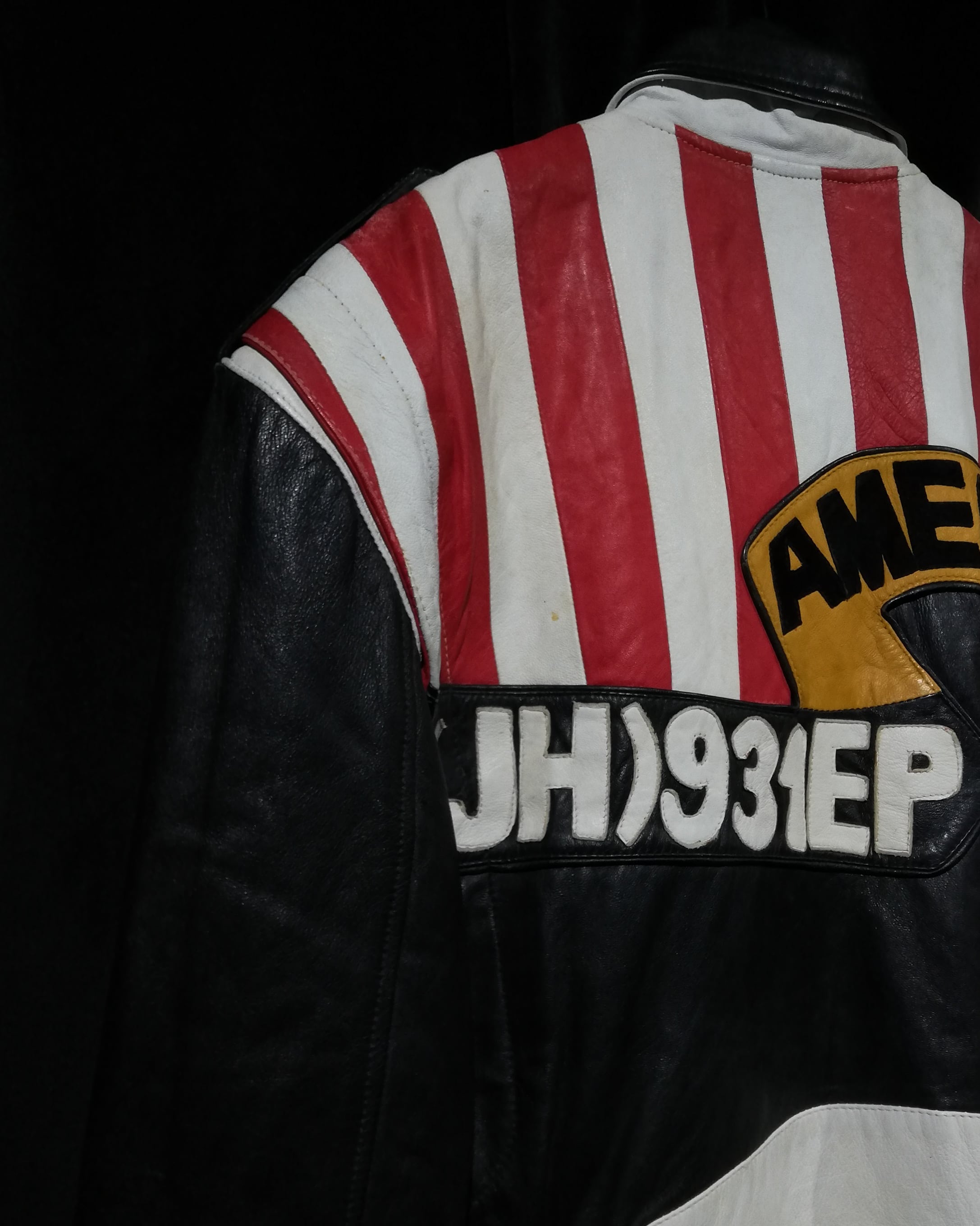 黒×赤×白の上質なレザーを使用し、巧みなレザー使いによって生み出された抜群の存在感を放つレザージャケット。