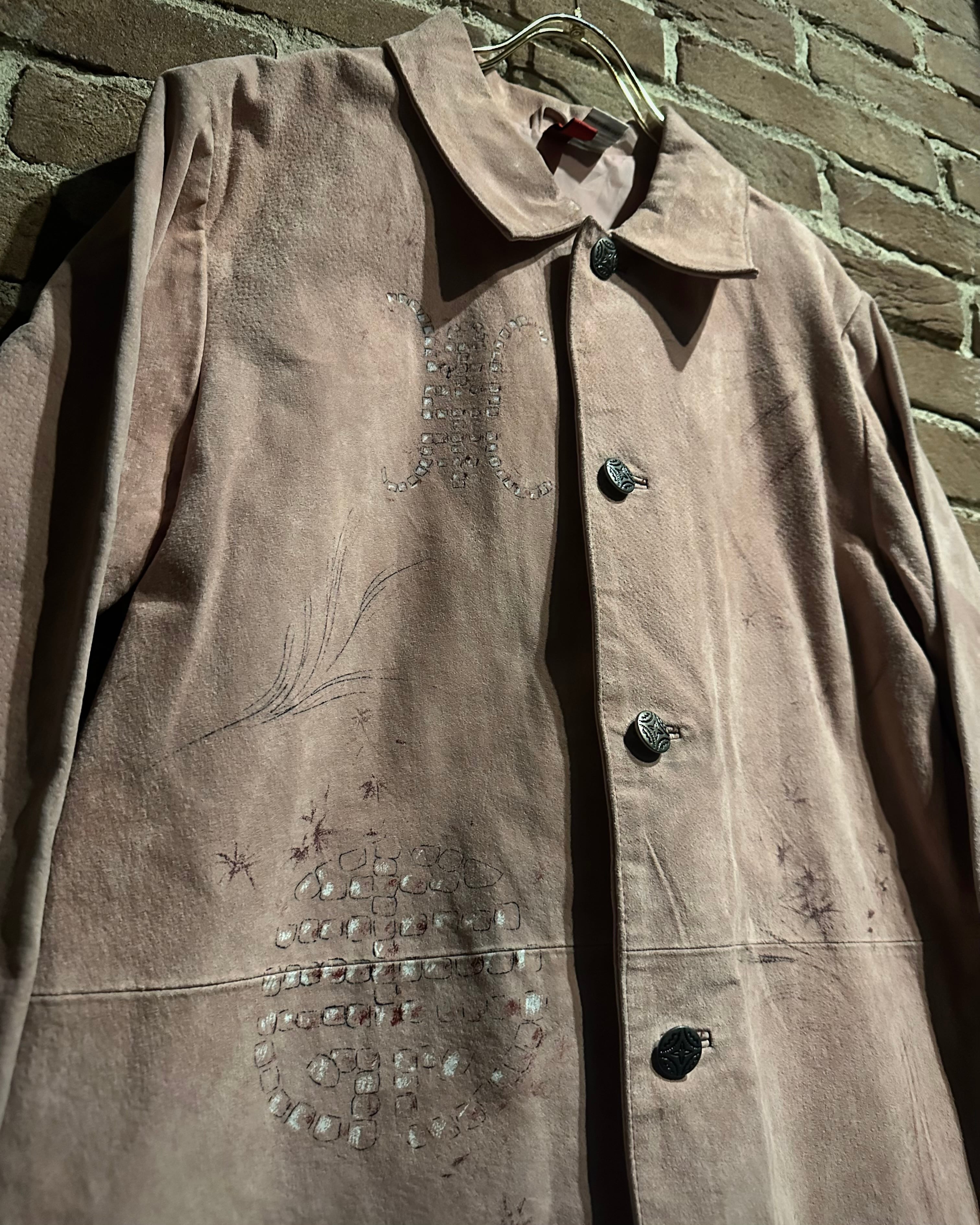 フェードしたピンクのスエードレザーに、オリエンタルなデザインを載せた稀有なレザージャケット。