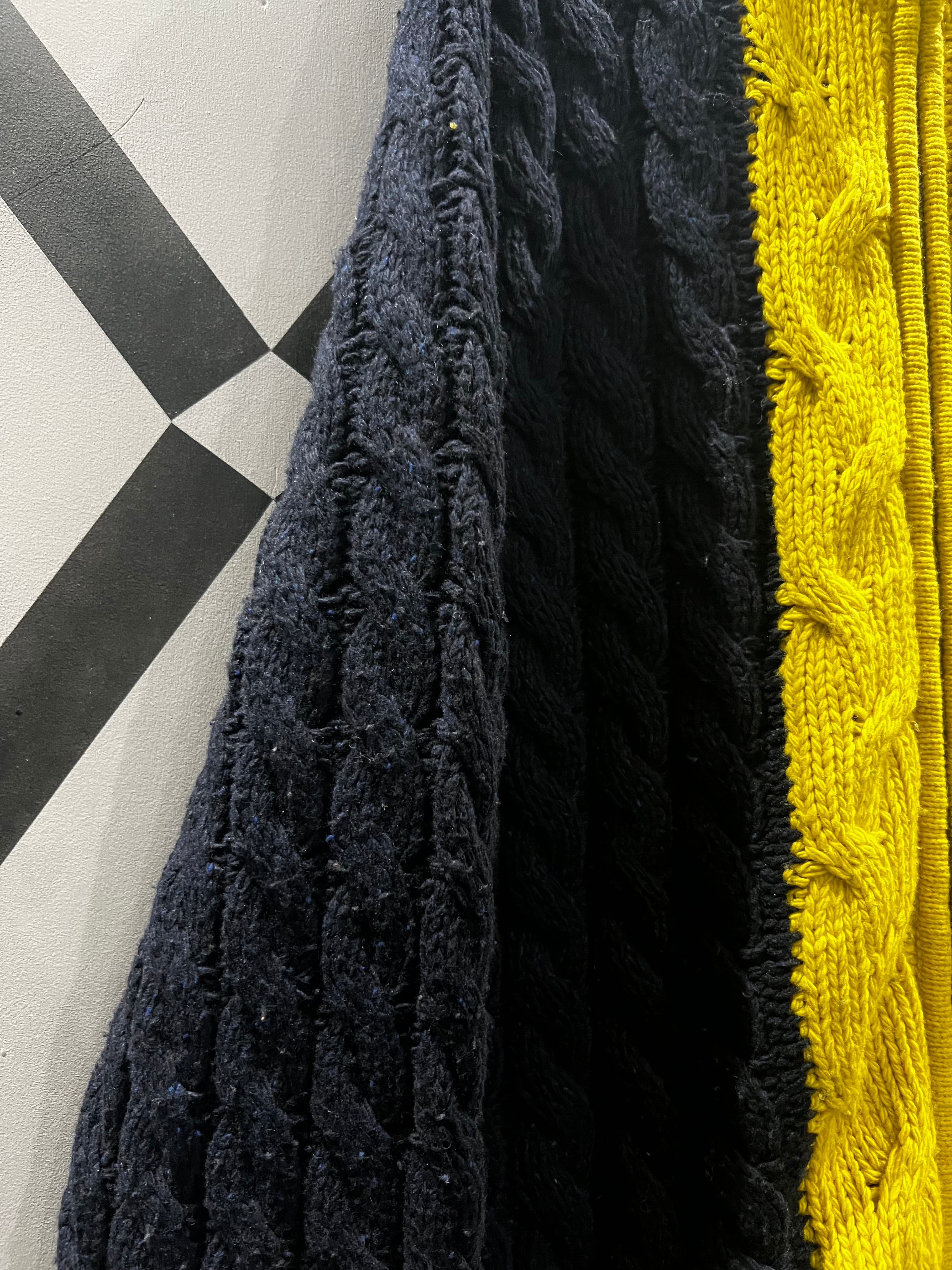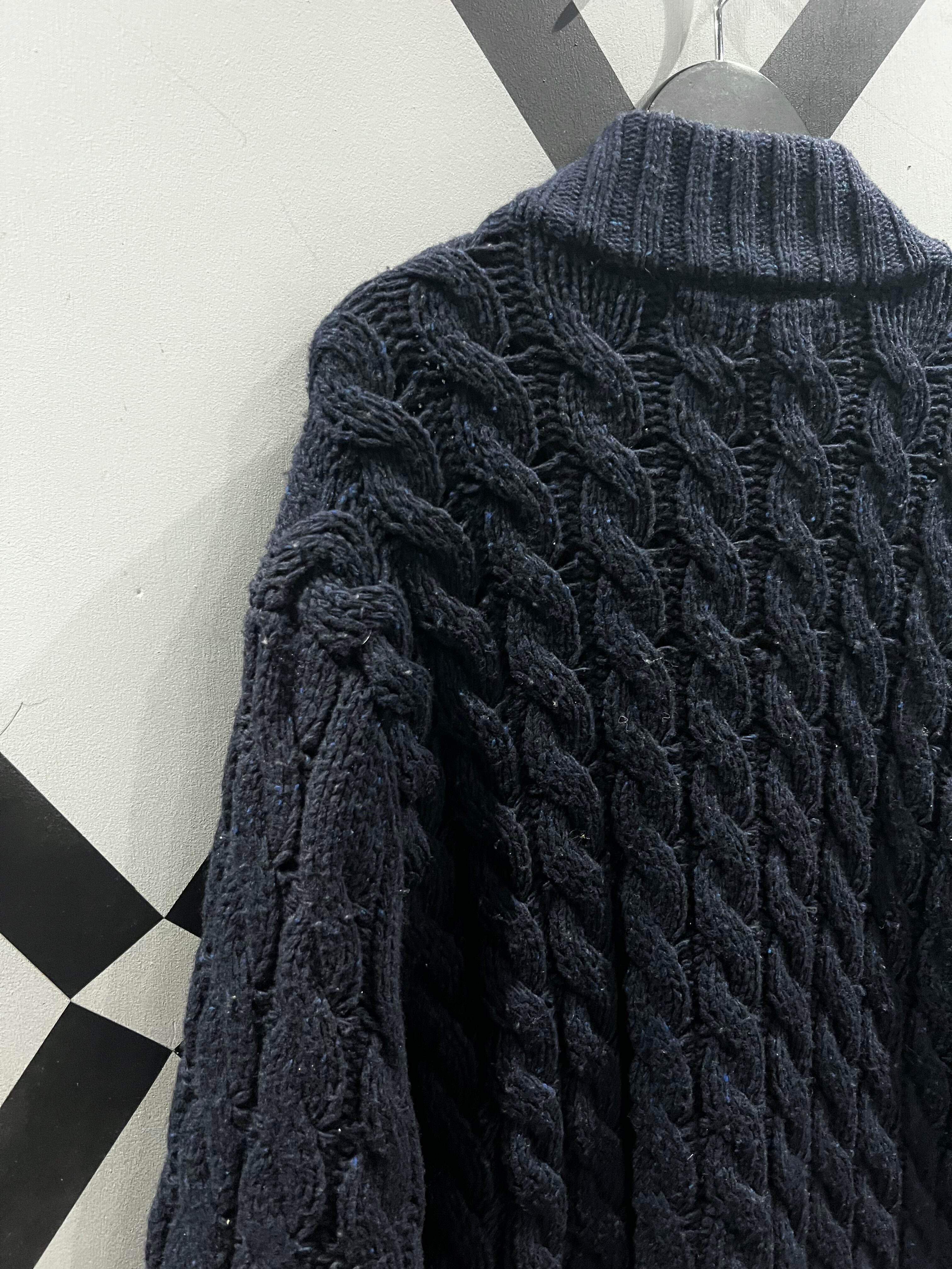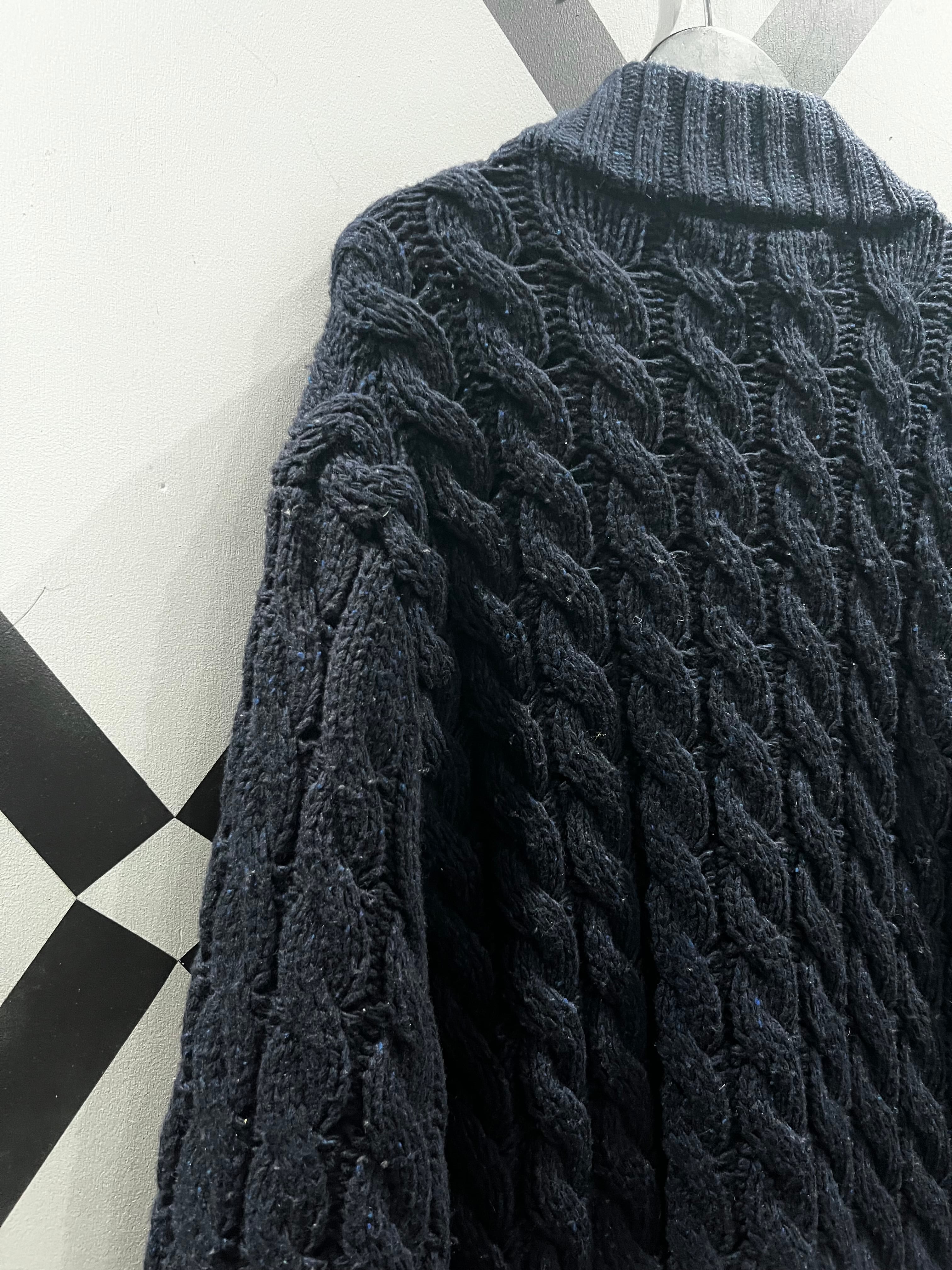 繊細なニッティングによって立体的にザックリとした編みを表現した、ケーブル編みの1着。