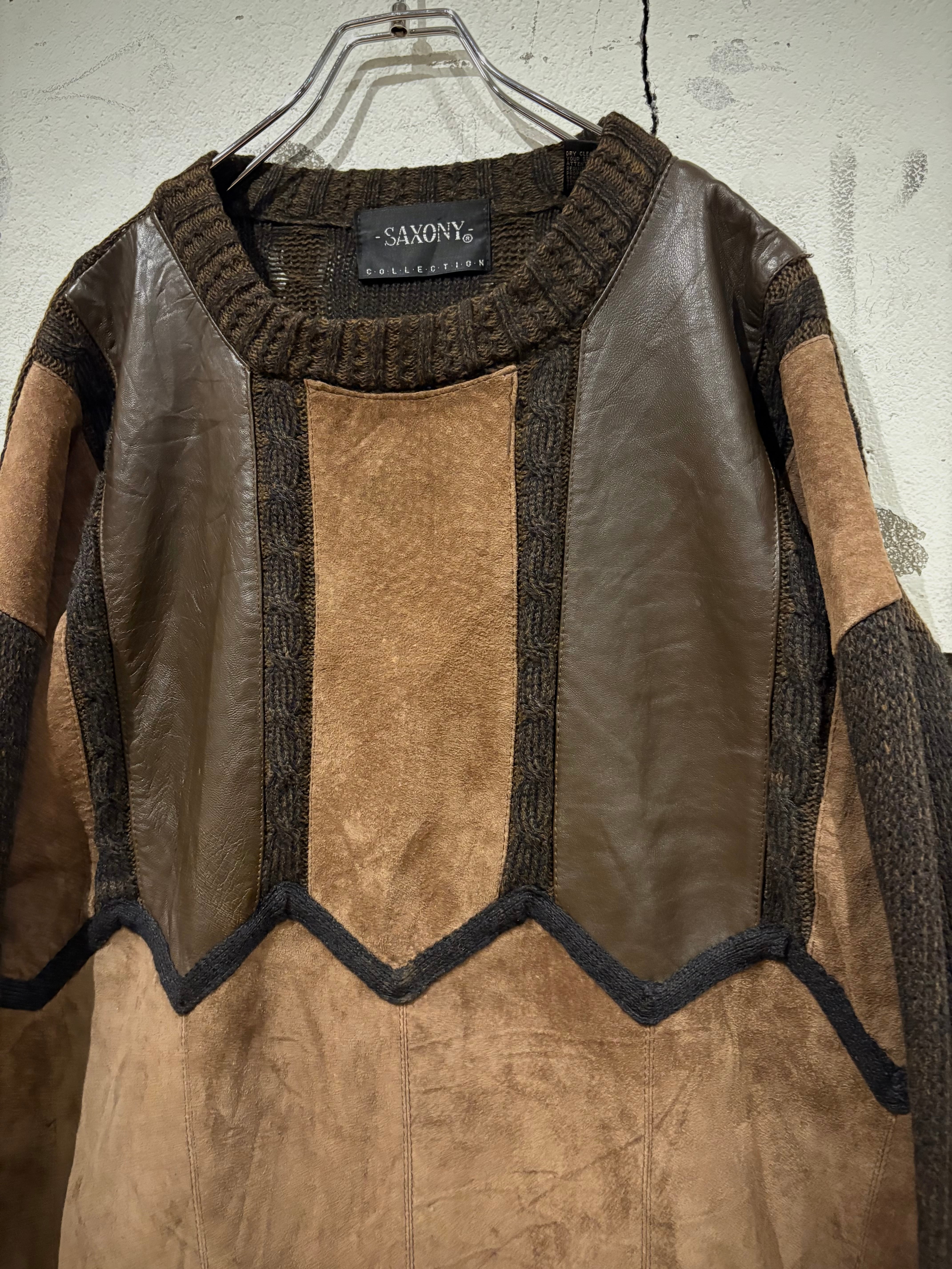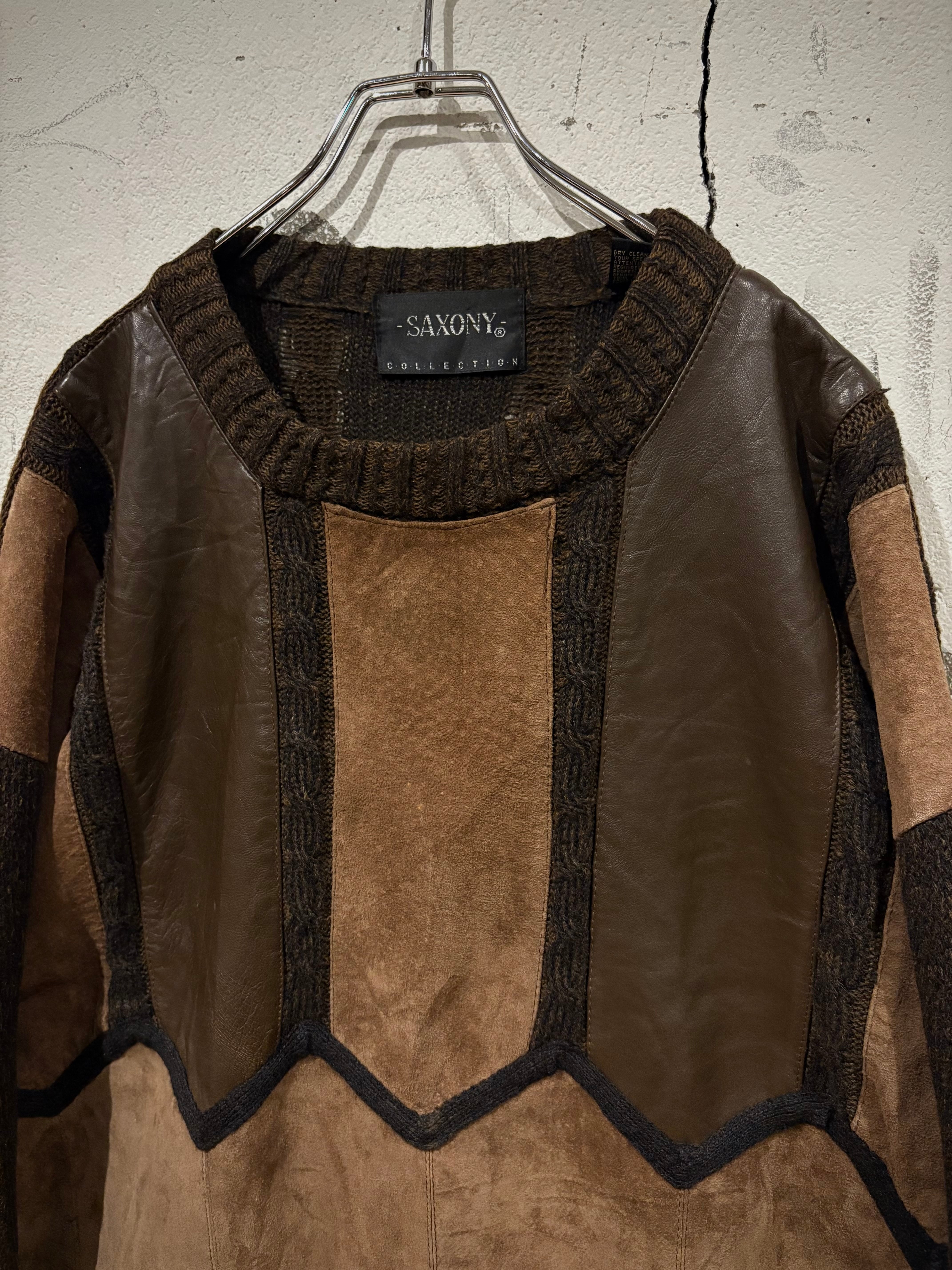 ブラウンのボディをベースに、フロントにモッチモチのスムースレザーとマットなスエードレザーを切り替えた、超贅沢なニット。