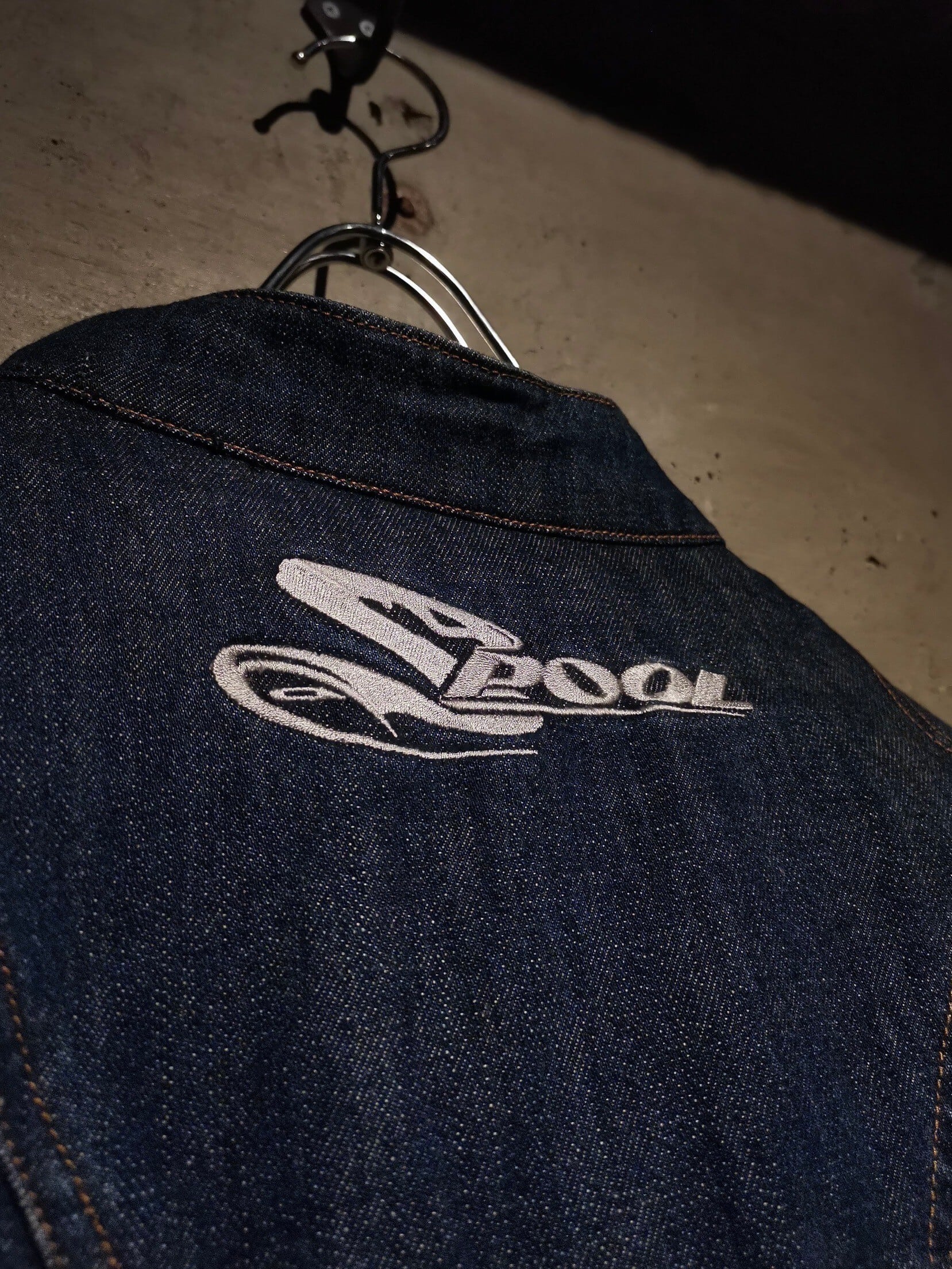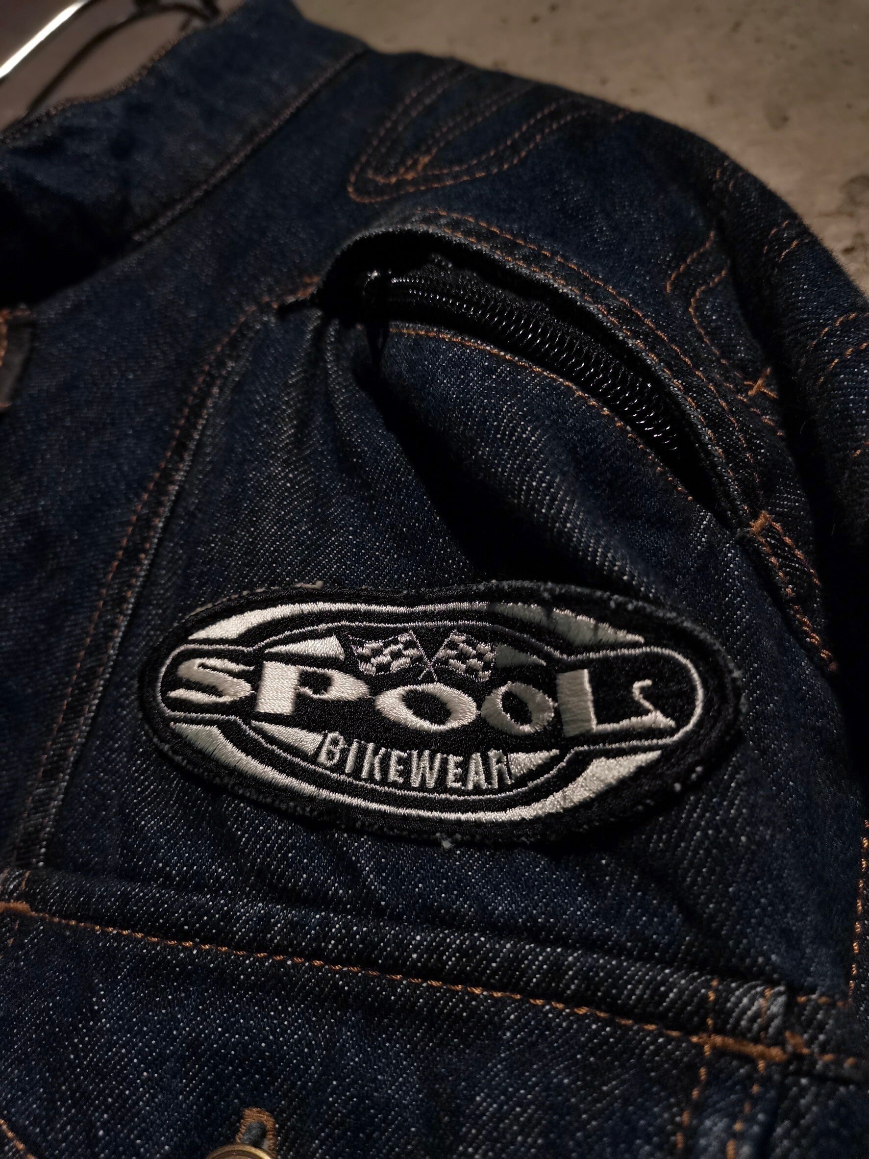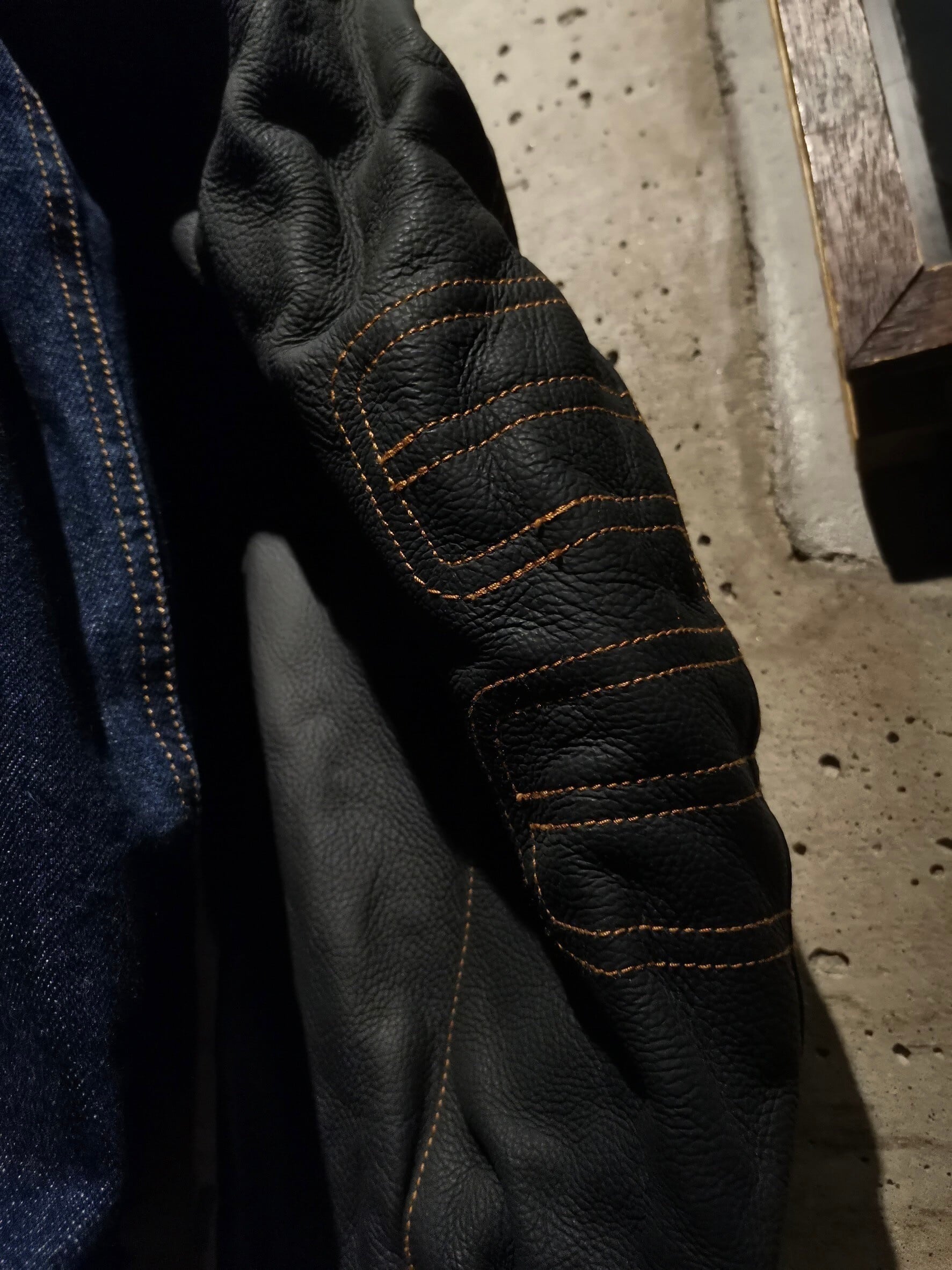濃いインディゴのデニム素材をベースに、アームにはラバーの切り替えを施したレーシングジャケット。