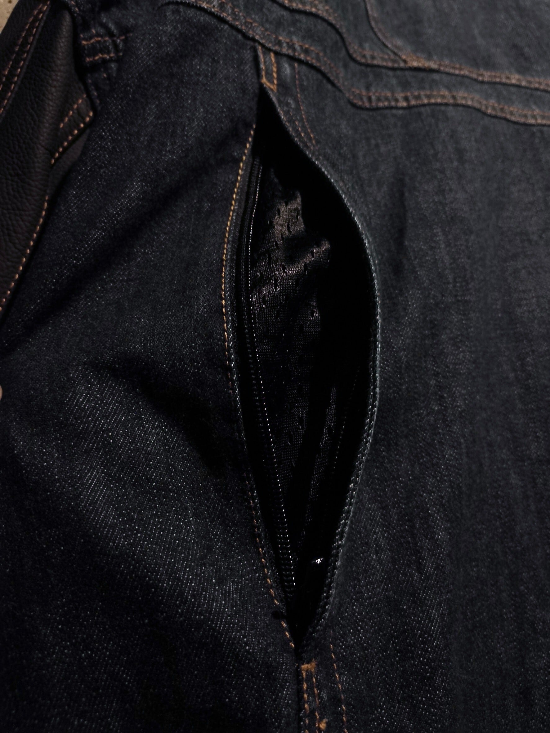 両サイドにはジップポケット、両胸にはフラップボタン、肩や背面には開閉可能なベンチレーション、肩、肘にはプロテクターを内蔵したレーシングらしいギミックを盛り込んだ1着。