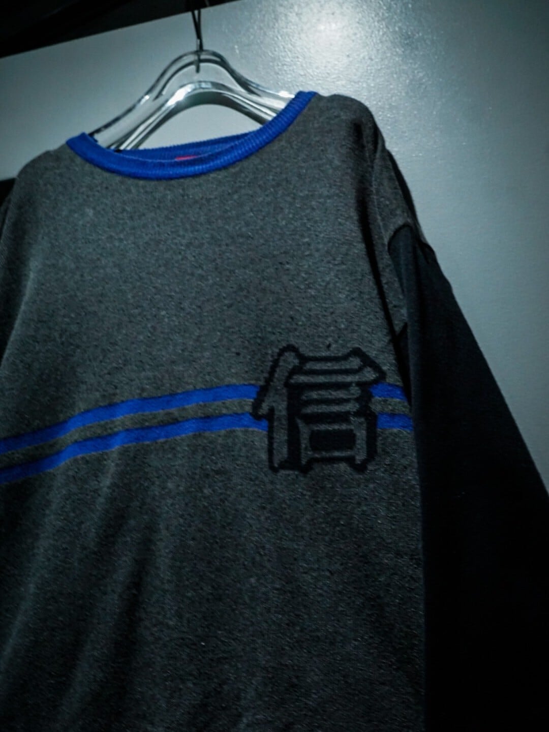 ジャパニーズカルチャーである漢字を載せた独特の雰囲気を放ちながら、ファッションとして1つの服に落とし込まれたプルオーバーニットの逸品です。