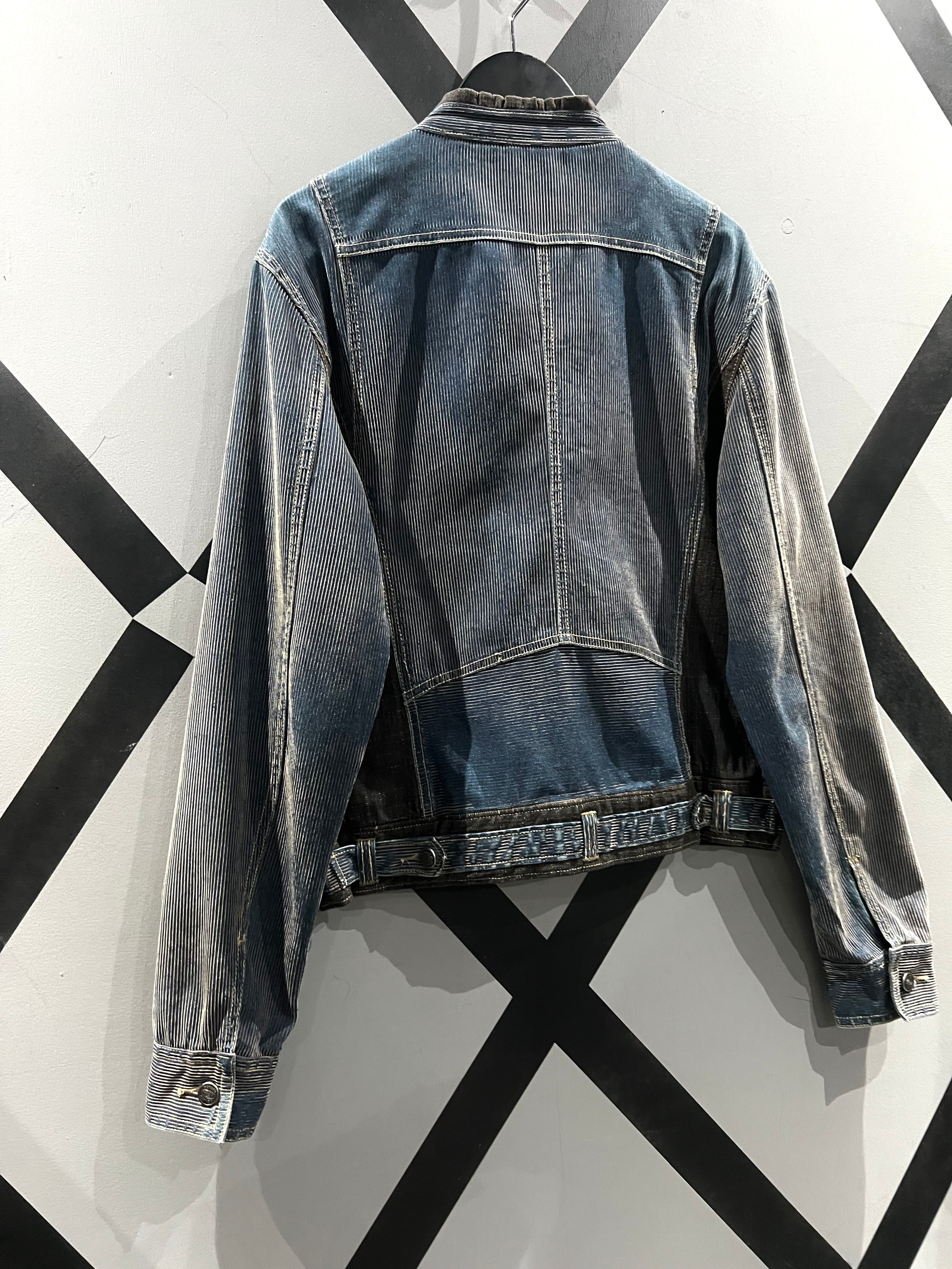 見る角度や光のあたり加減によってフェードしたような表情に変貌を遂げるシングルライダースジャケット。