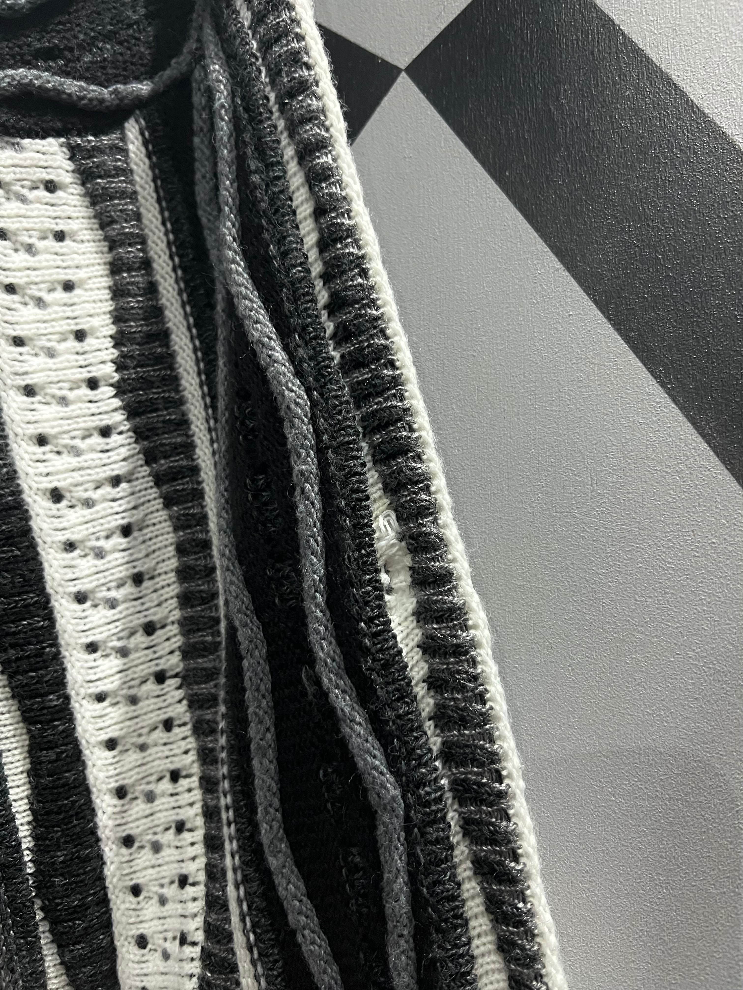 モノトーンのカラーリングで、うねりの効いた立体的なデザインを全体に配した3Dニット。