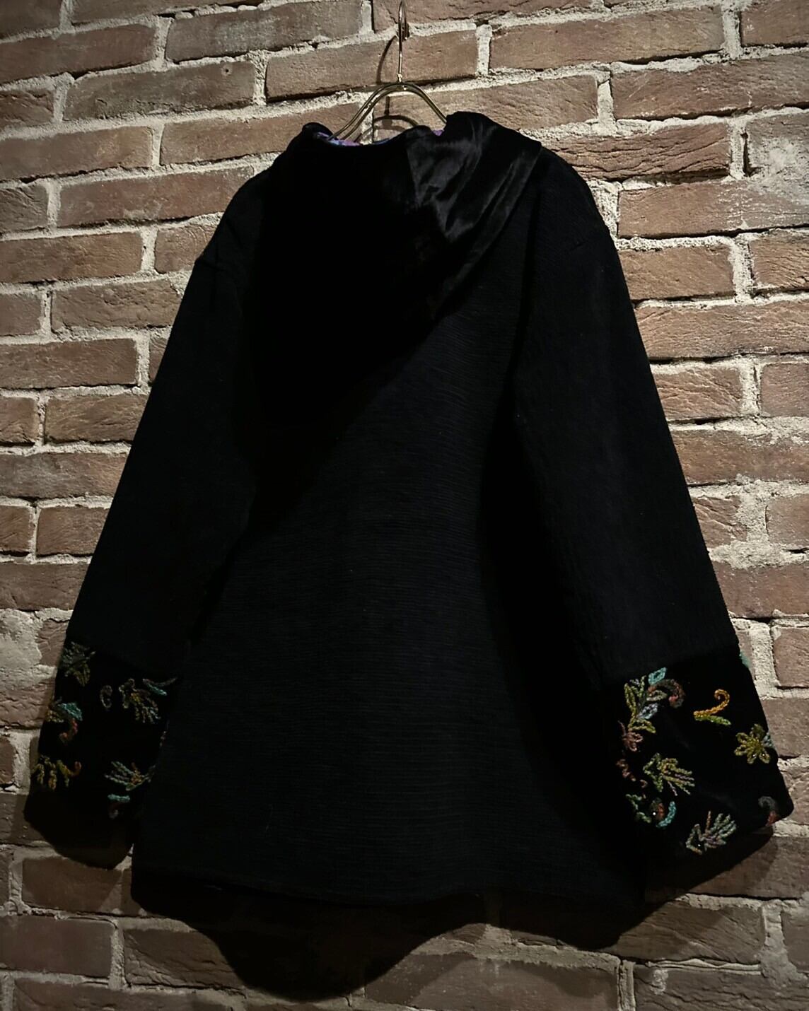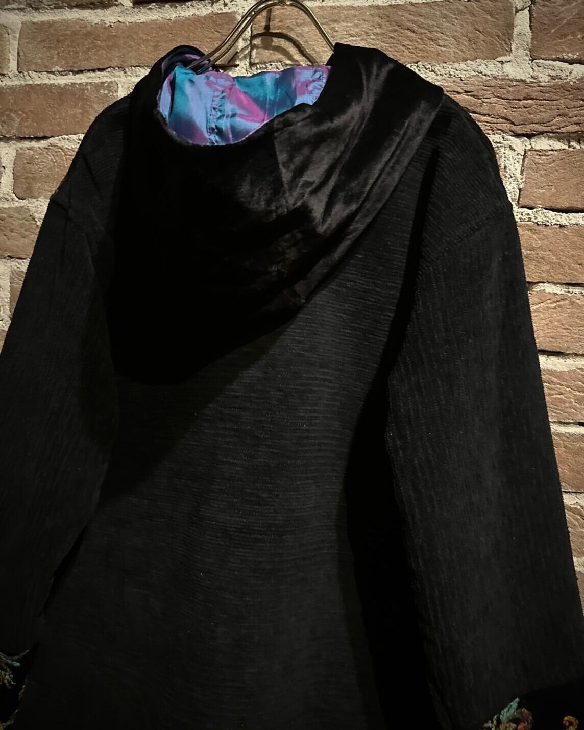 ゴブラン×シェニール×ベロアの異なる織り方、素材を用いて仕上げられたフーディジャケット。