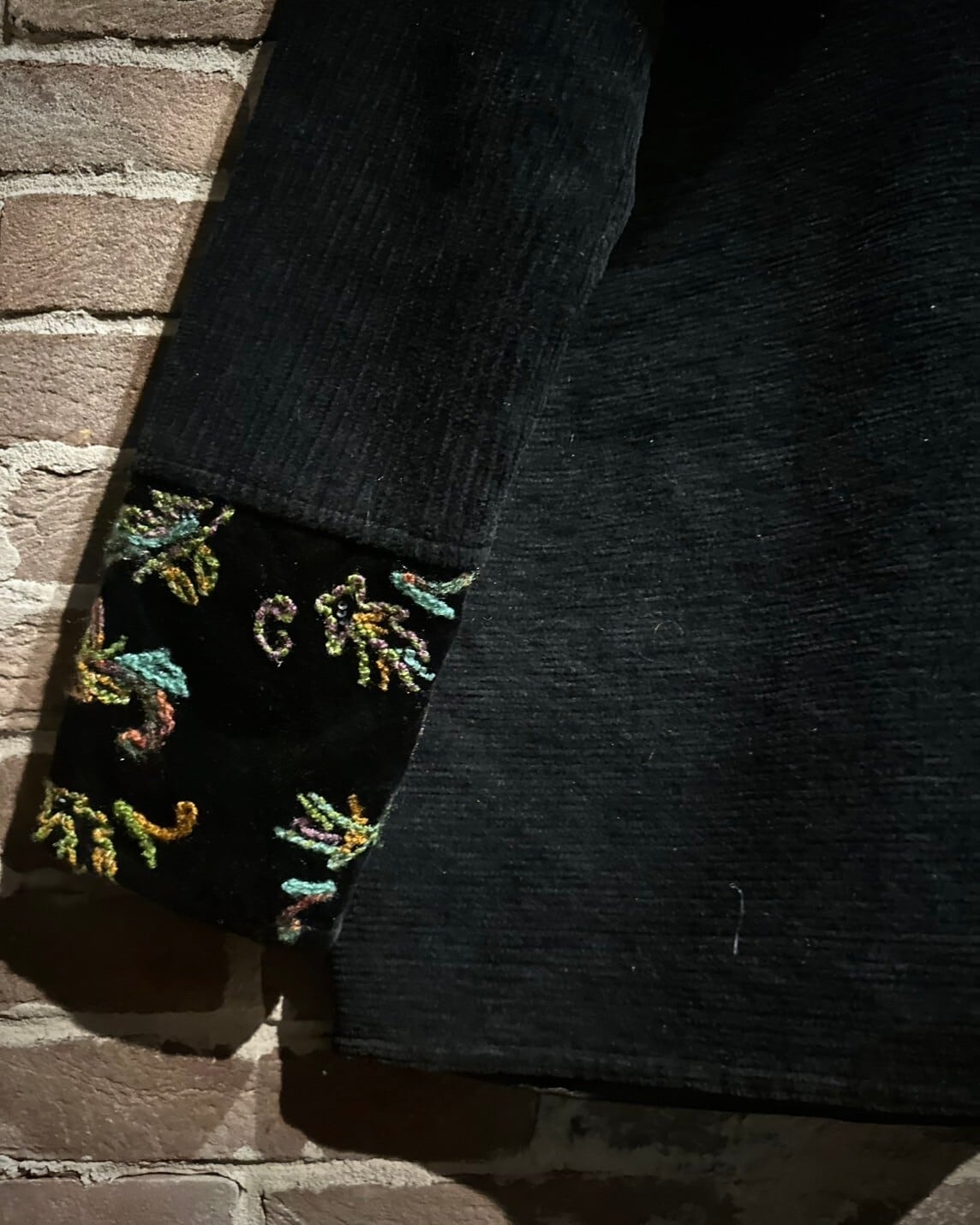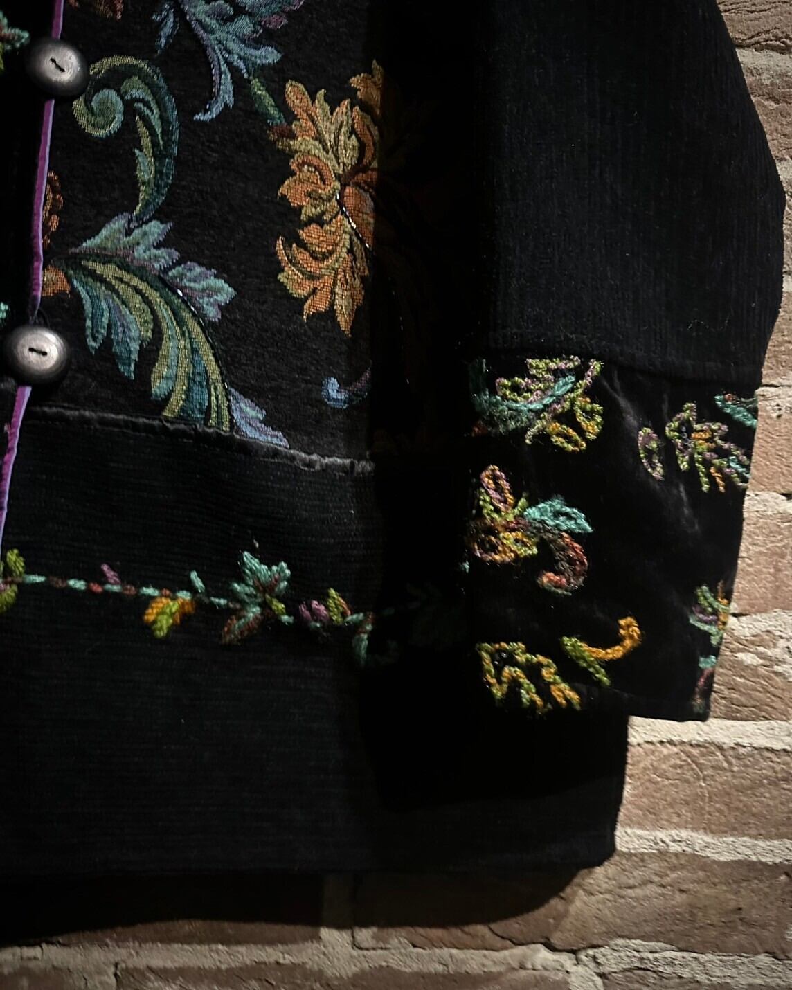 ボディのフロントにはツギハギ調に切り替えられ、美しいボタニカル柄が織りによって浮き出る様が素晴らしい…ベロア素材の艶かやかな表情もアクセントになって◎