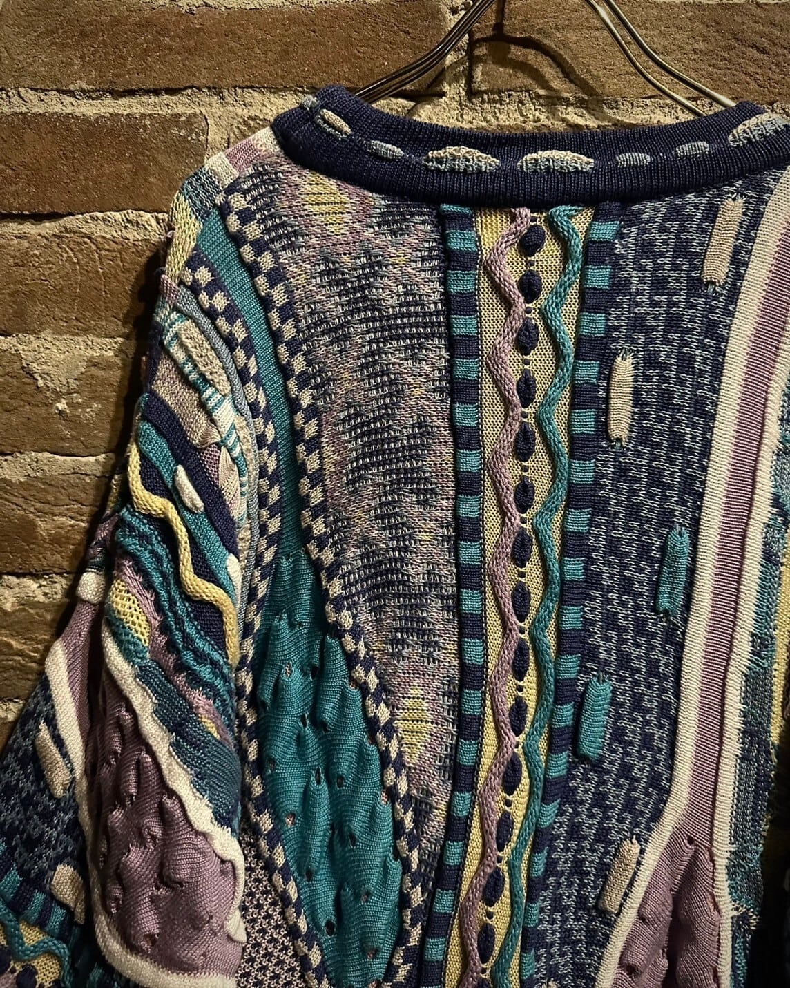 年々希少価値も上がり、海外でも高騰化が見られている3Dニット。そんな中から好配色で良サイズ、古着との相性はもちろん、ハイストリート、ラグジュアリーなスタイリングにもハマる稀有かつスペシャルな逸品です。