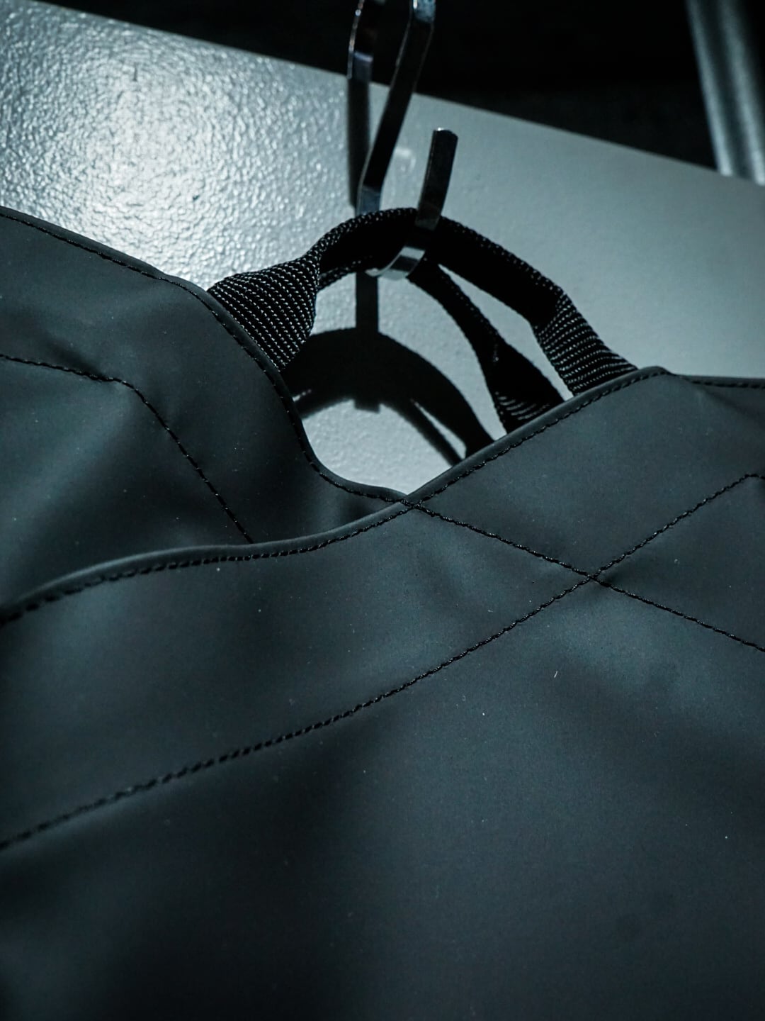 ポリエステル生地を裏張りしており、雨の日にもおすすめ。表面にキズが付きにくい高耐久性素材で素材特有のマットな表情も◎
