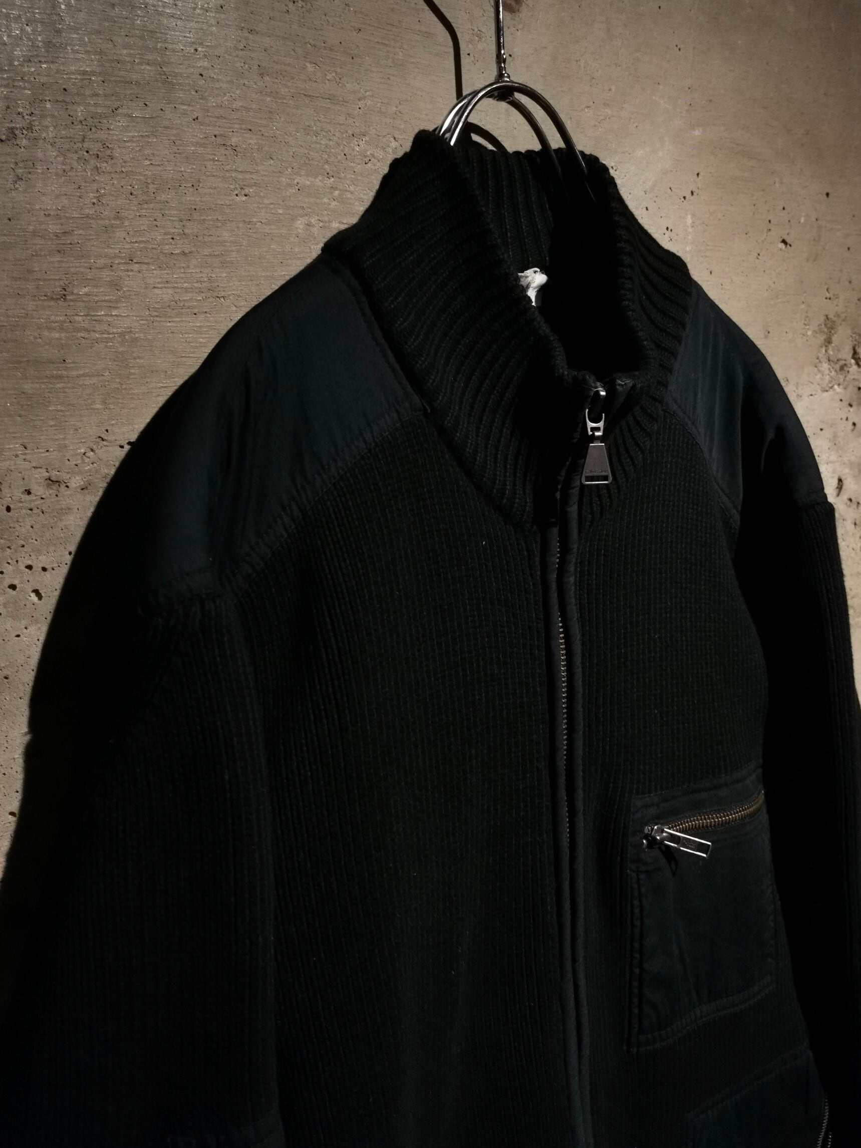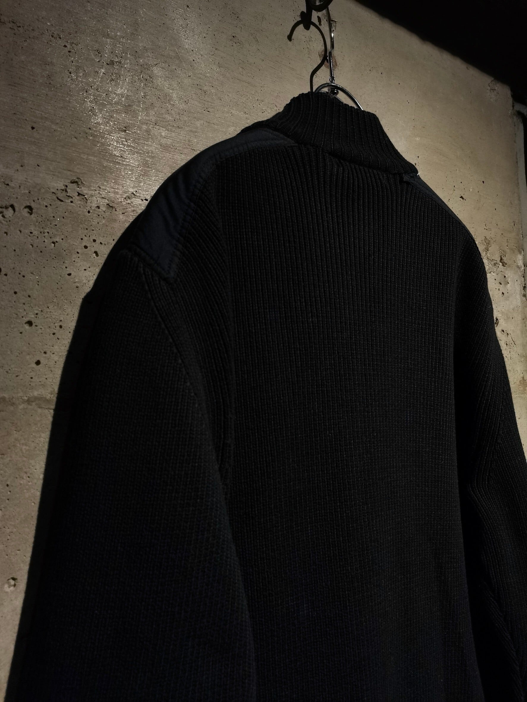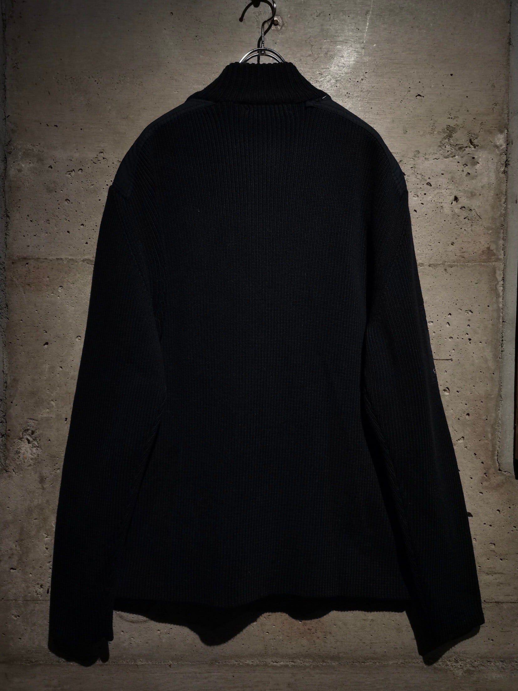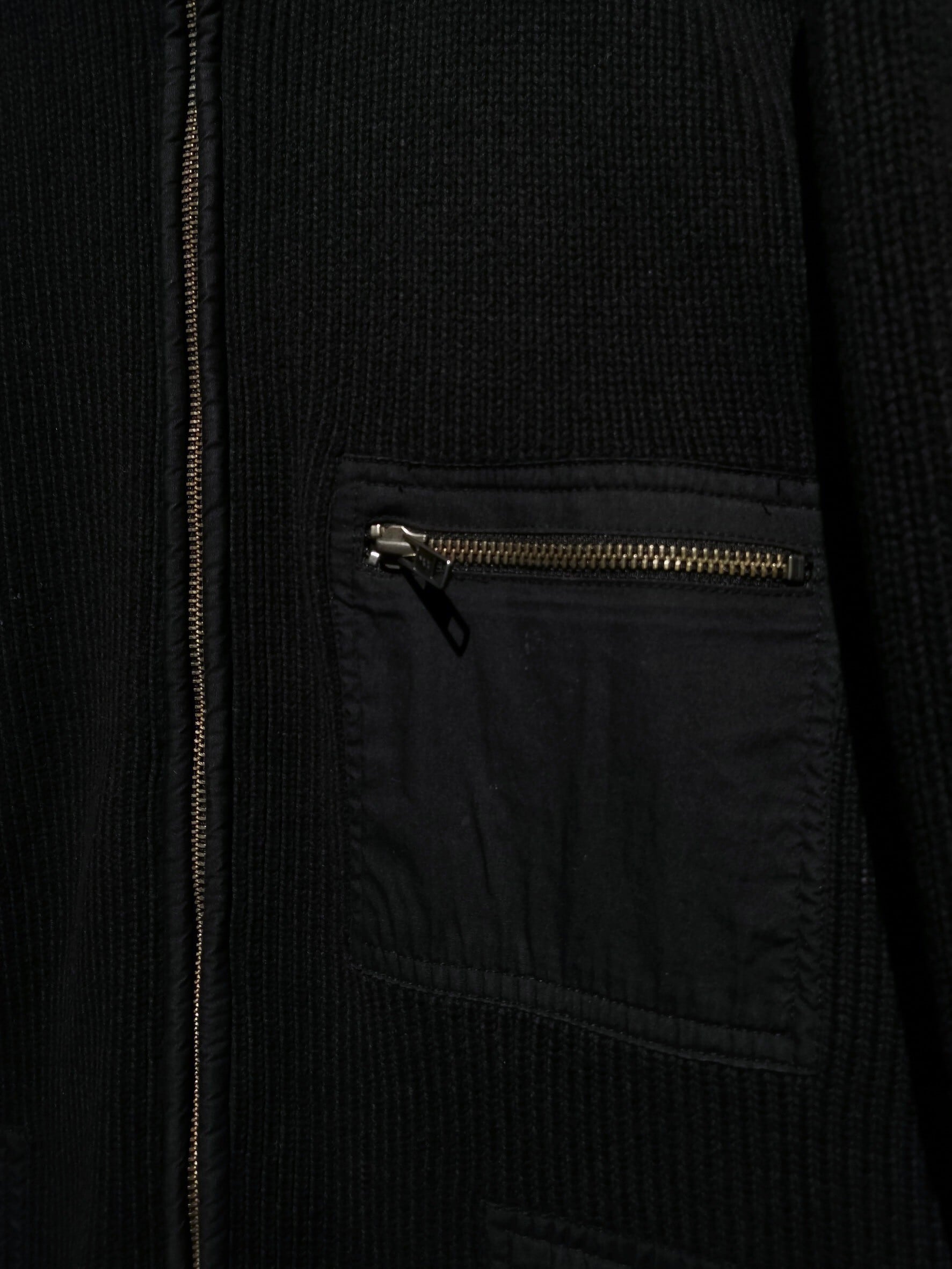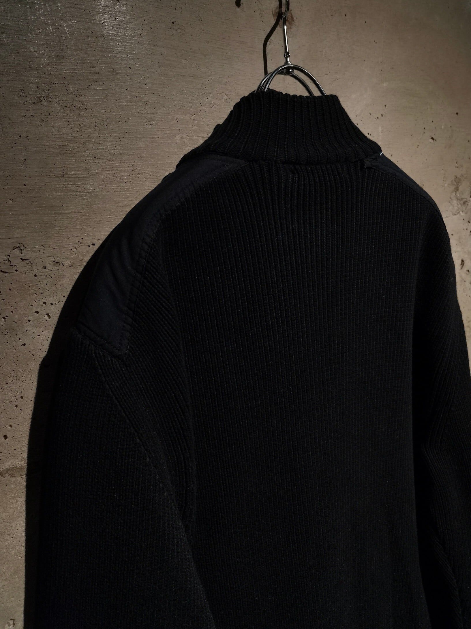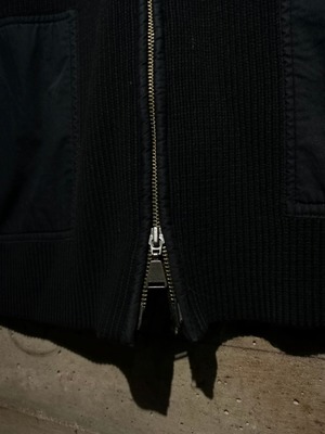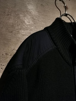 ドライな質感のコットン素材を用いたニットボディに、フロント、左袖に施されたポケットや肩部分をシャリ感のある異素材で切り替えたドライバーズニット。
