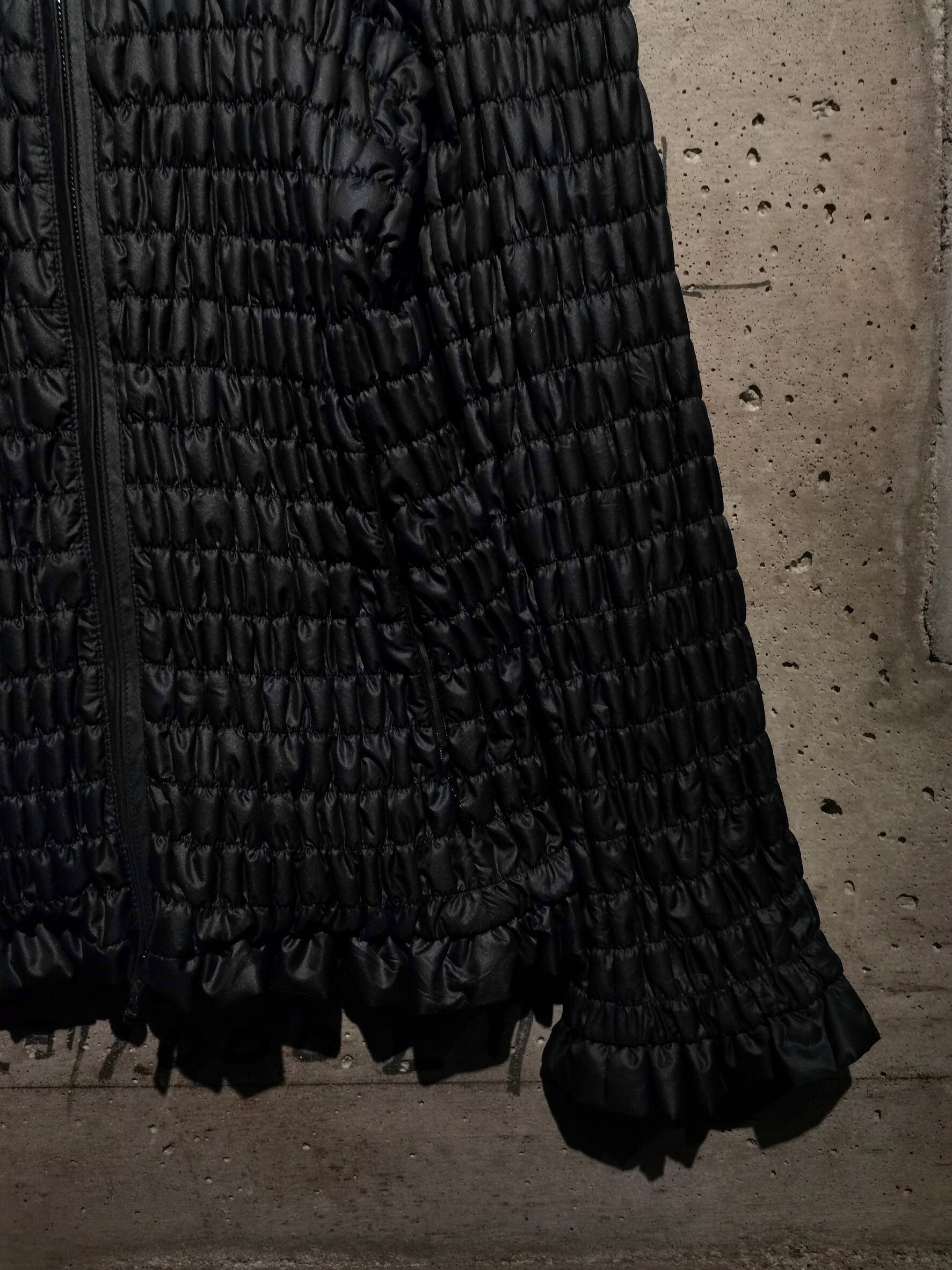 フロントはダブルジップ、袖口、裾、首周りはラッフル状にやや広がったスリムなシルエット。軽やかな着心地に抜群の伸縮性、内側に滑らかな裏地が施されているので、インナーのみならずアウターとしても活躍してくれます。