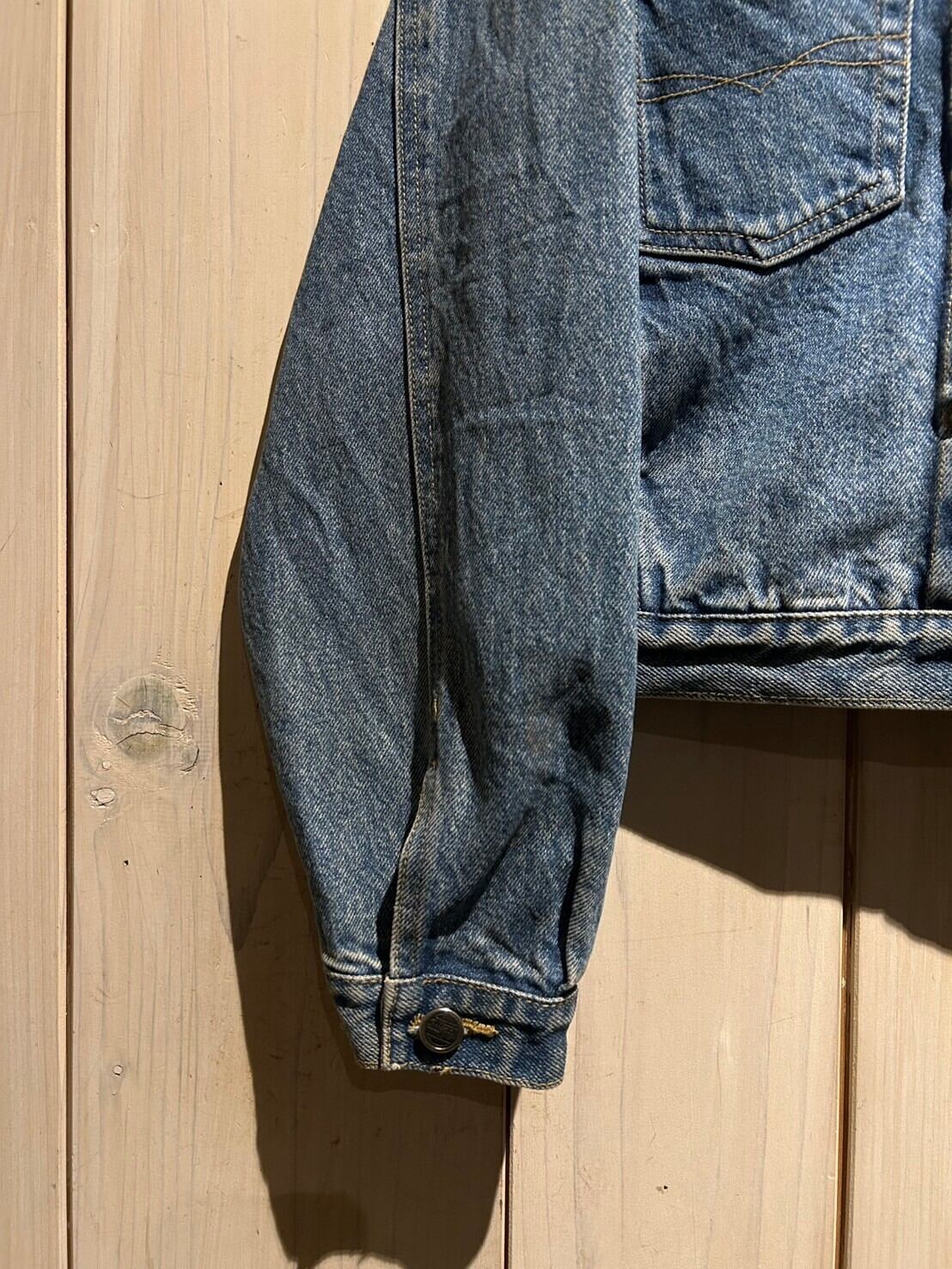 フェードの効いたブルーのデニムボディを超短丈の型に落とし込んだデニムジャケット。