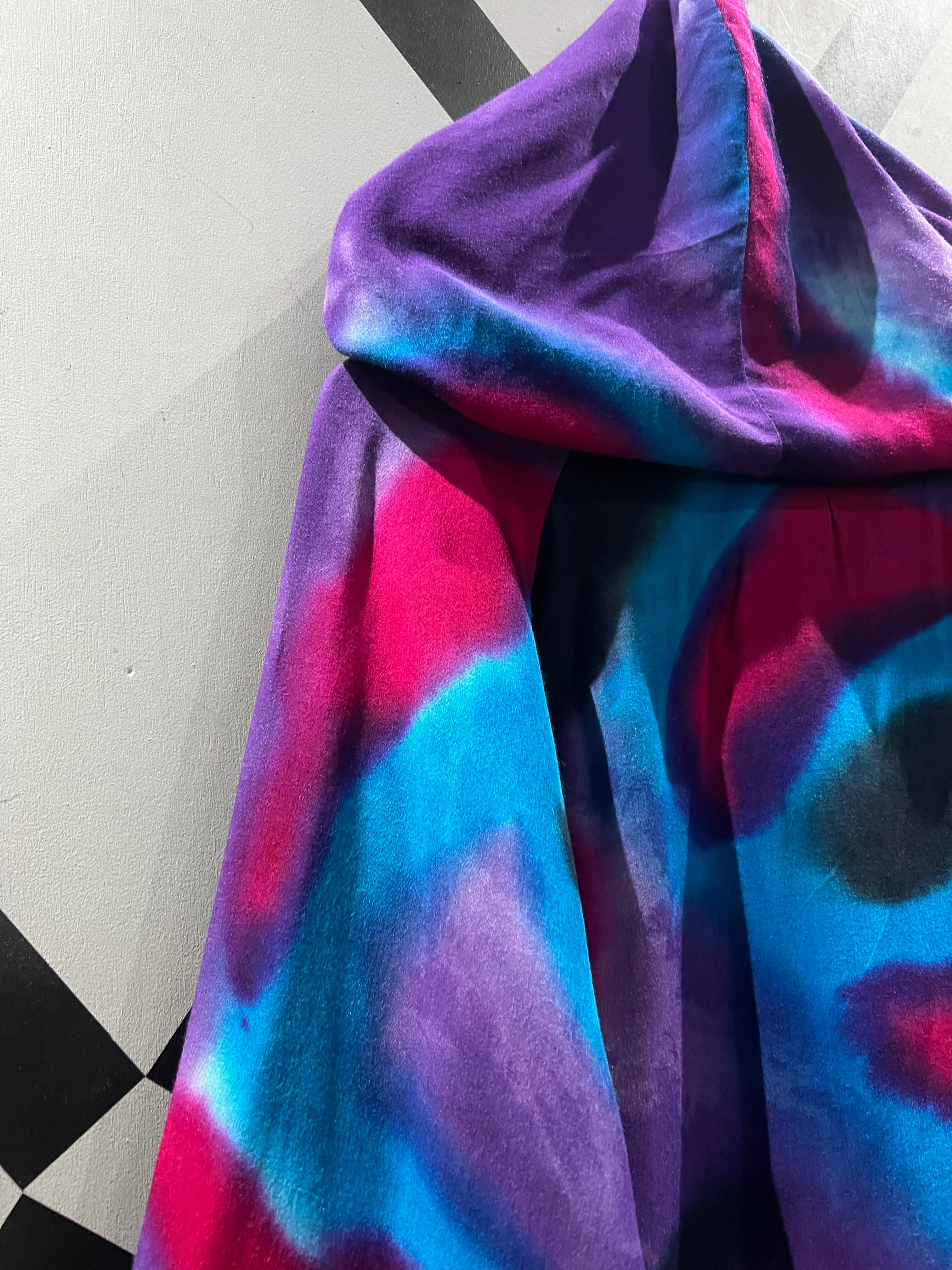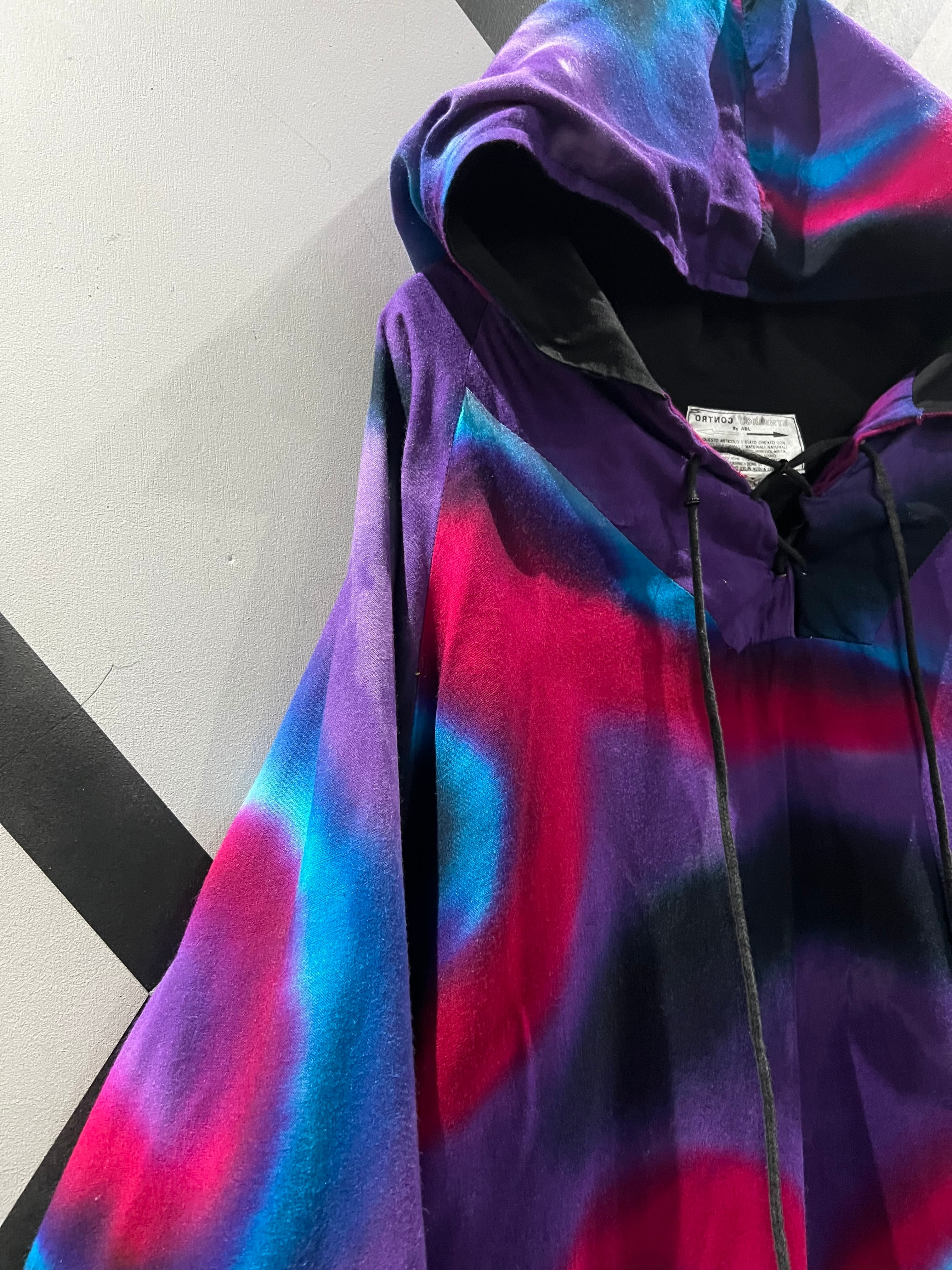 紫×青×赤の毒々しくも美しいカラーリングで染めを施したフーディー。