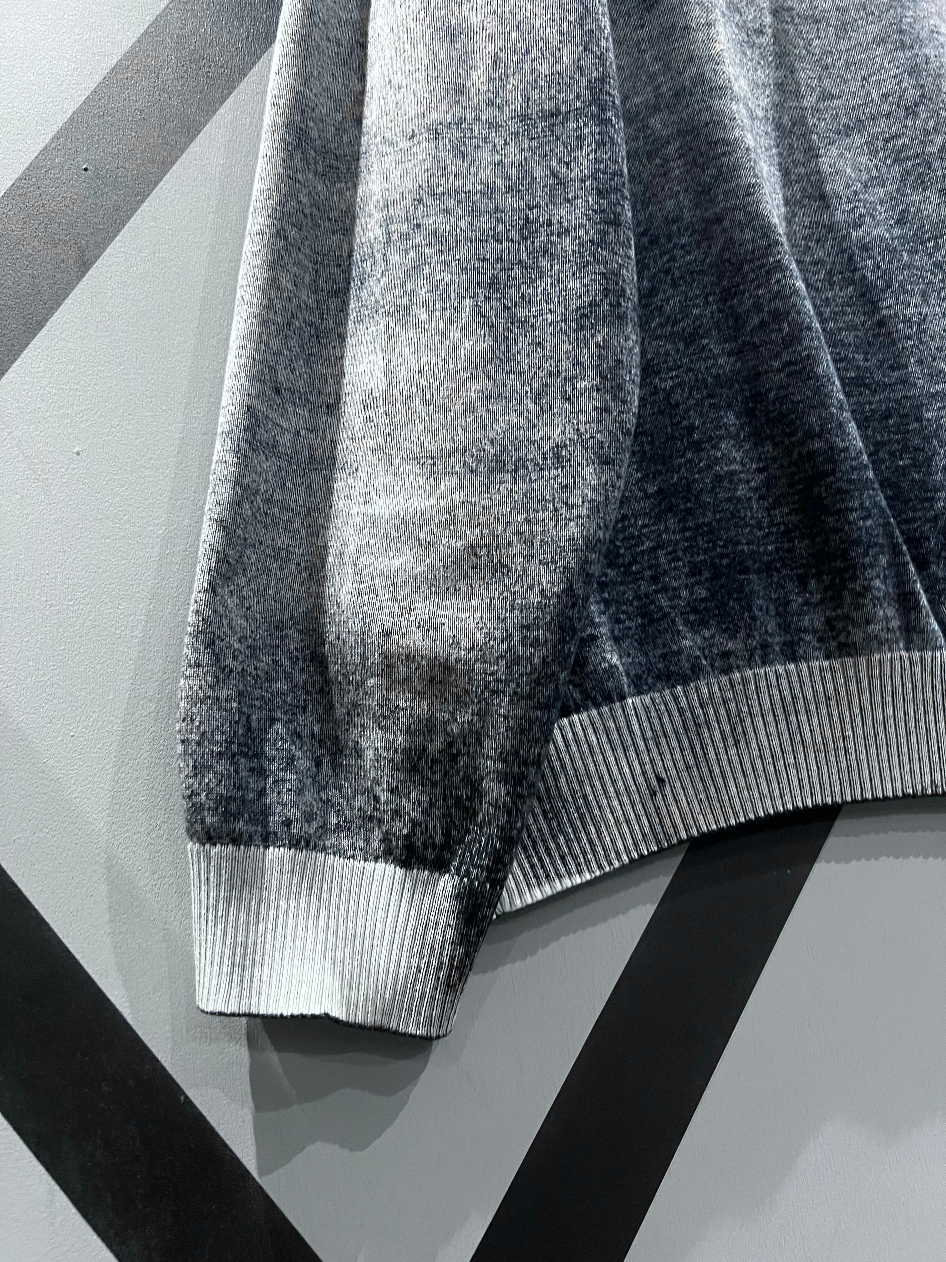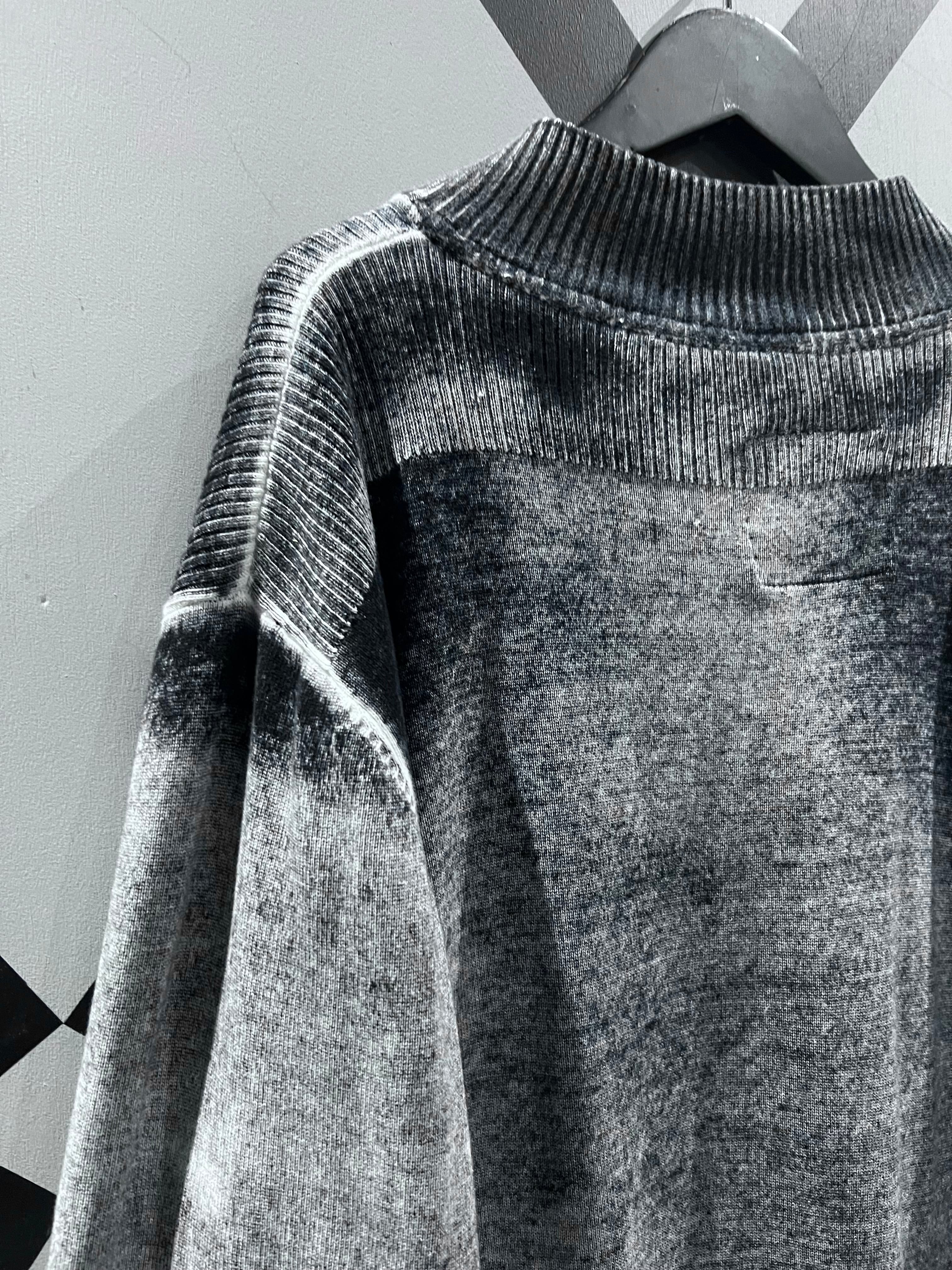 グラデーションがかったカラーリングに首元や裾、袖口、肩周りにはリブニットを切り替えデザインは効かせながら、落ち着きのある上品な雰囲気と、スタイリッシュな印象を兼ね備えた、洗練されたデザインに仕上げられています。