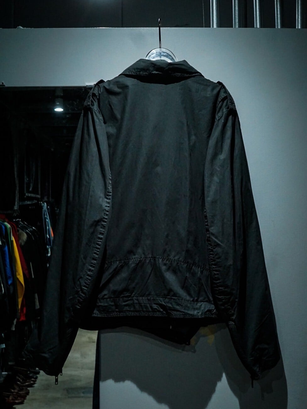 ジップポケットやコインポケット、袖口のジップ、ウエストベルトなどライダースならではのディテールはしっかりと踏襲。ナイロンで仕上げた事でよりソリッドな雰囲気を纏う1着に。