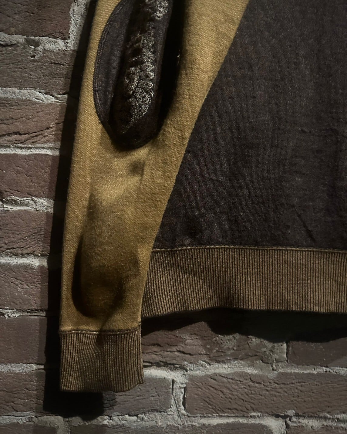 肘にはエルボーパッチを施し、生地の強化と共にデザインとしてもアクセントに。