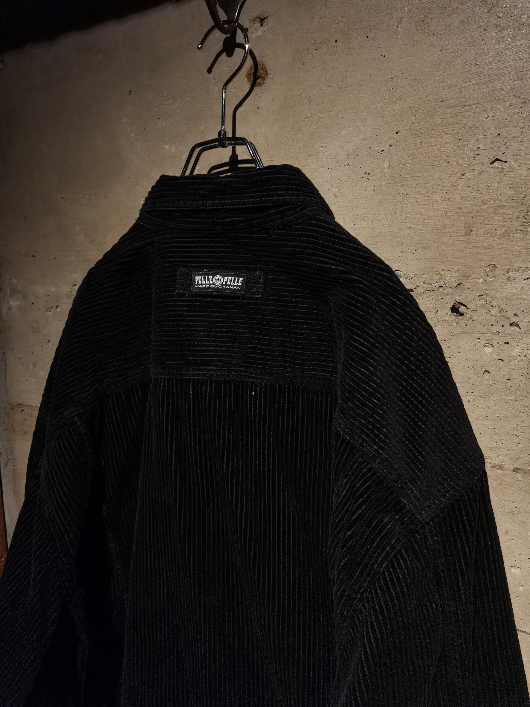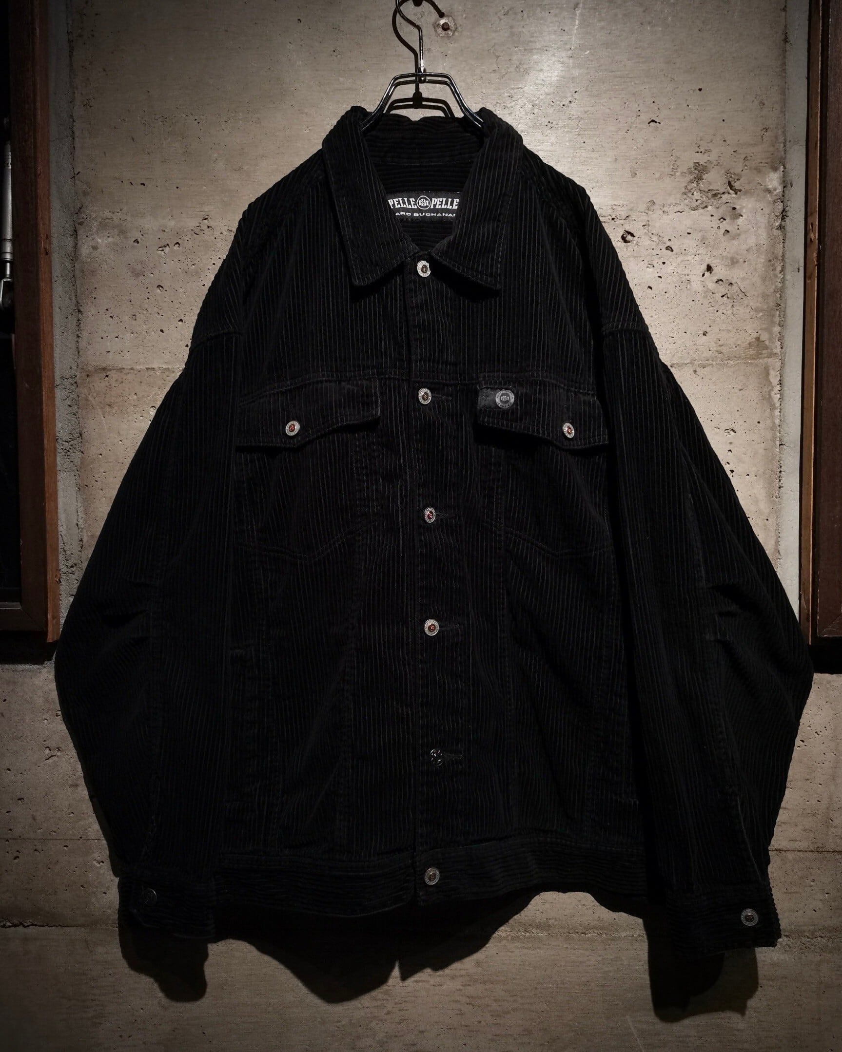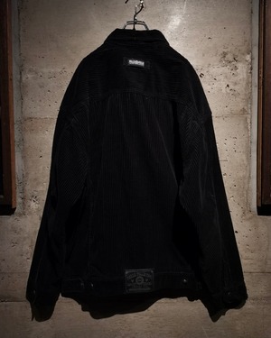 ブラックの太畝コーデュロイをボディに用いたトラッカージャケット。