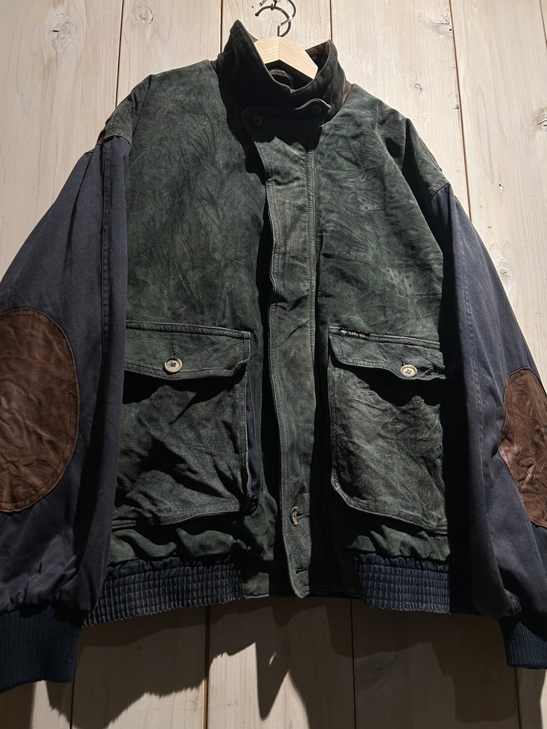 タフながら柔らかく、コシのあるツイル織のボディに、フロント、背面ヨークにしなやかなスエードレザーを切り替えたブルゾンジャケット。