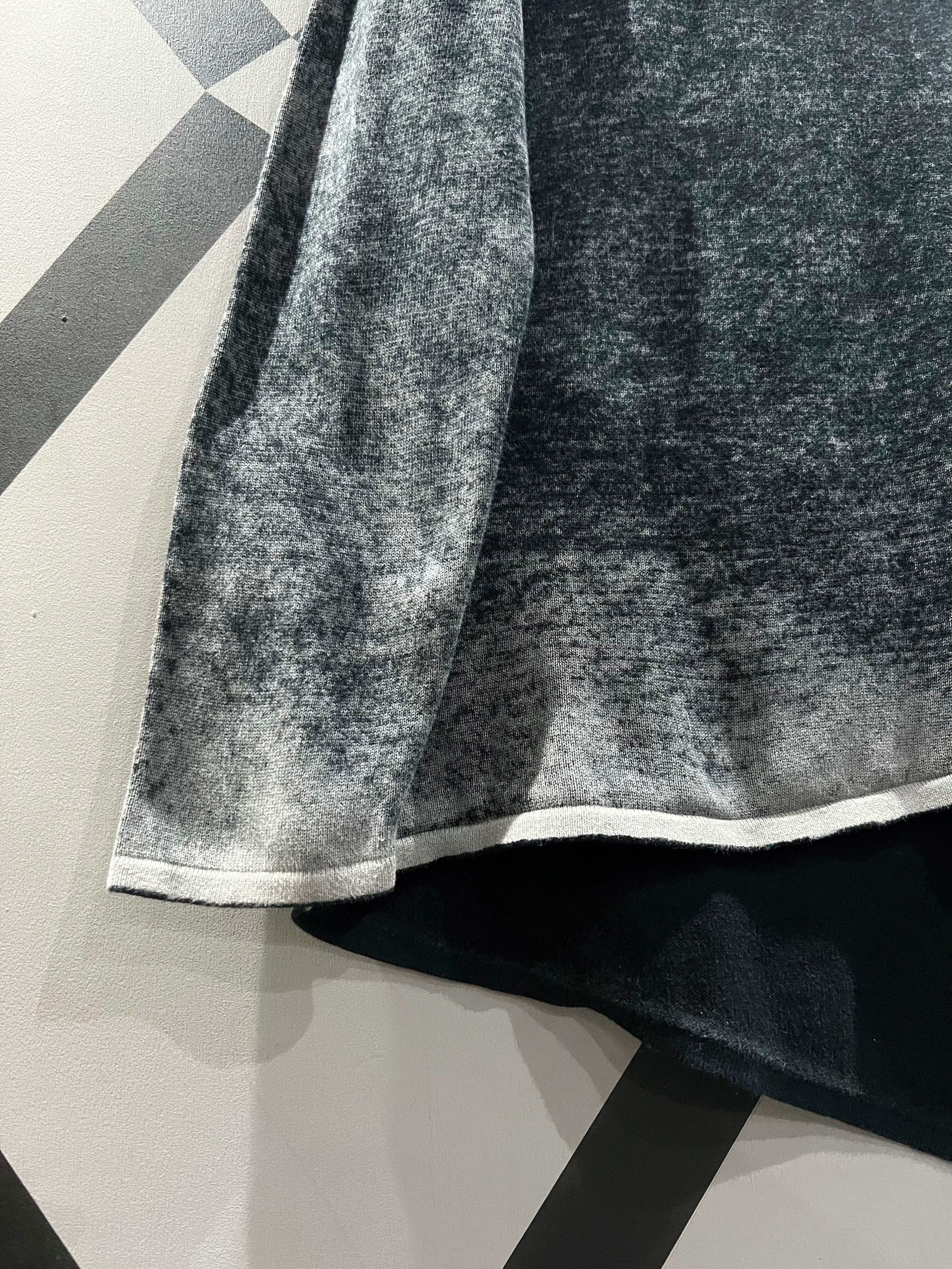 モノトーンでグラデーションが表現された変形ニットに、ジップを載せたプルオーバーニット。当店でも超気分な変形モノ。その中でもこのジップギミック、超イカしてます、、、