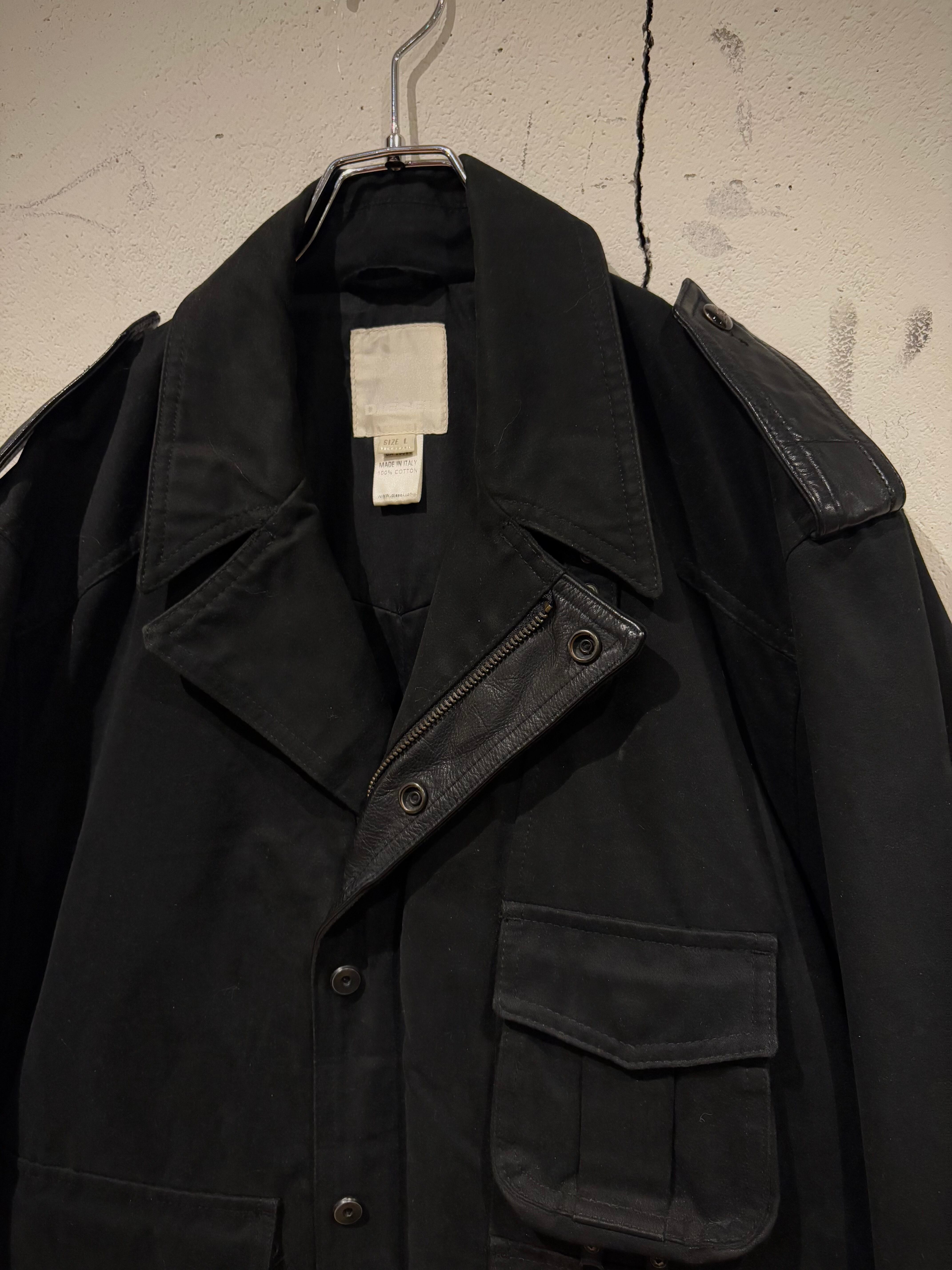 エポレットや比翼仕立ての内側にはブラックレザーの切り替え、首元にはチンストラップが施されており、スタンドカラーにも仕様変更可能。このブランドならではの細やかな作り込みにグッときます。