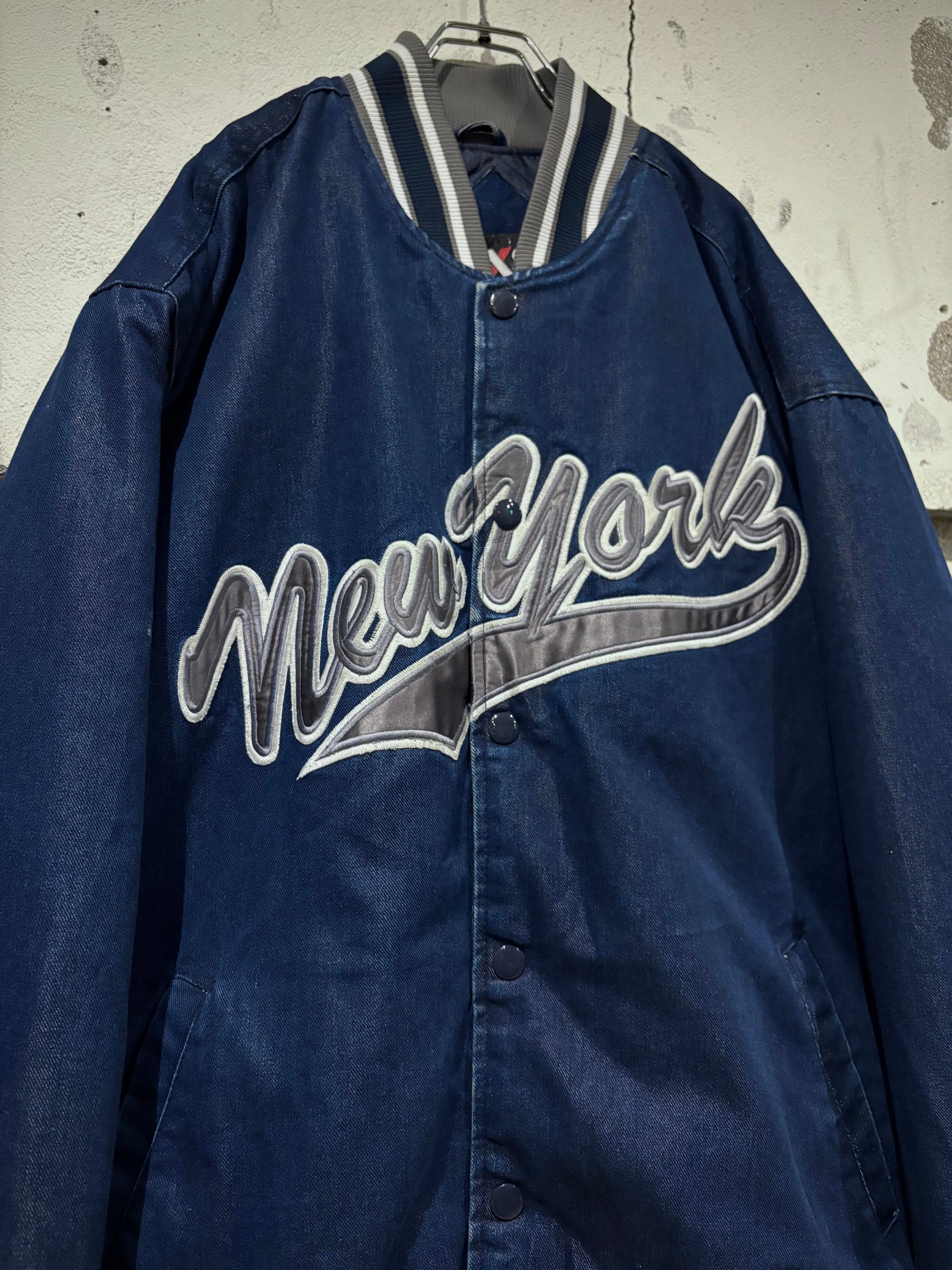 フロントには鈍く光沢を放つシルバーの糸で"New York"の文字を刻み、ボディと共にデザインにも迫力があり、これ1着でバッチリとコーディネートを決めてくれます。