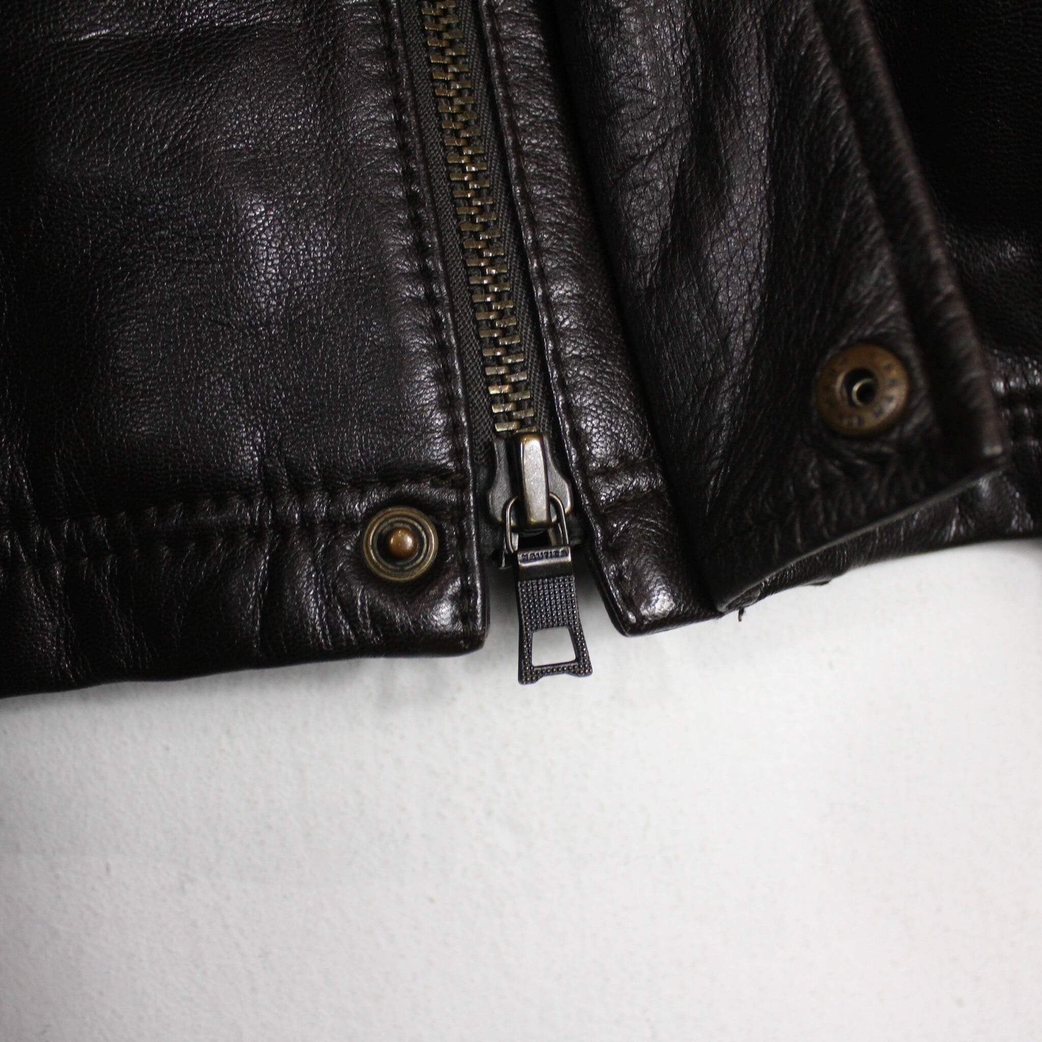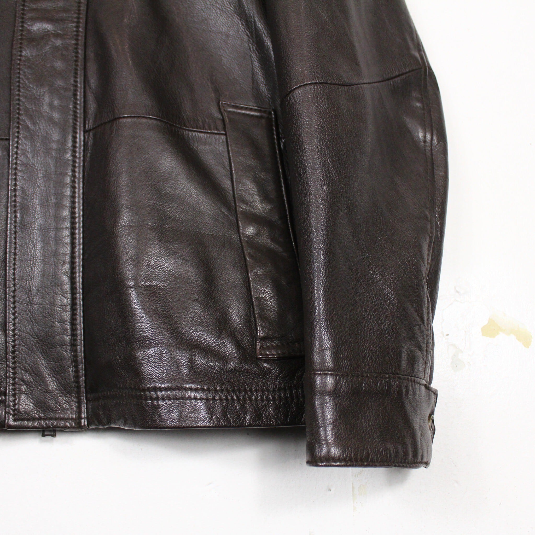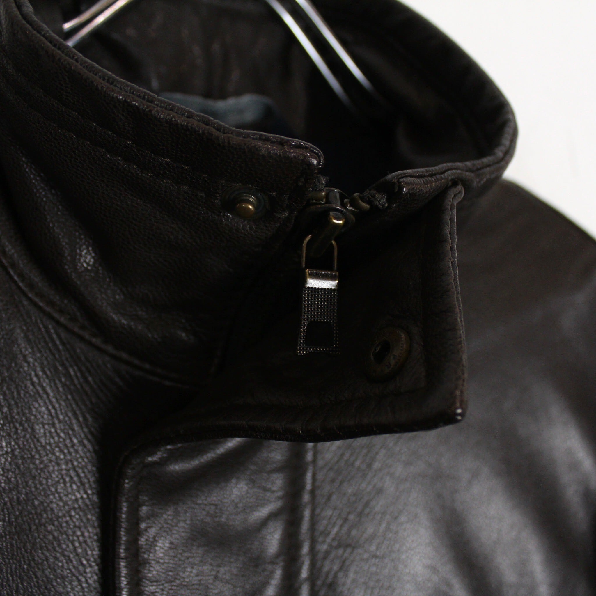 しっとりと滑らかな質感の、極上のブラウンレザーをボディに用いたレザージャケット。